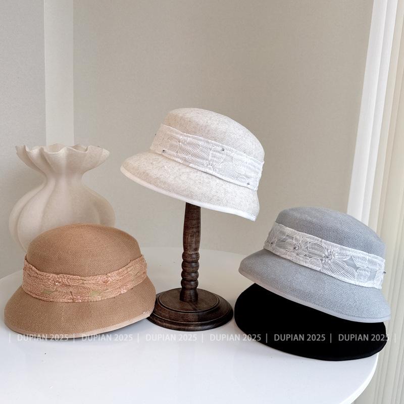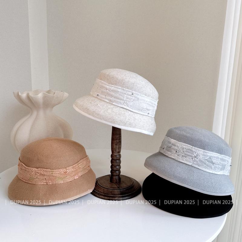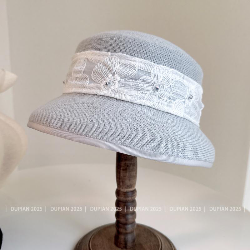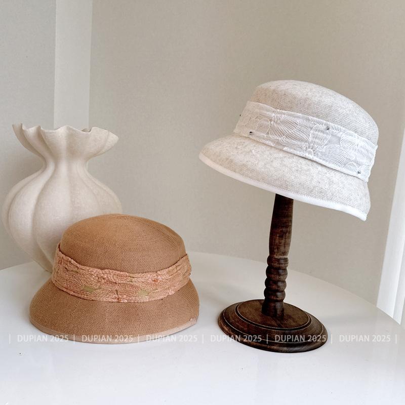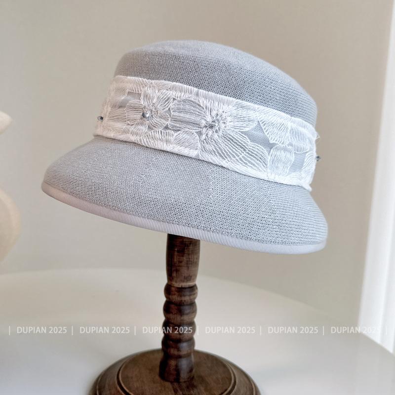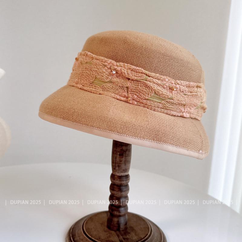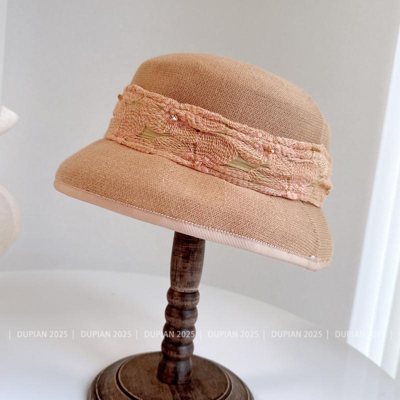 Gorro de Lámpara de Cinta Jacquard de Encaje Estilo Nacional para Mujer Verano y Gorro Tejido de Papel Envolvente Gorro de Cuenca Súper Suave y Denso Sombrero para el Sol