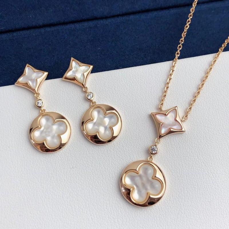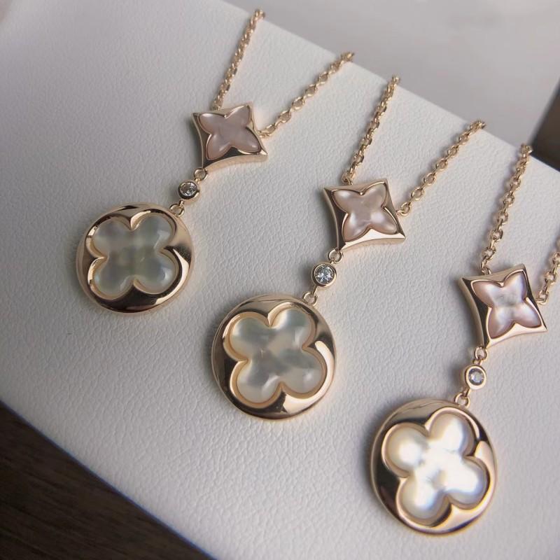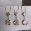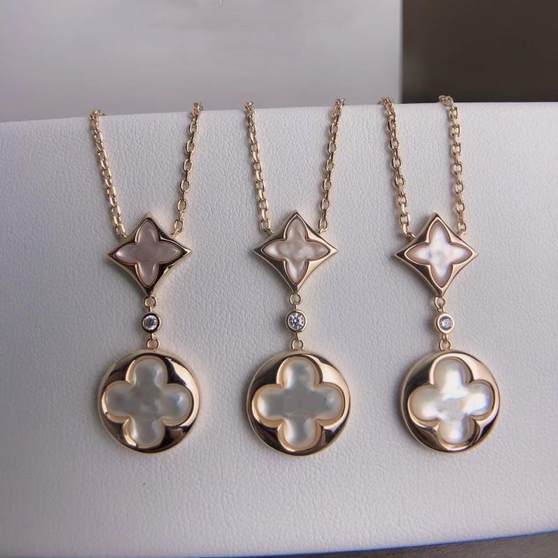 Collar de doble flor de fritillaria en oro V de alta calidad, chapado en oro rosa de 18 quilates, con colgante redondo de diamante nicho, cadena para clavícula.