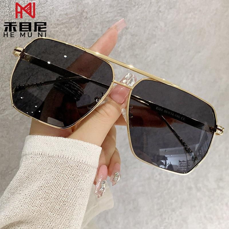 Lentes de sol para hombre y mujer al por mayor, montura grande, adelgazantes, de moda, de doble puente, para viaje, moda para vestir