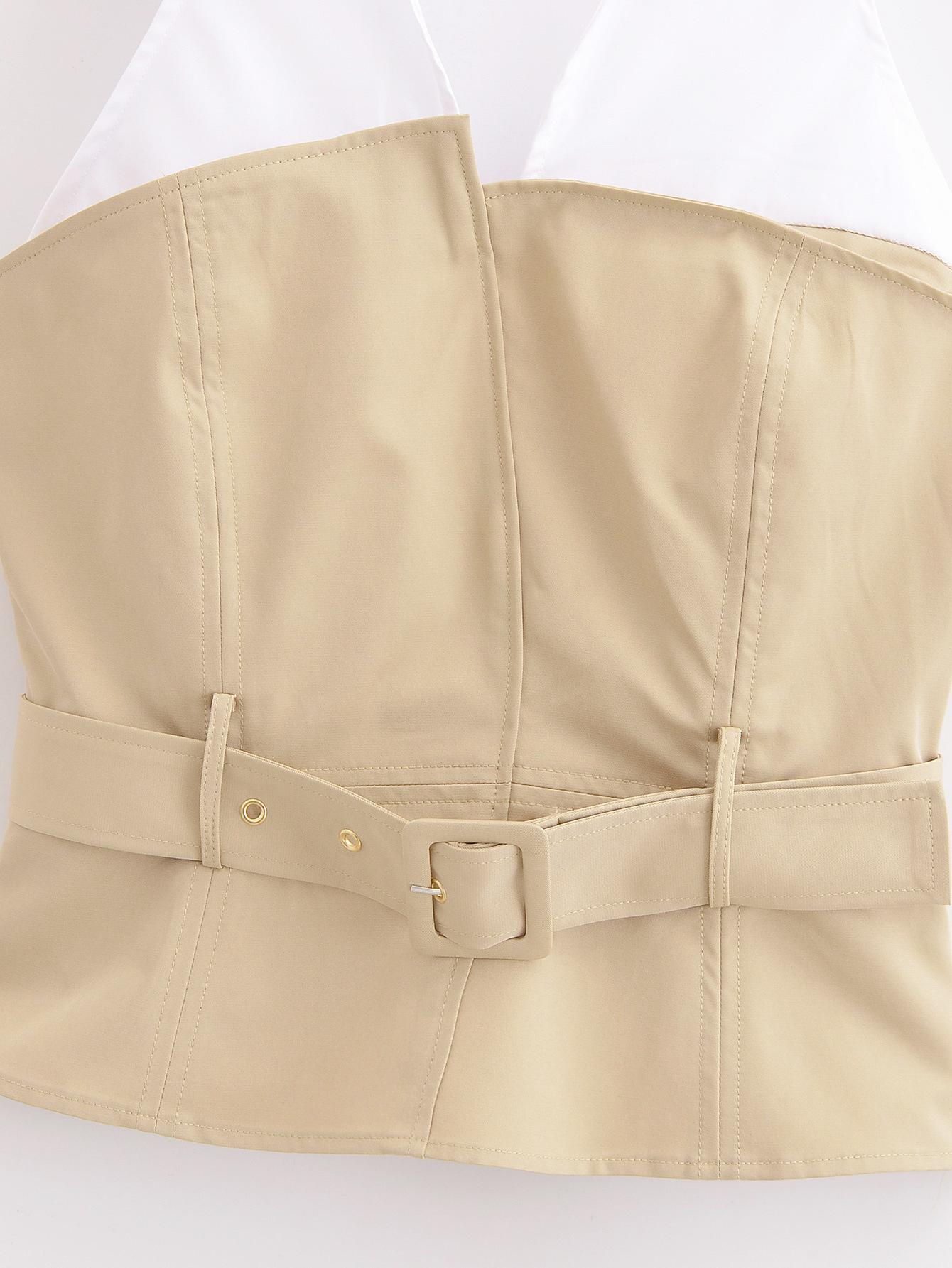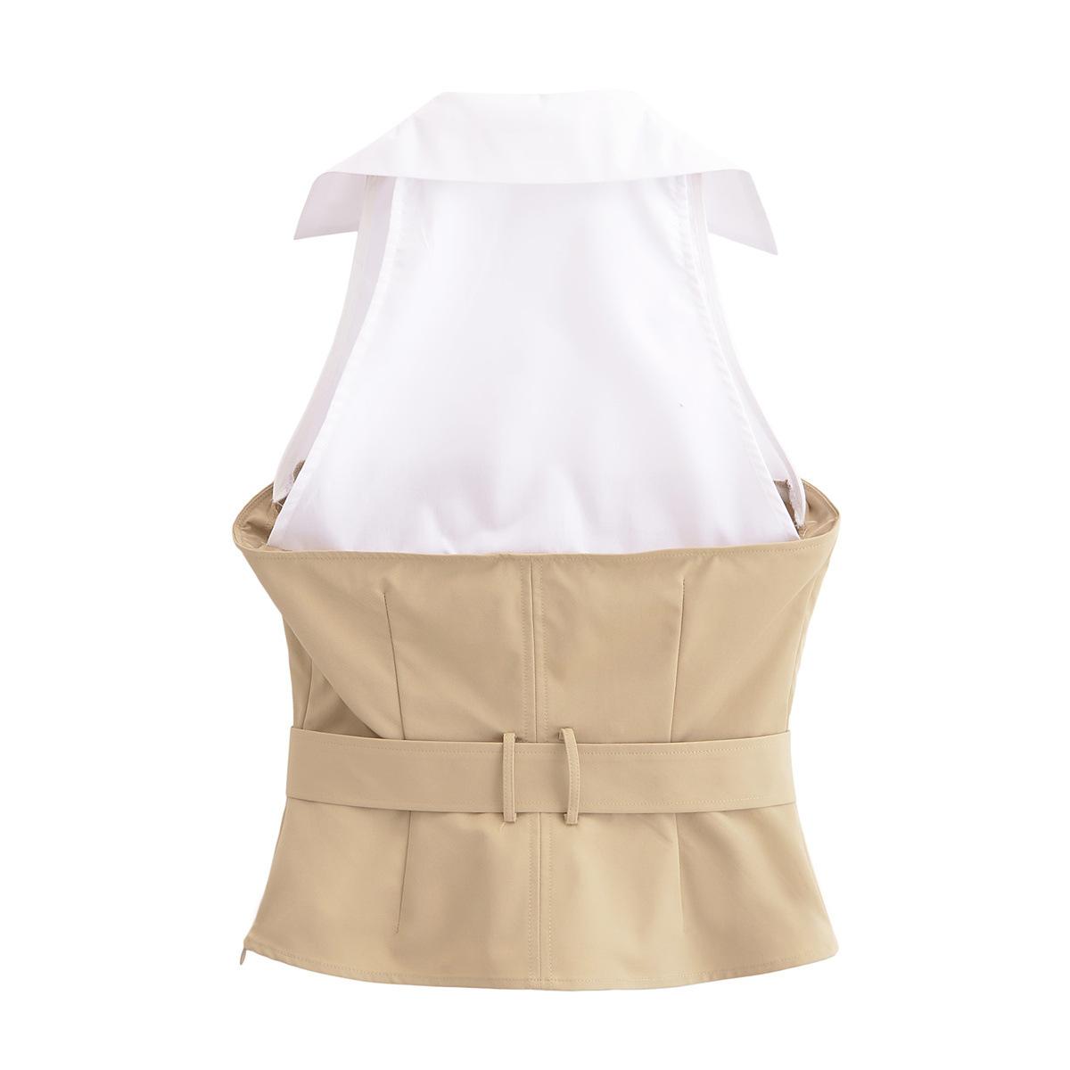 2025 primavera nuevo europeo y americano transfronterizo moda callejera para mujer cinturón cuello halter cosido chaqueta w09 11325