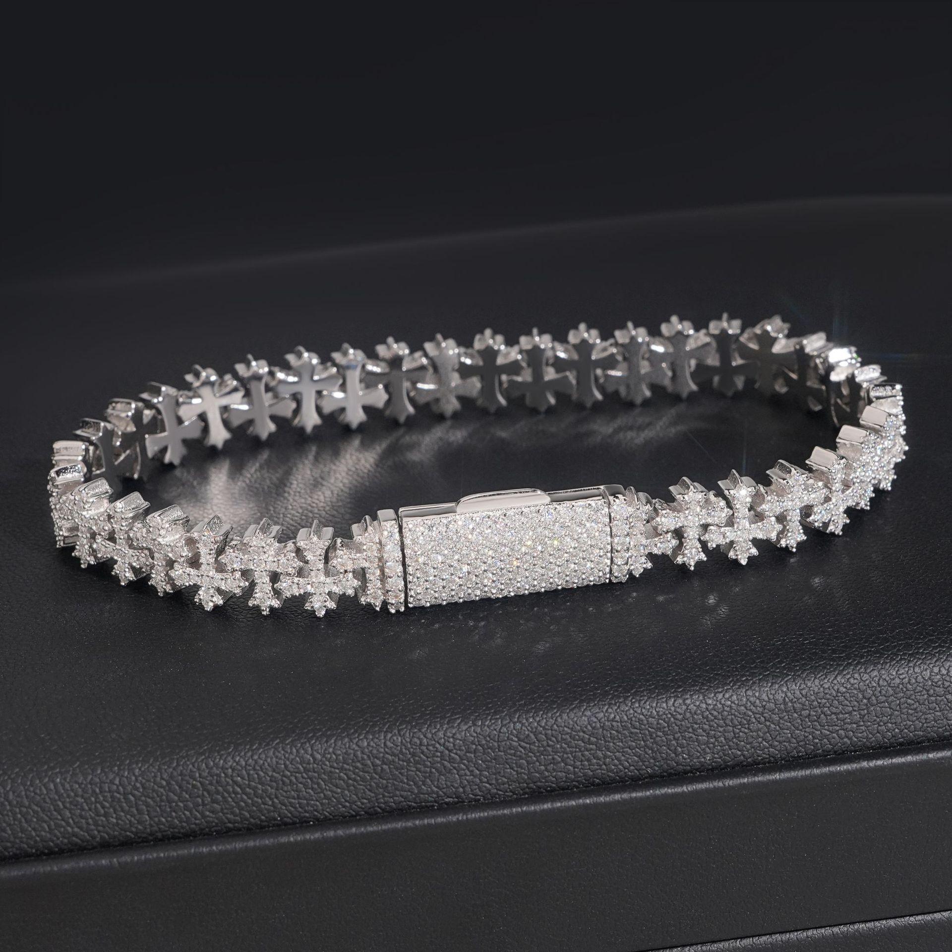 Europa y Estados Unidos suministro directo transfronterizo plata S925 moissanita 8.5mm cruz hip-hop pulsera cubana para hombres y mujeres
