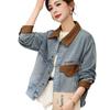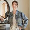 Chamarra de mezclilla corta vintage colorida con cuello polo para mujer, primavera y otoño 2025, nueva, manga larga pequeña, tipo cargo, moderna