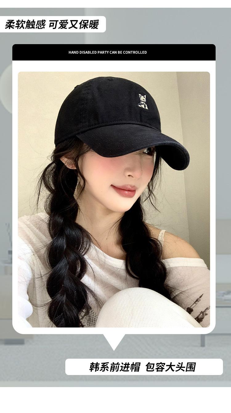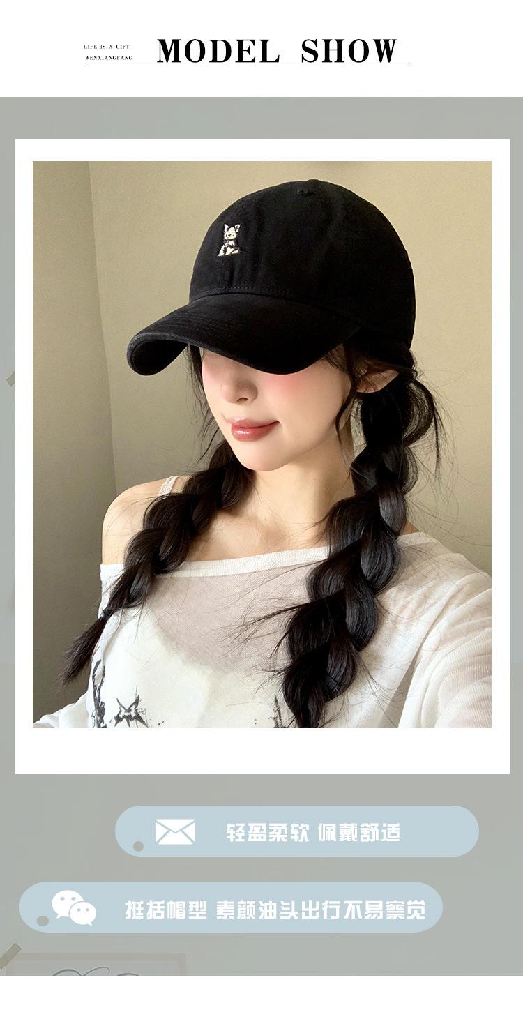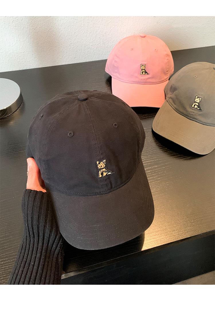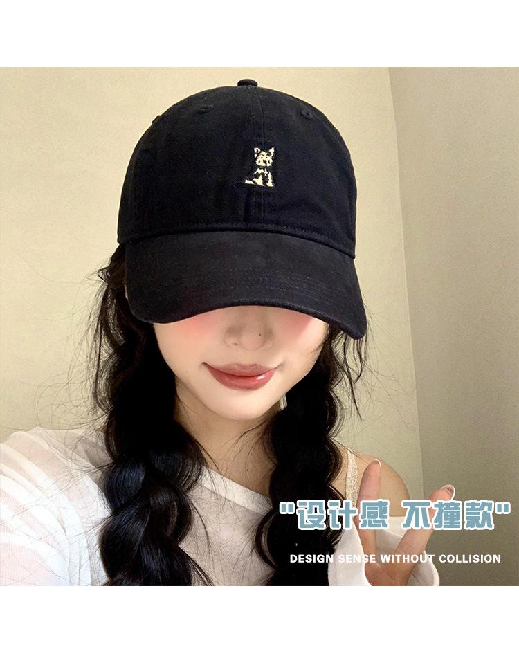 Gorra de Béisbol Bordada de Cachorro para Mujer 2025 Nueva Ala Ancha Cara Grande Gorra Pequeña Cabeza Grande Sombrero Negro