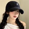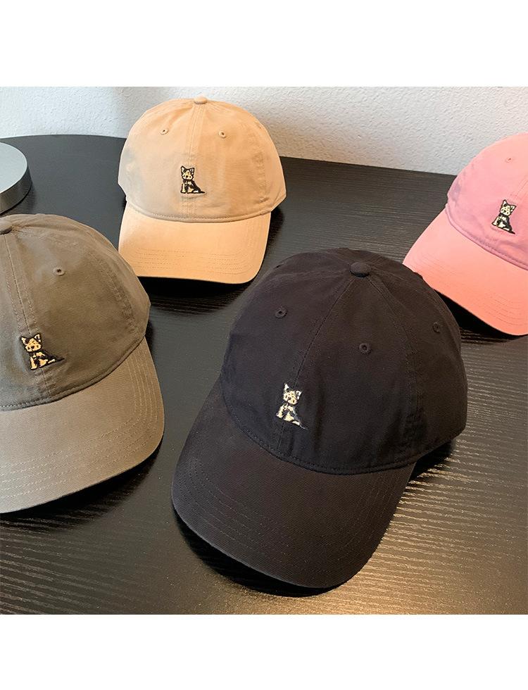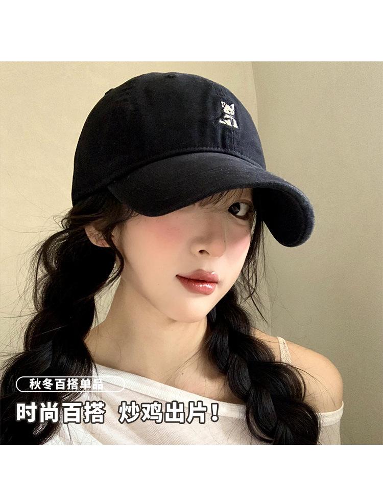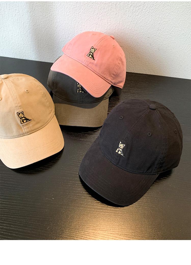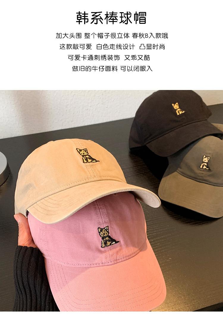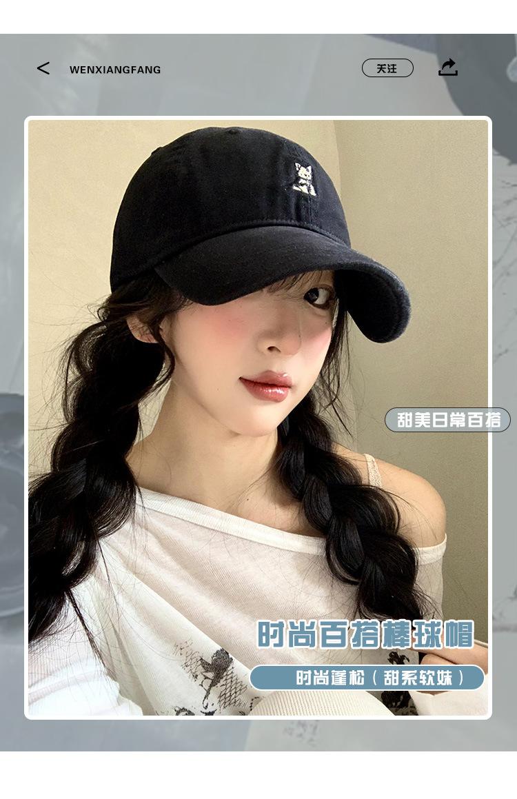 Gorra de Béisbol Bordada de Cachorro para Mujer 2025 Nueva Ala Ancha Cara Grande Gorra Pequeña Cabeza Grande Sombrero Negro