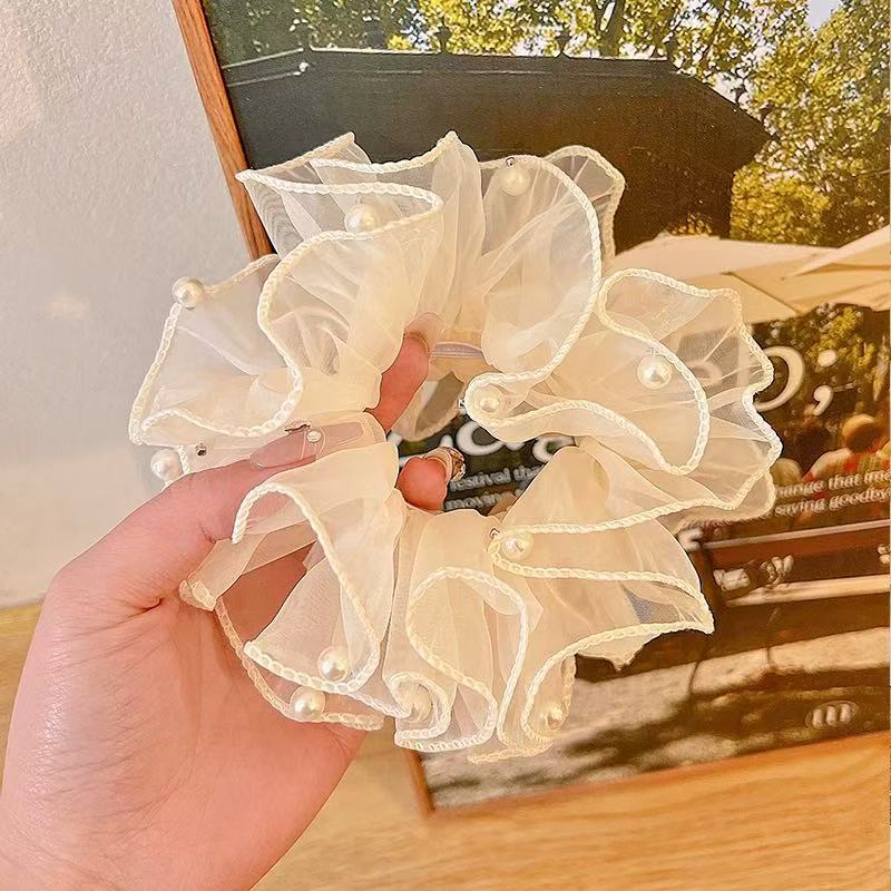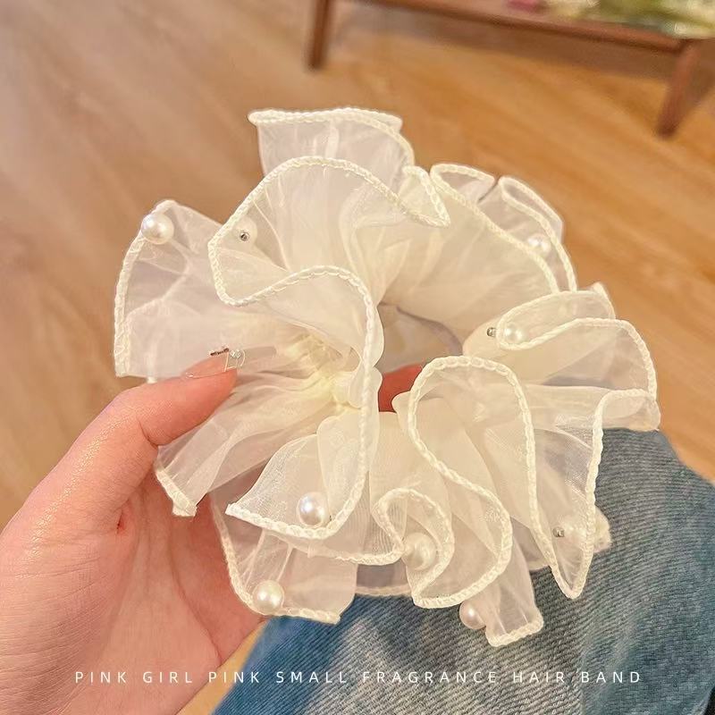 Anillo para el cabello de intestino grueso de organza francesa, cuerda para la cabeza con perla de alta calidad, cuerda para la cabeza con bola para mujer, estilo simple, elegante redecilla para el cabello