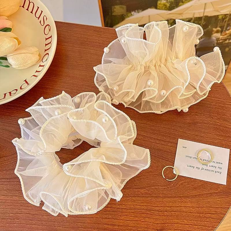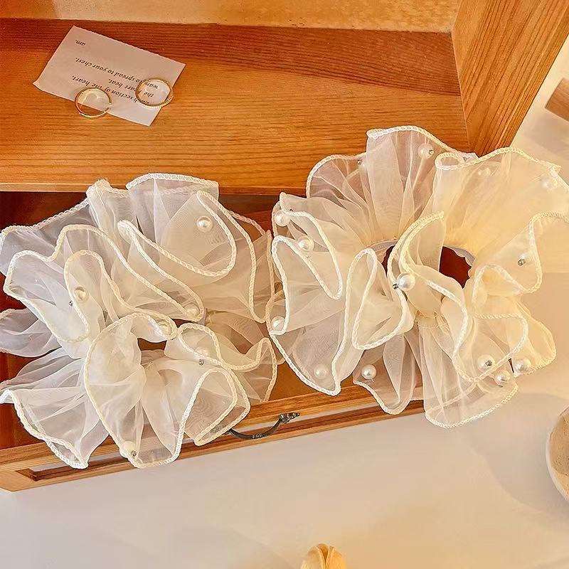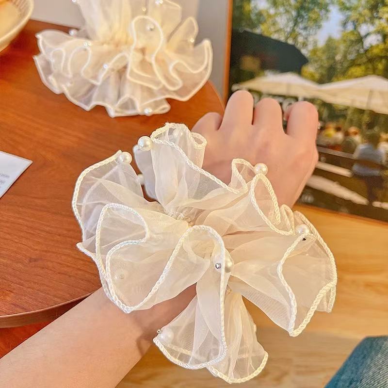 Lace mesh pearl hair tie