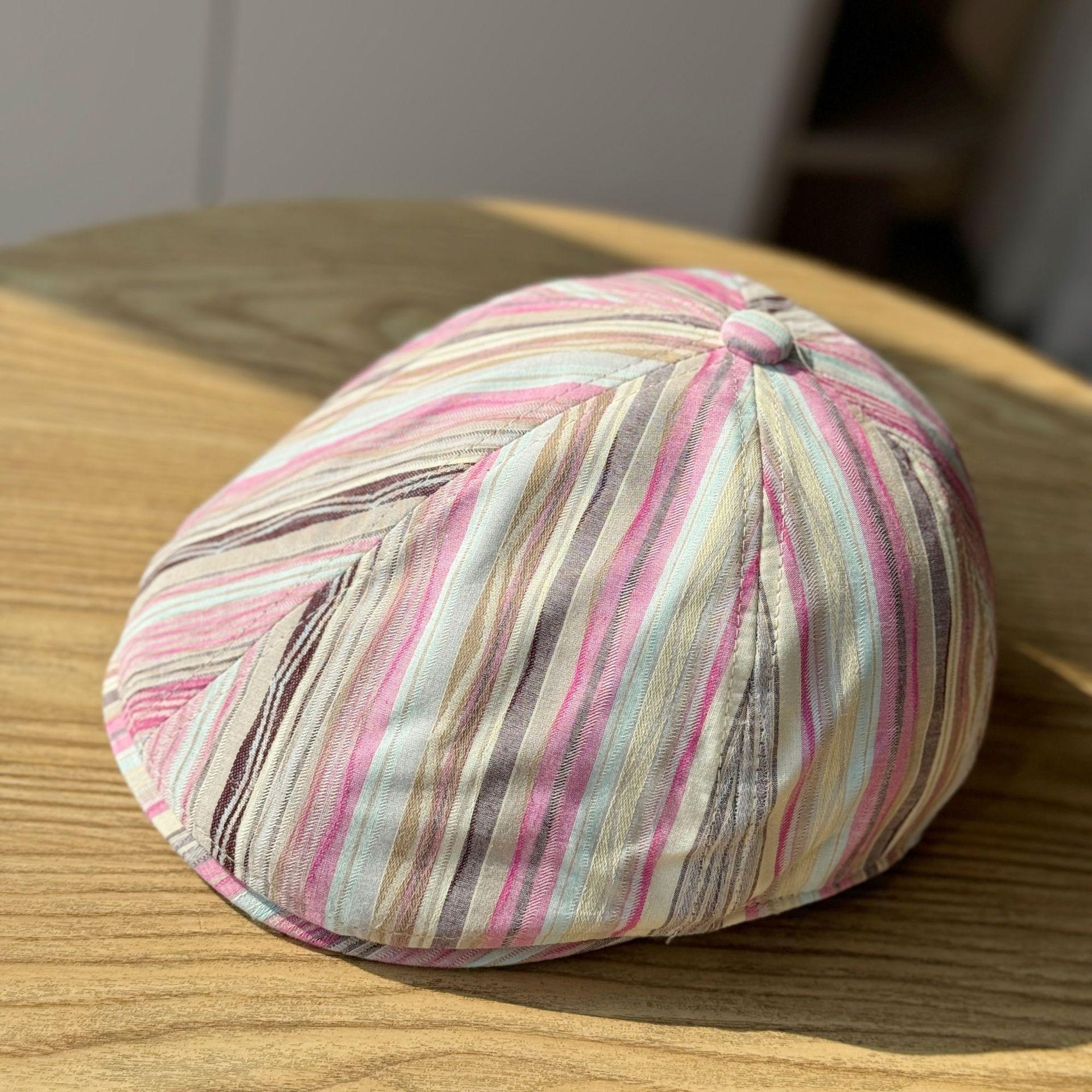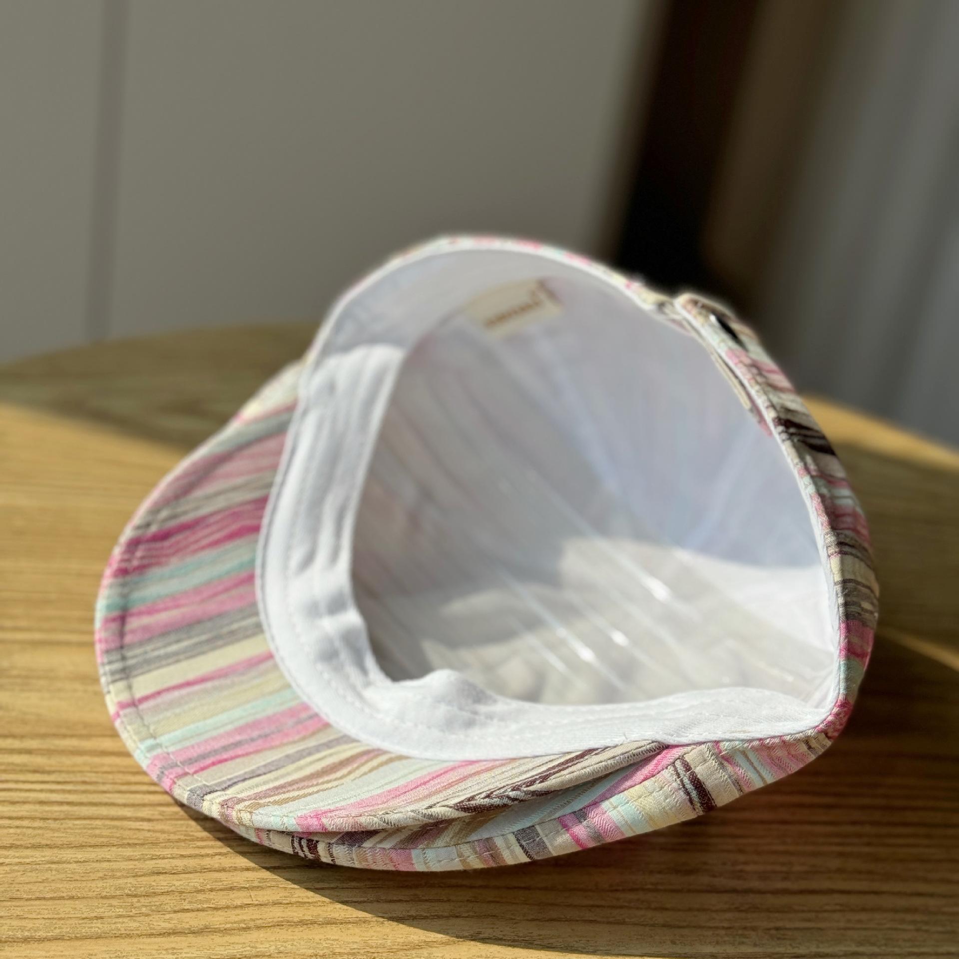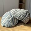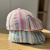 Gorra de Visera Rayada Color Retro Estilo Japonés para Mujer Sencilla que Muestra el Rostro Pequeña Artística Combinable Boina Primavera y Verano Sombrero Delgado