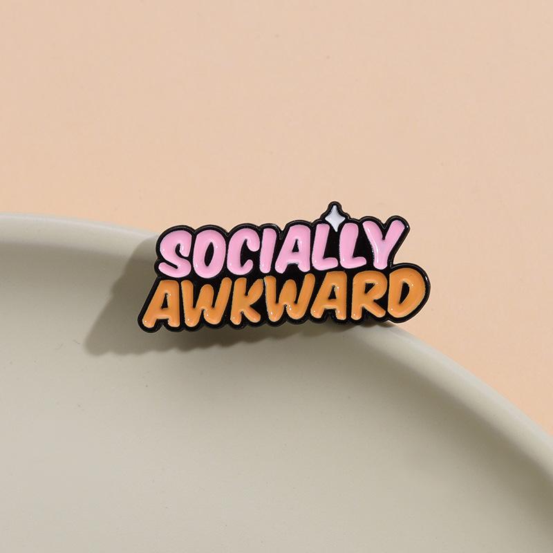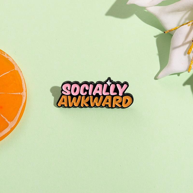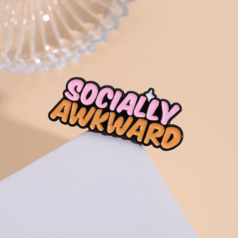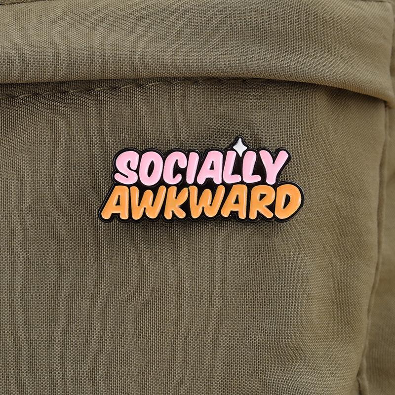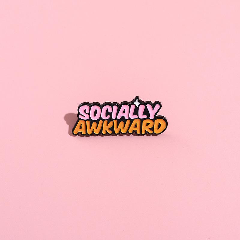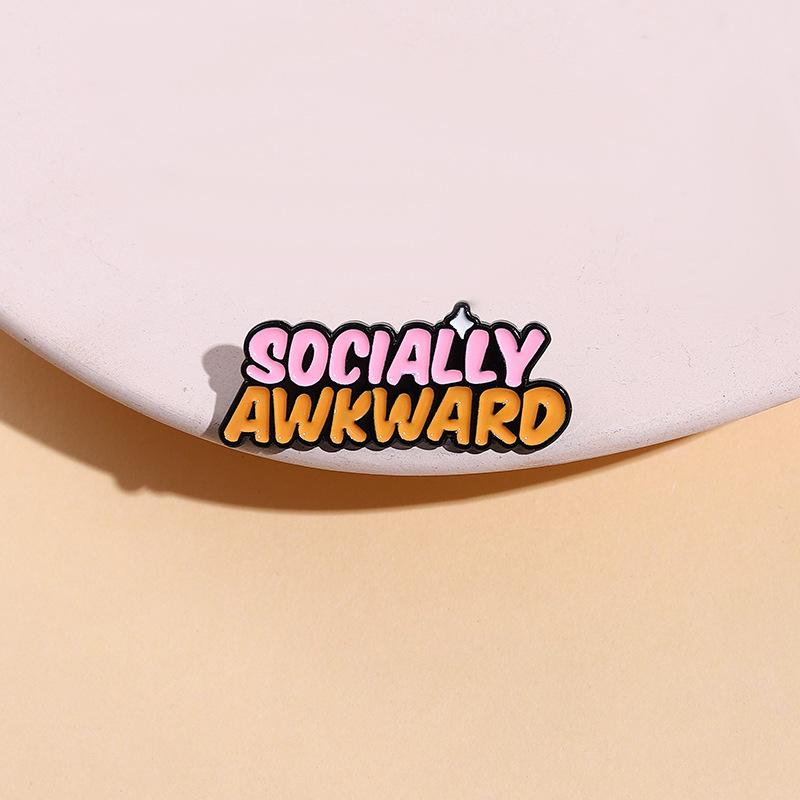 Nuevo broche de metal con letras en inglés bicolor personalizado de dibujos animados, insignia social creativa SOCIALMENTE INCOMPLETA