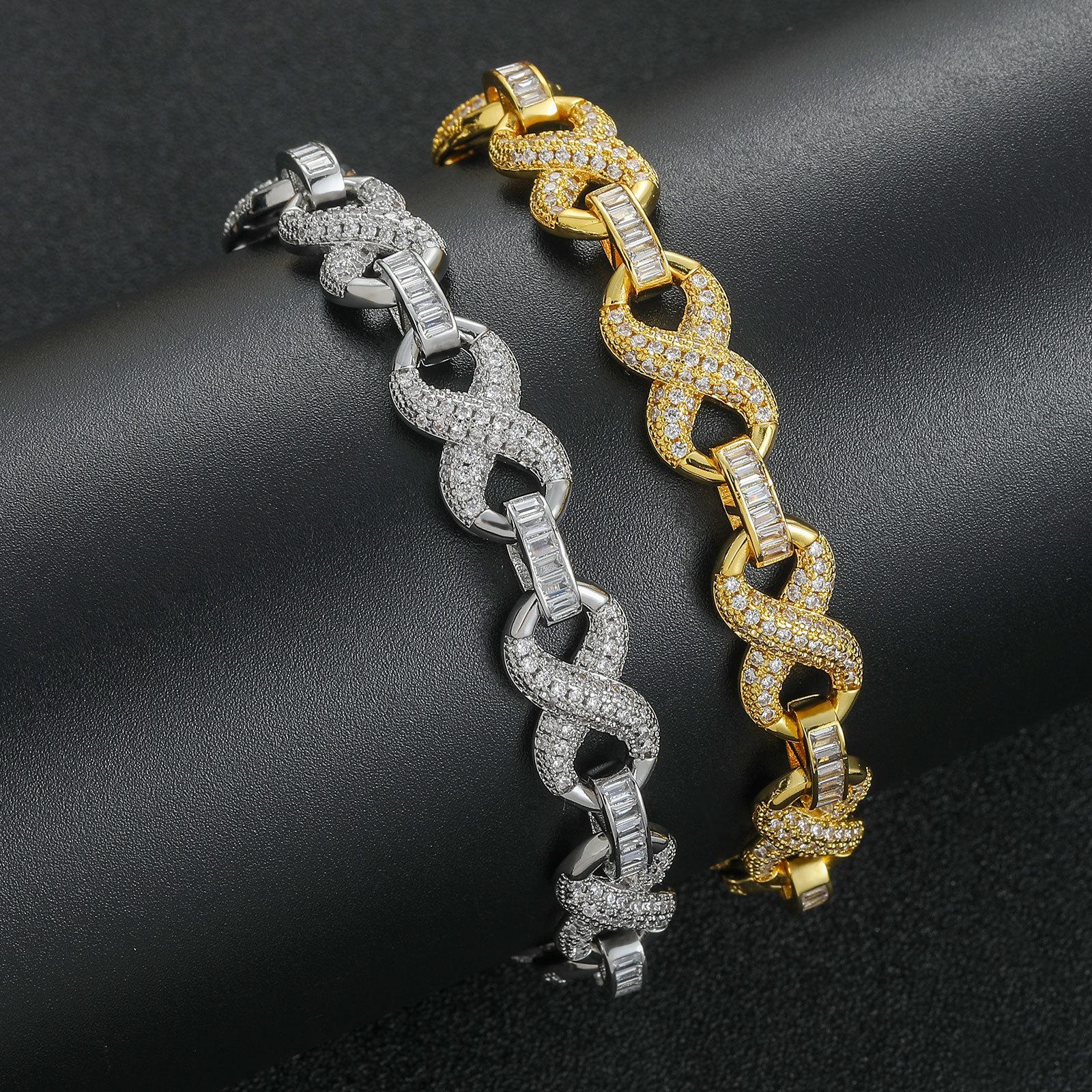 Pulsera Meisa Nueva Europea y Americana Hip Hop 10mm Cadena Ilimitada 8 Caracteres Personalizada Cadena Cubana para Hombres y Mujeres Accesorios Nicho Hip Hop