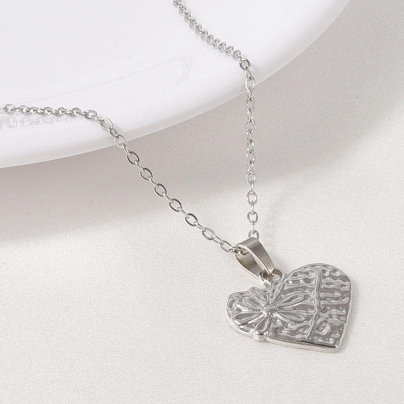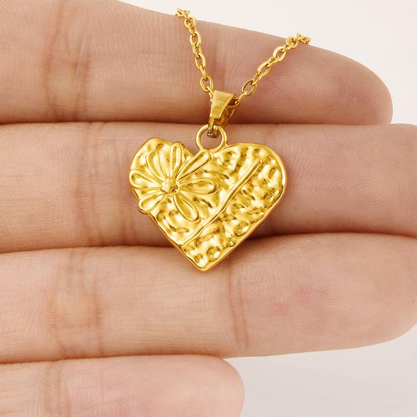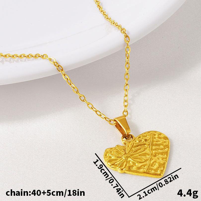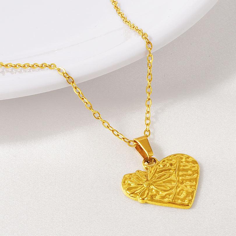 Collar con colgante de amor en relieve de acero inoxidable 304, estilo europeo y americano, oro de 18 quilates, cadena de clavícula de lujo ligera y nueva.