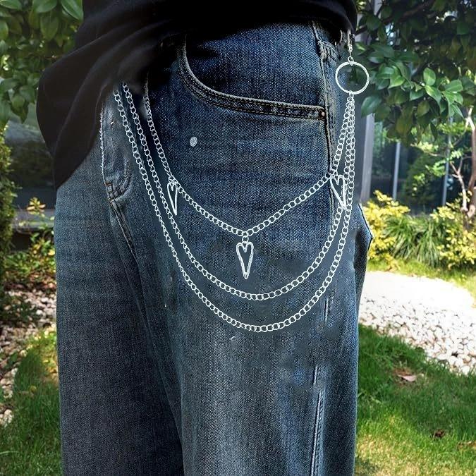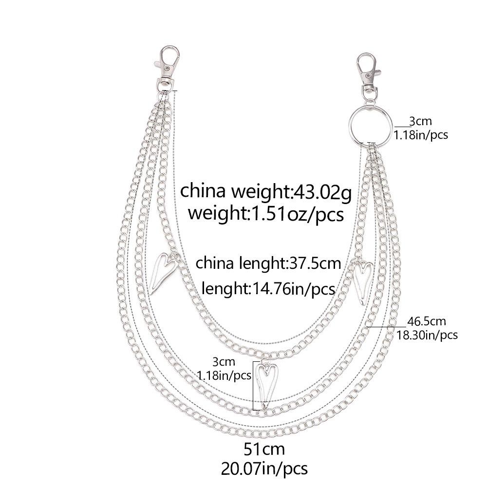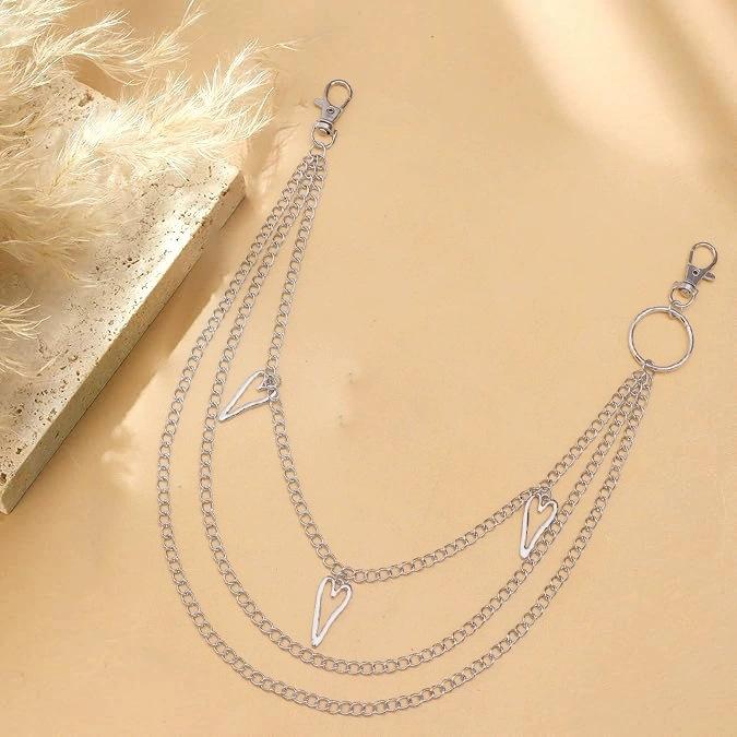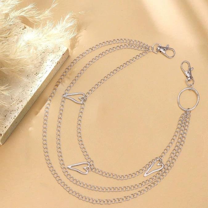 Cadena de cintura transfronteriza europea y americana, tendencia de moda, colgante de amor hueco, cadena de pantalones de metal, accesorios para jeans punk que combinan con todo.