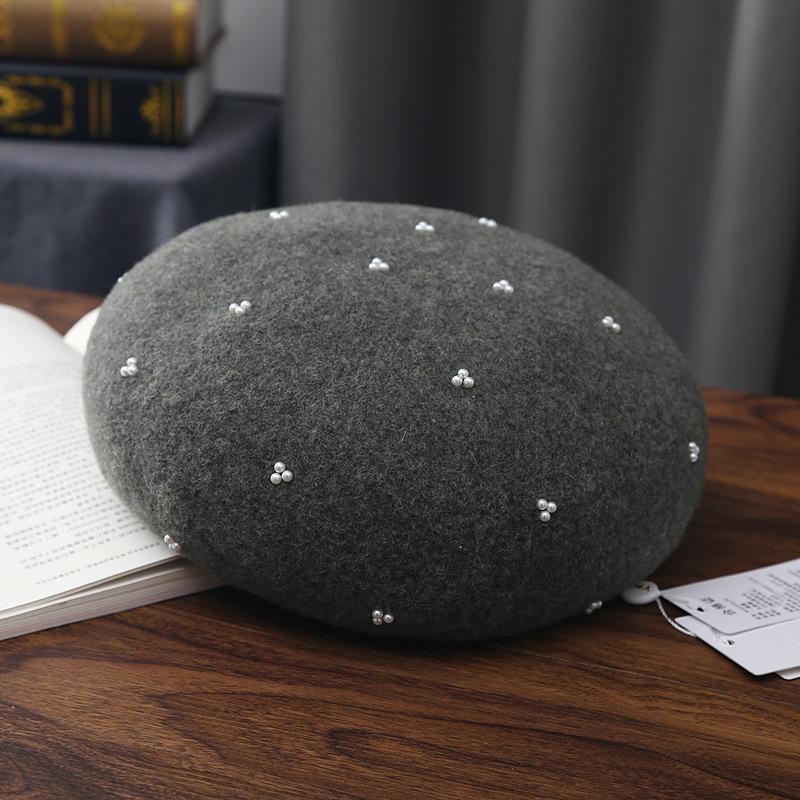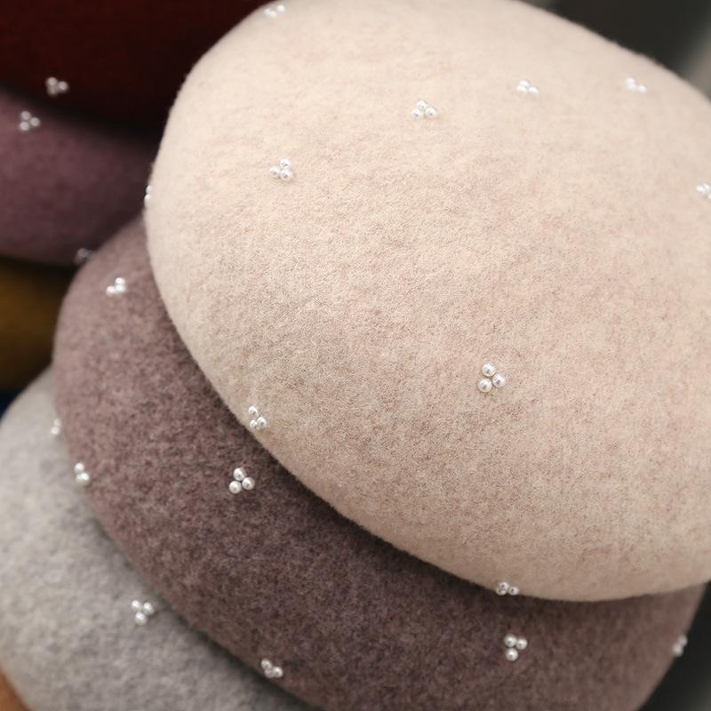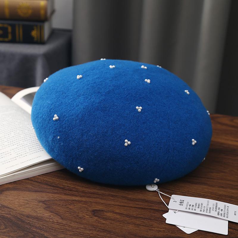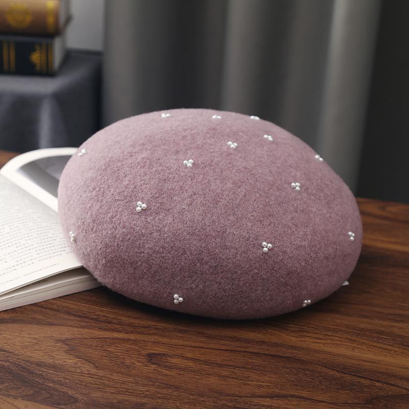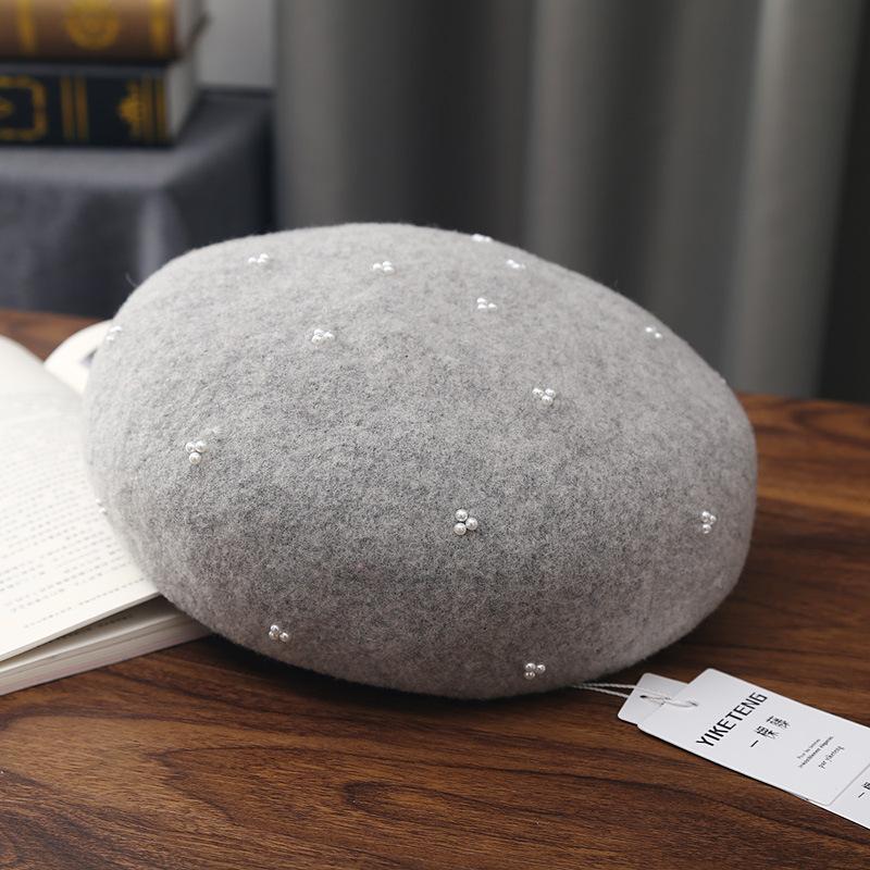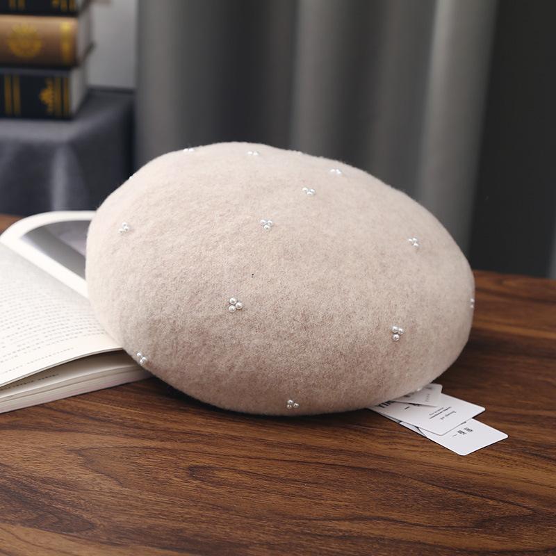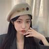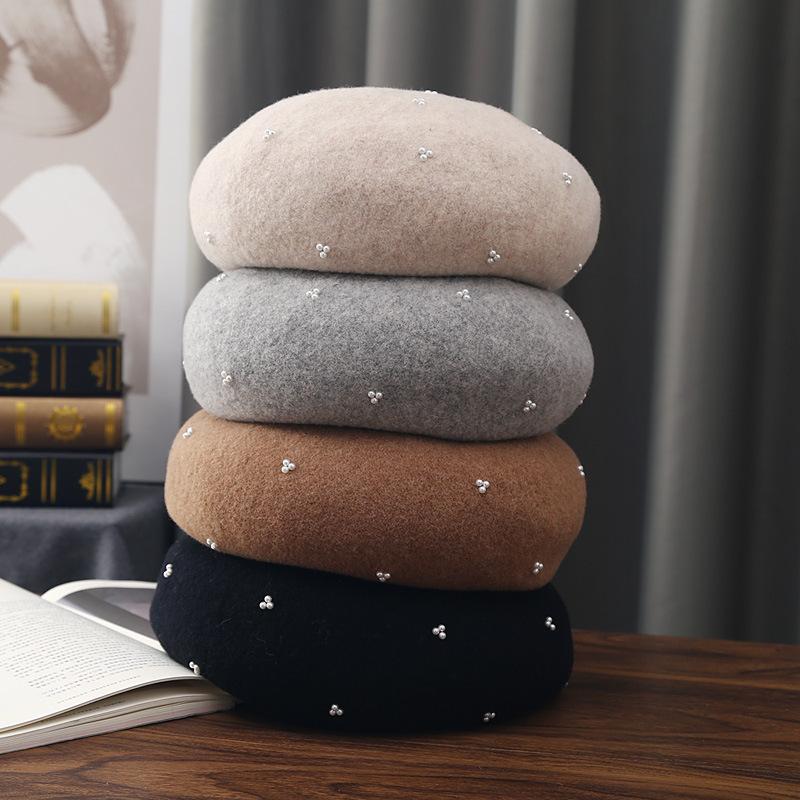 Boina de lana perlada estilo japonés estilo rojo de red para mujer, gorro de pintor cálido retro de invierno, elegante y elegante gorro de calabaza a la moda.
