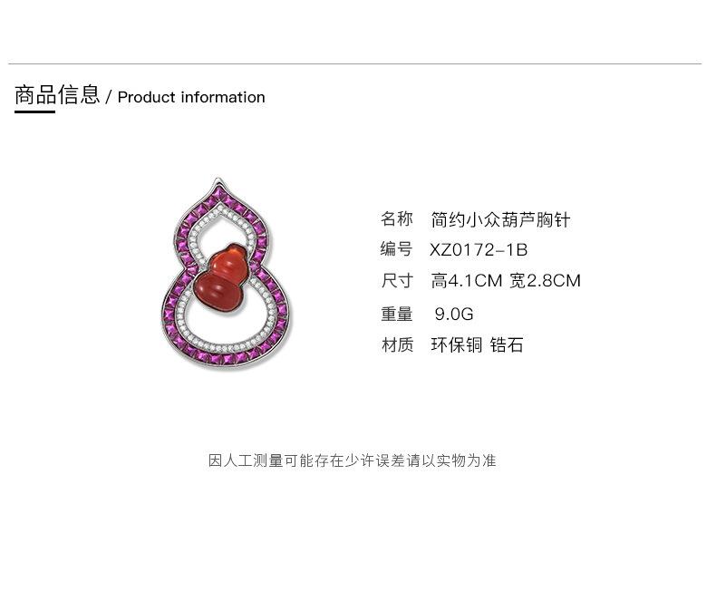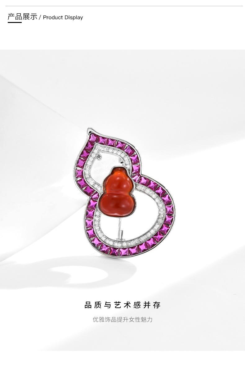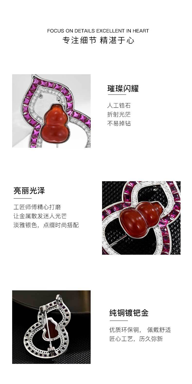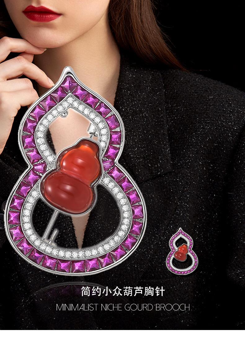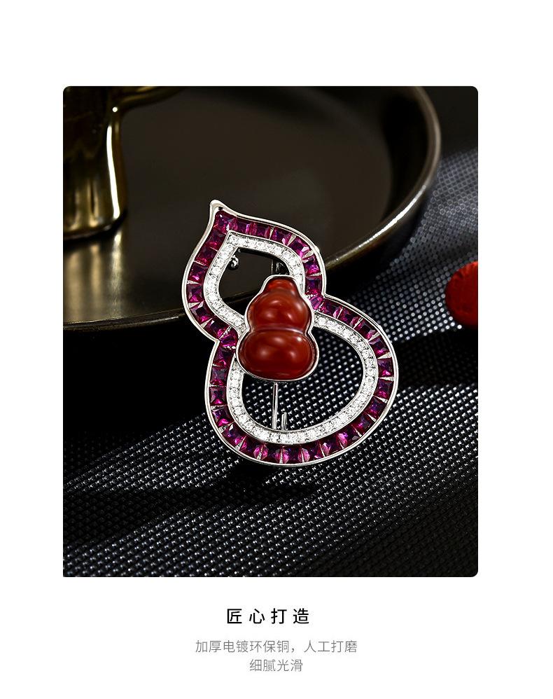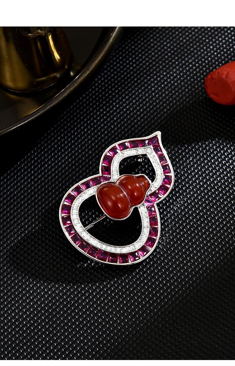 Nuevo Estilo Ins Broche Clásico Creativo Calado de Calabaza Calcedonia Corindón Rojo Corsage Creativo Broche Fabricante Venta al por Mayor