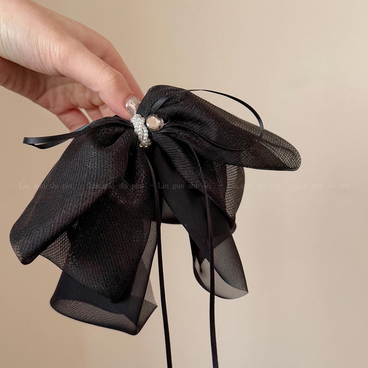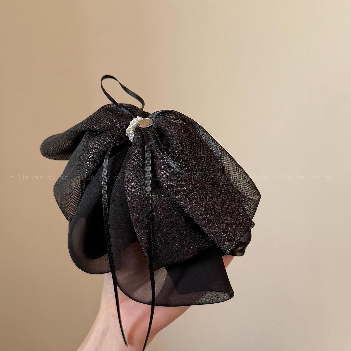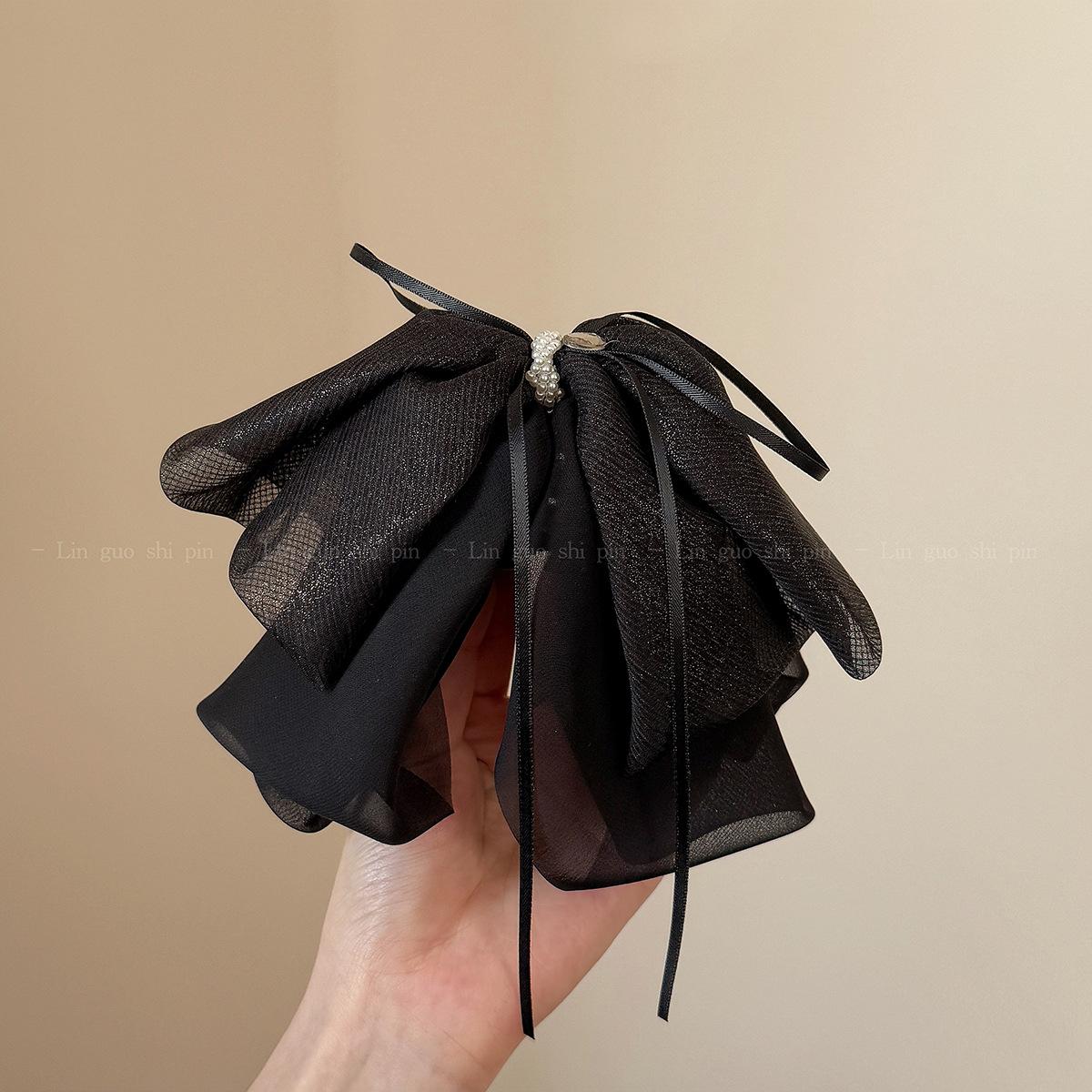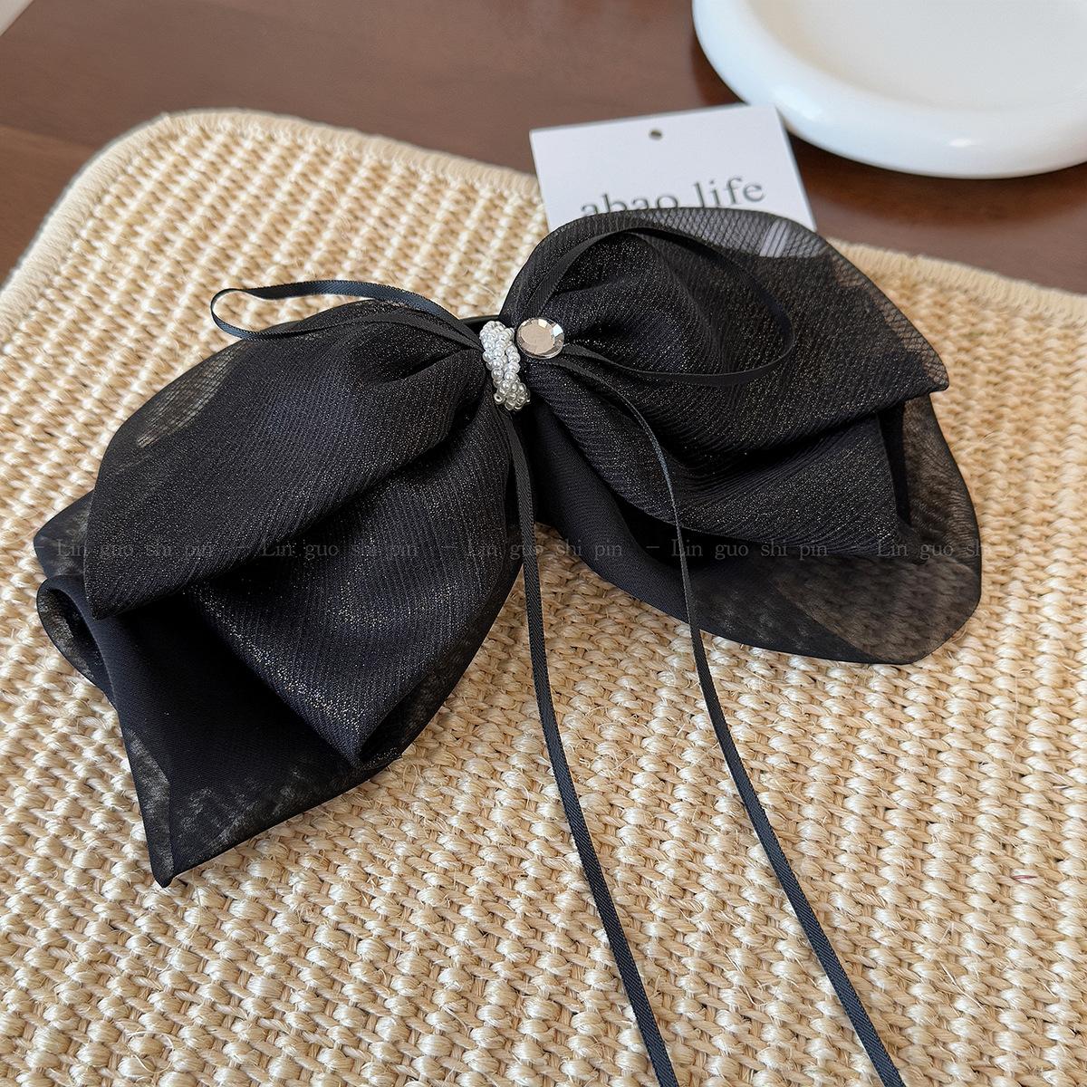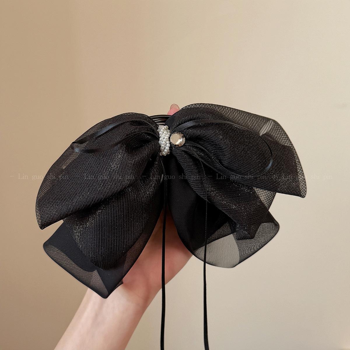 Francés Lujo Ligero Elegante Negro Malla Clip Cola de Caballo Lazo Cinta Pasador Parte Trasera Cabeza Semirrecogido Agarre para el Cabello Pasador