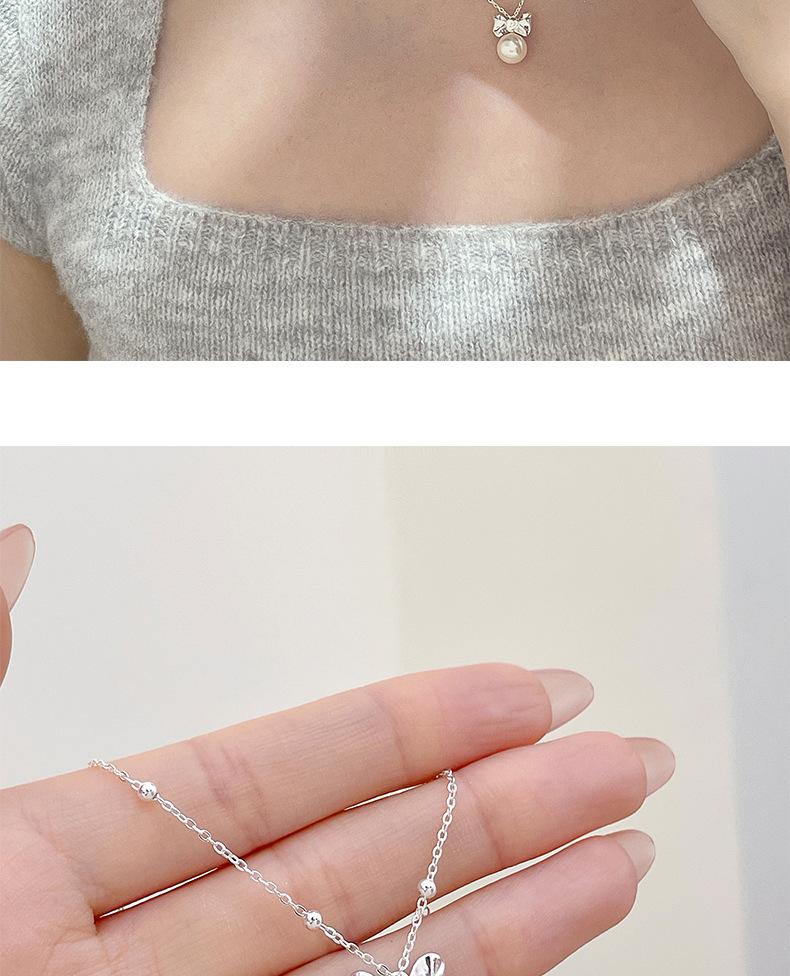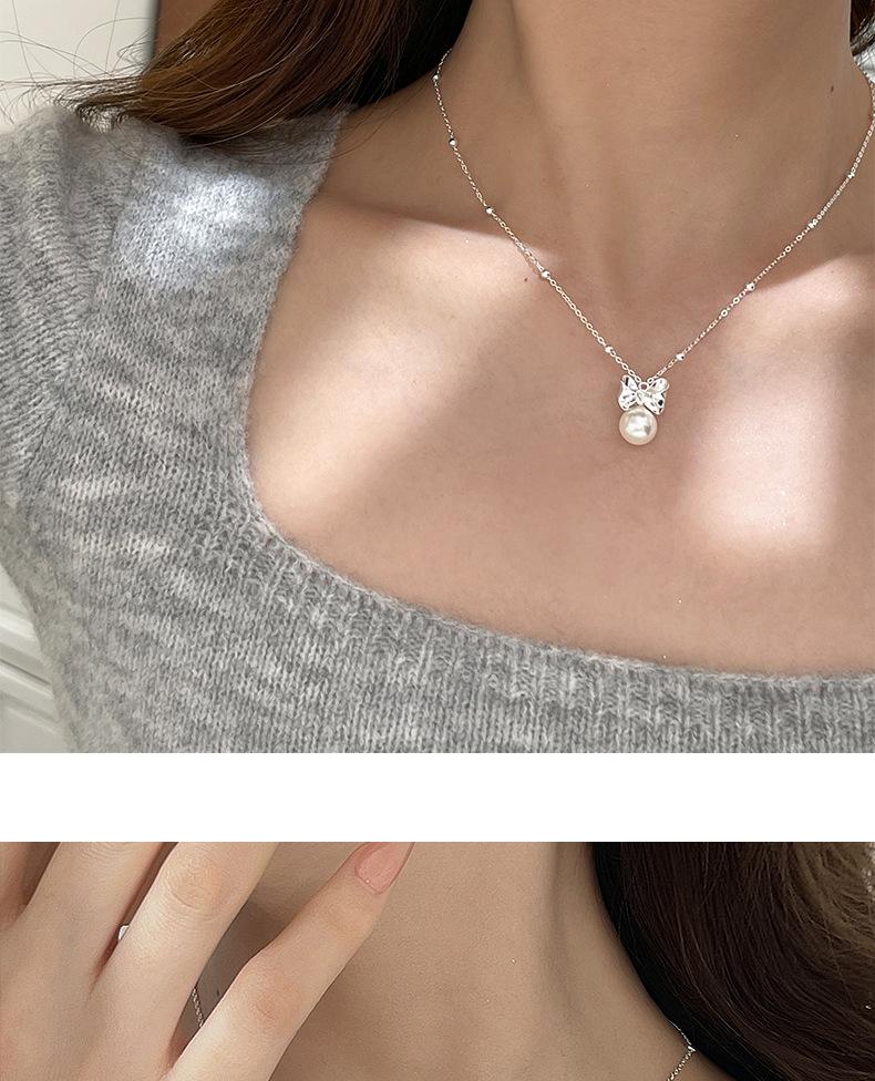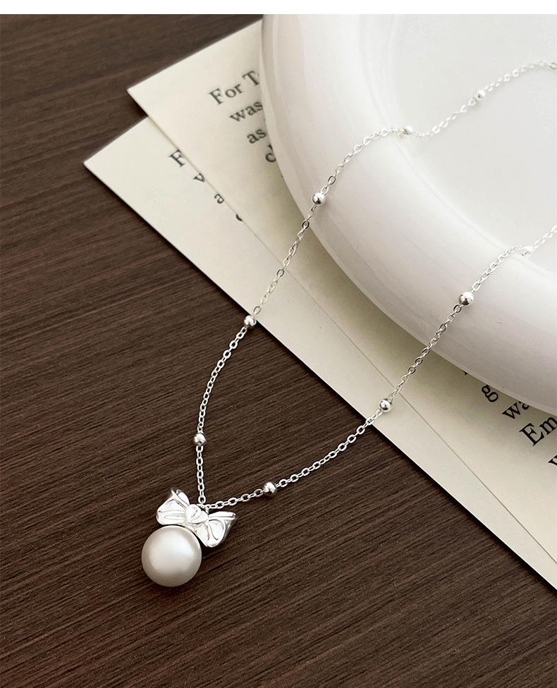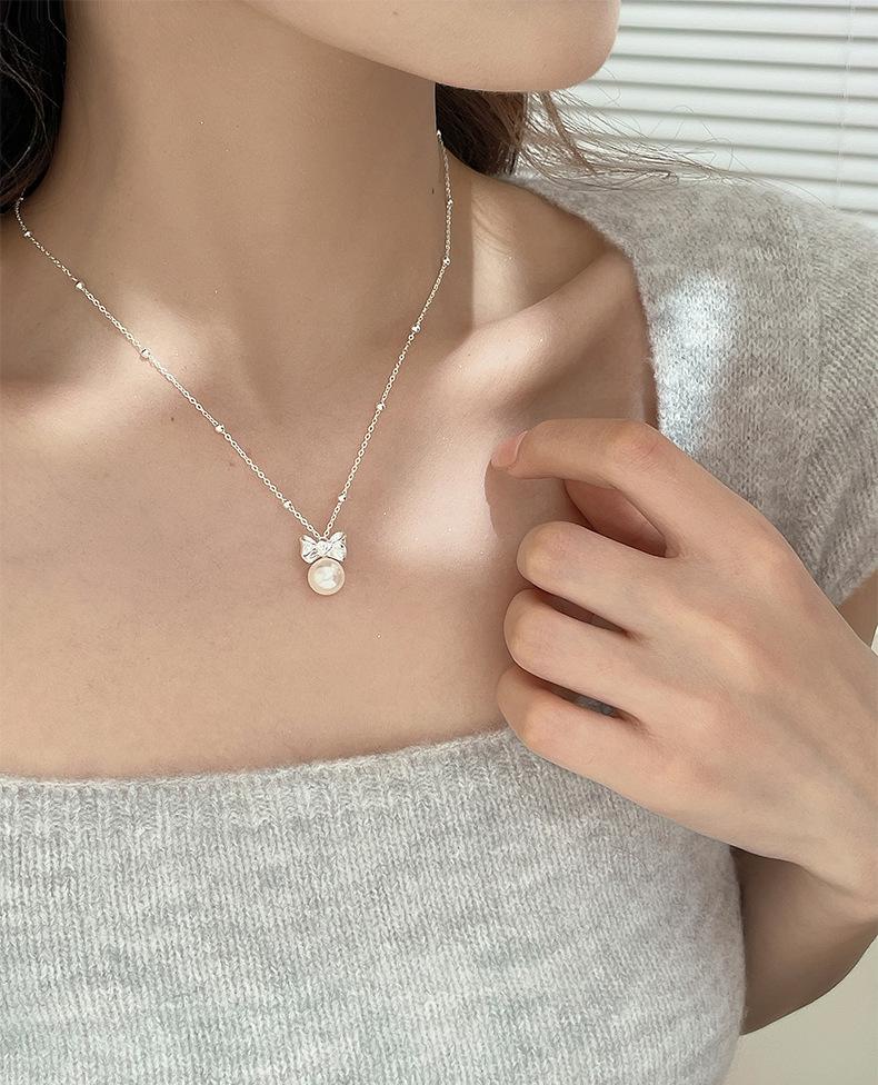 Collar original de plata de ley S925 con lazo de amor y perlas para mujer, sencillo y de lujo, con cadena de clavícula de alta gama.