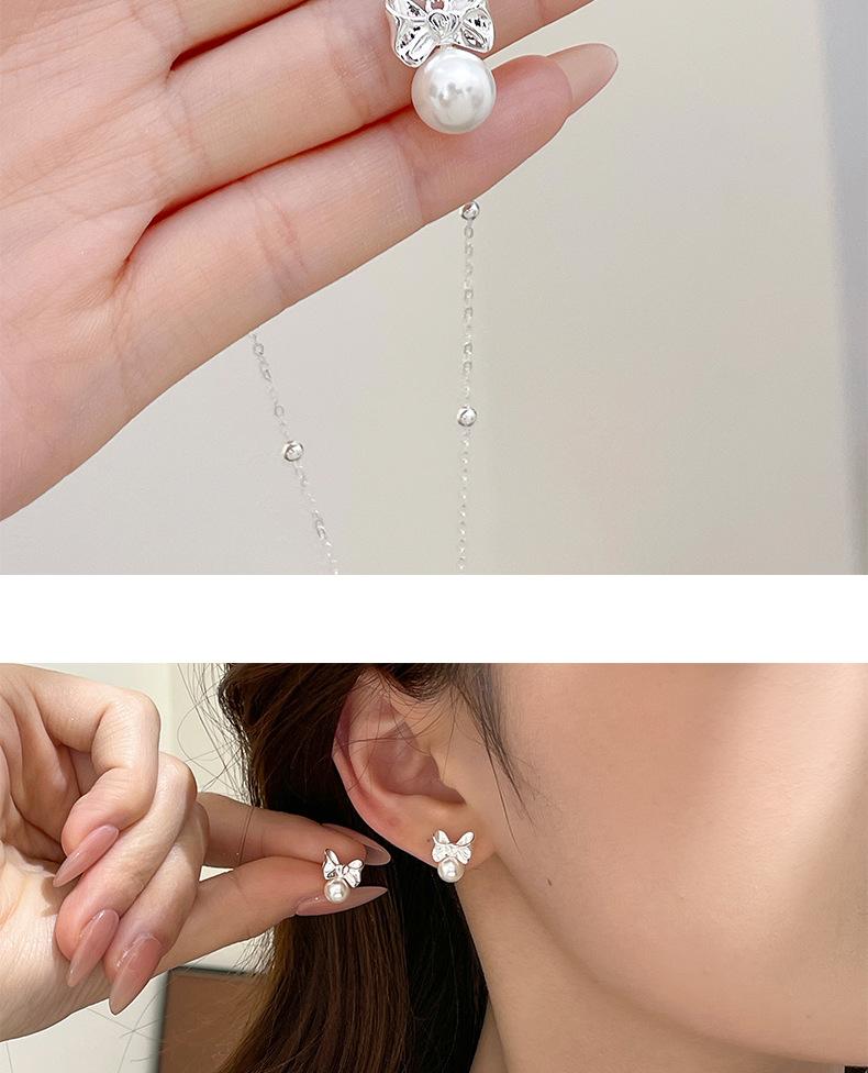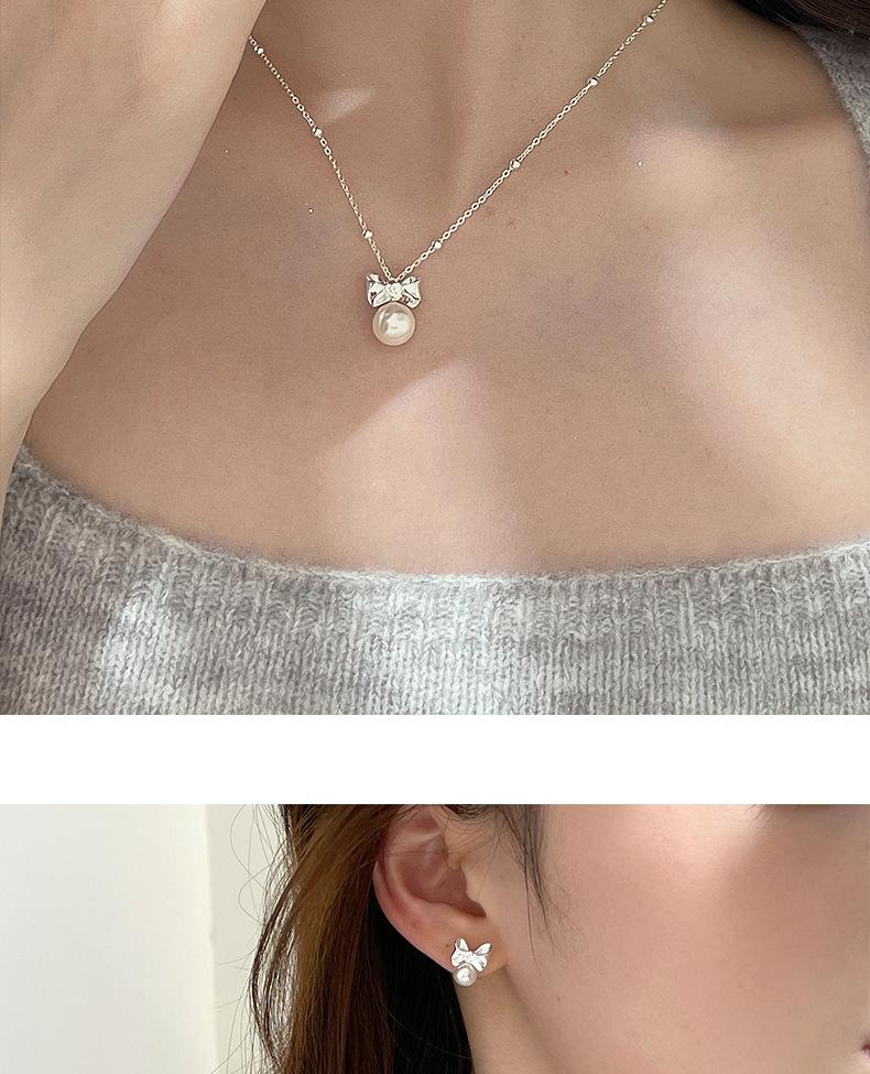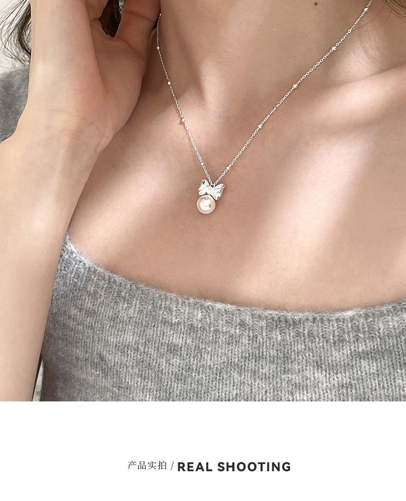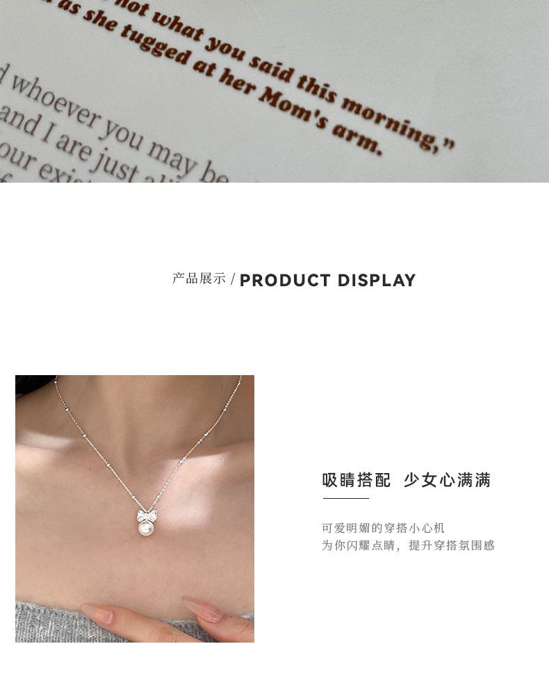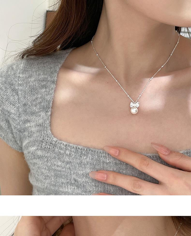 Collar original de plata de ley S925 con lazo de amor y perlas para mujer, sencillo y de lujo, con cadena de clavícula de alta gama.
