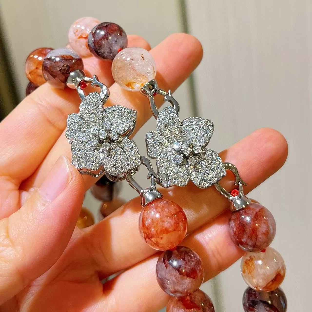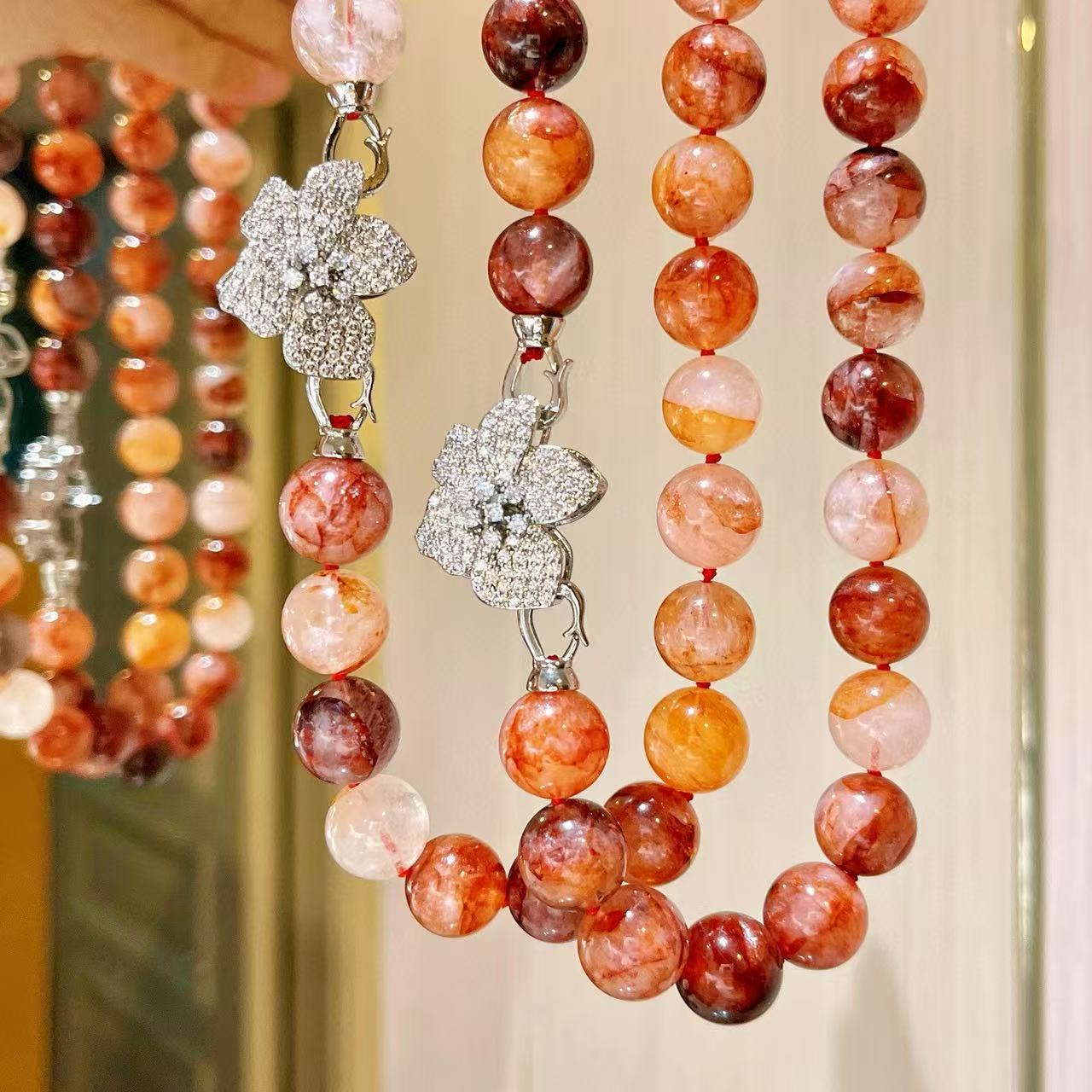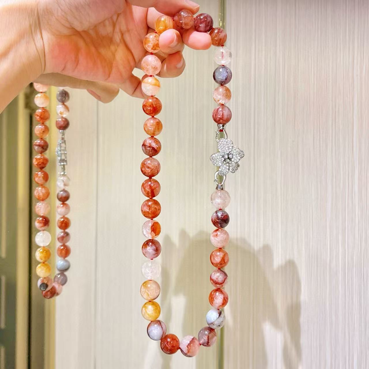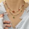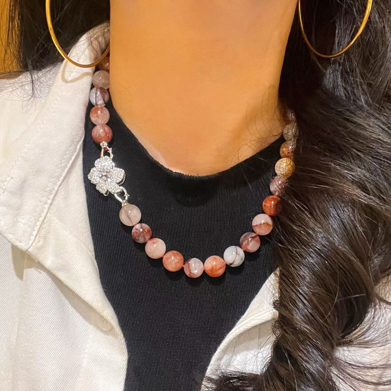 Collar de flor de pegamento rojo natural de grano grande de 12 mm cadena para clavícula