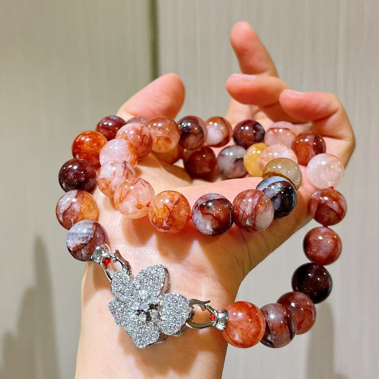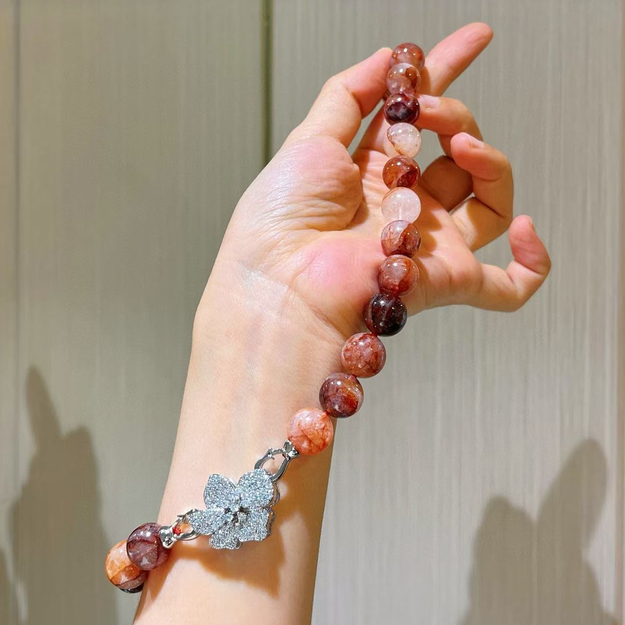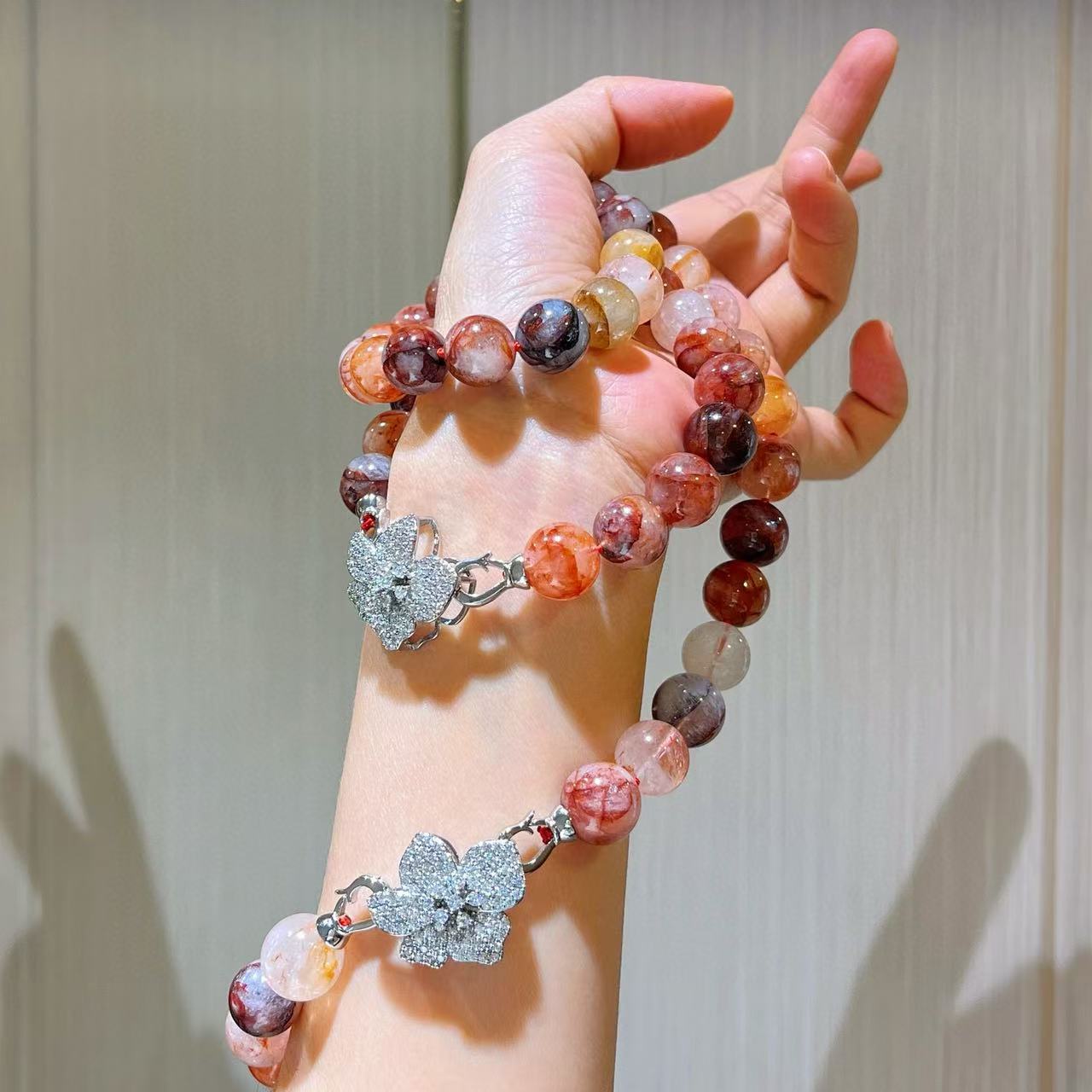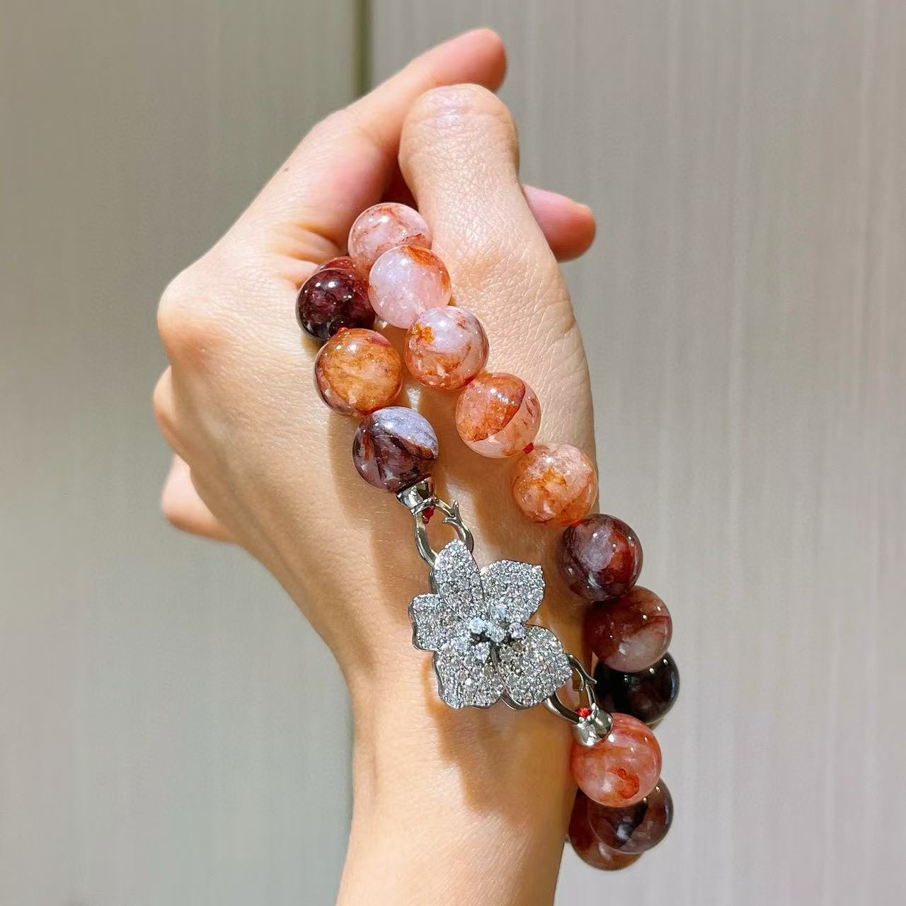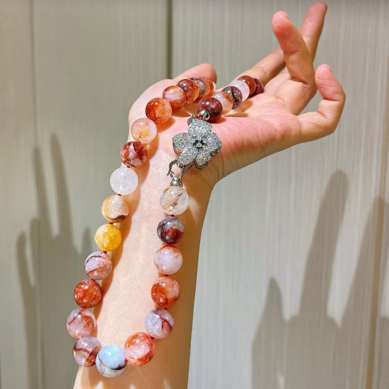 Collar de flor de pegamento rojo natural de grano grande de 12 mm cadena para clavícula