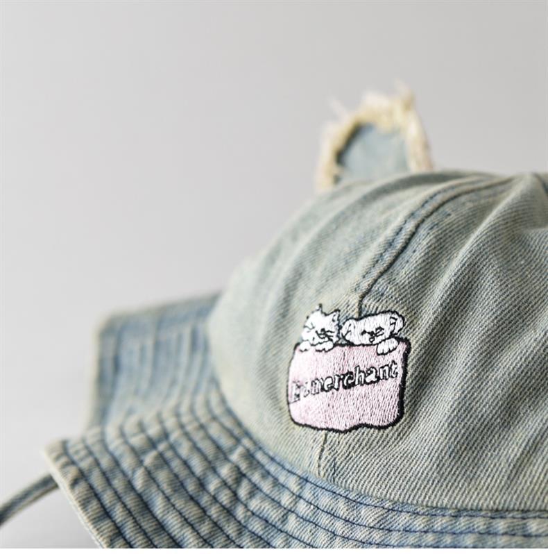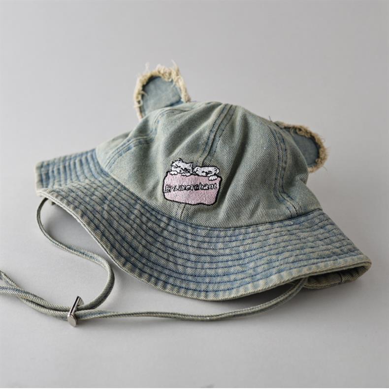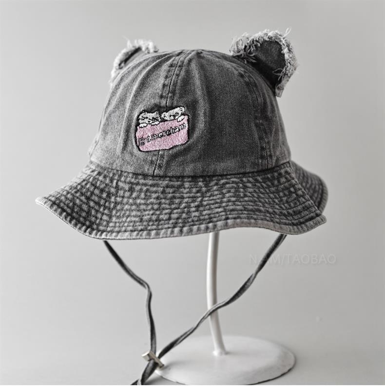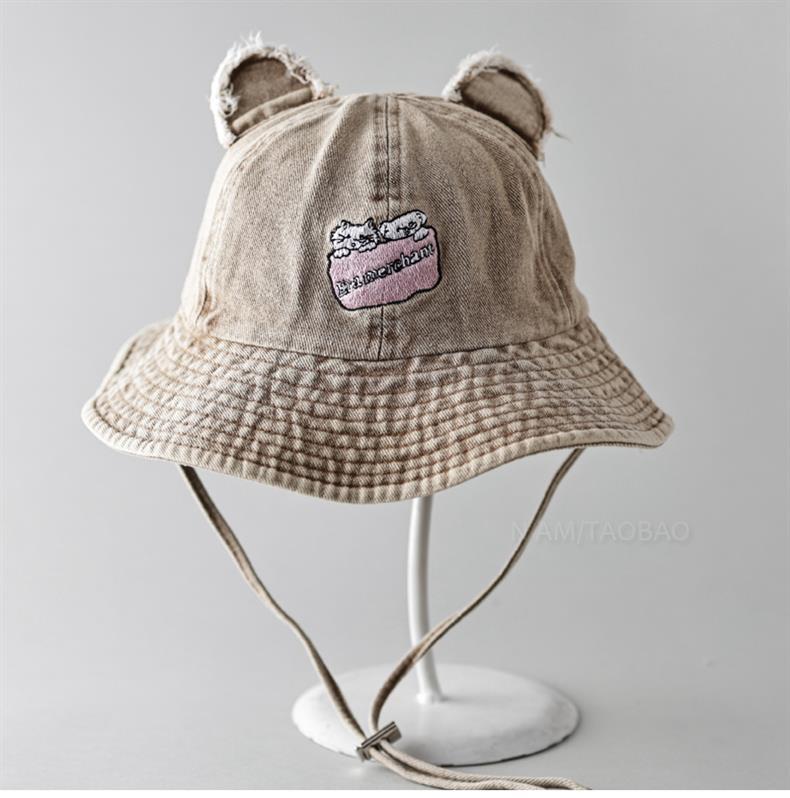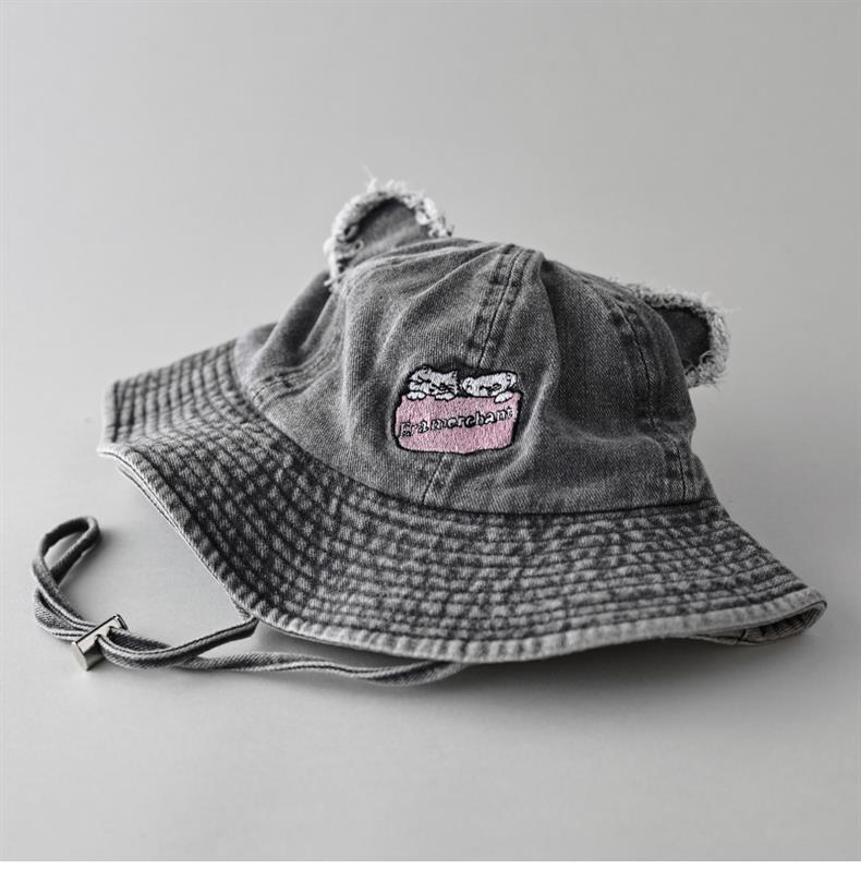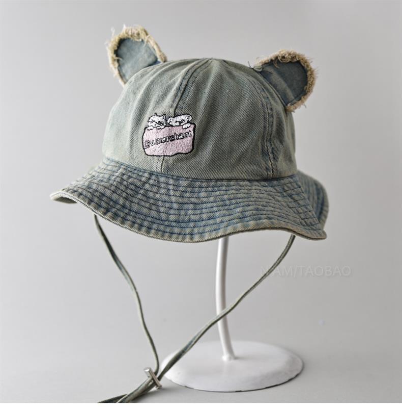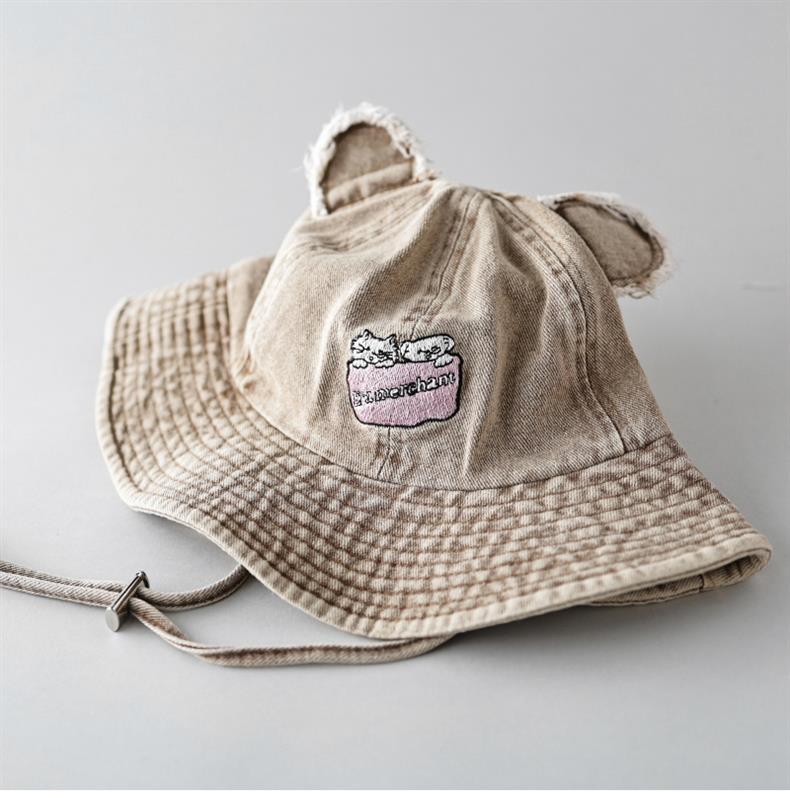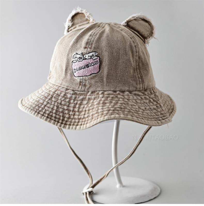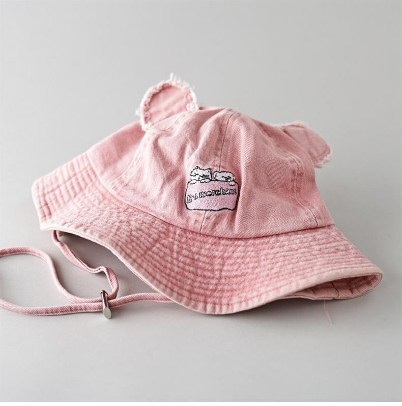 Denim bear ear bucket hat khaki, Denim bear ear bucket hat pink, Denim bear ear bucket hat retro color, Denim ...
