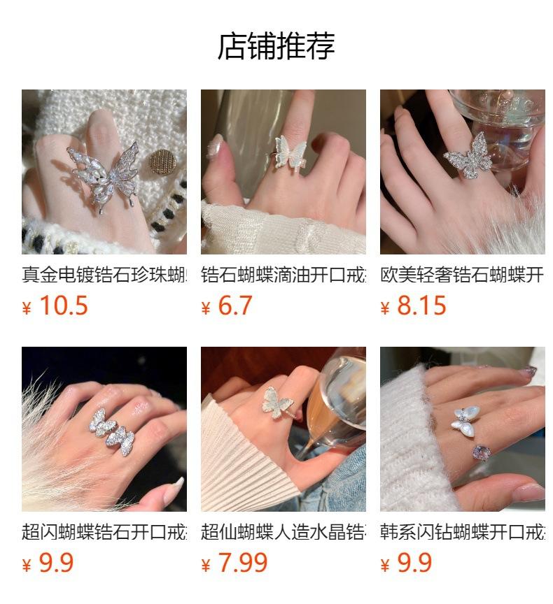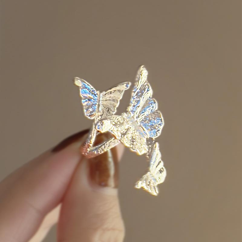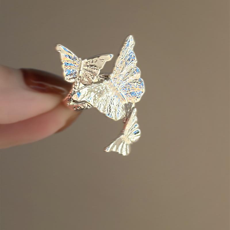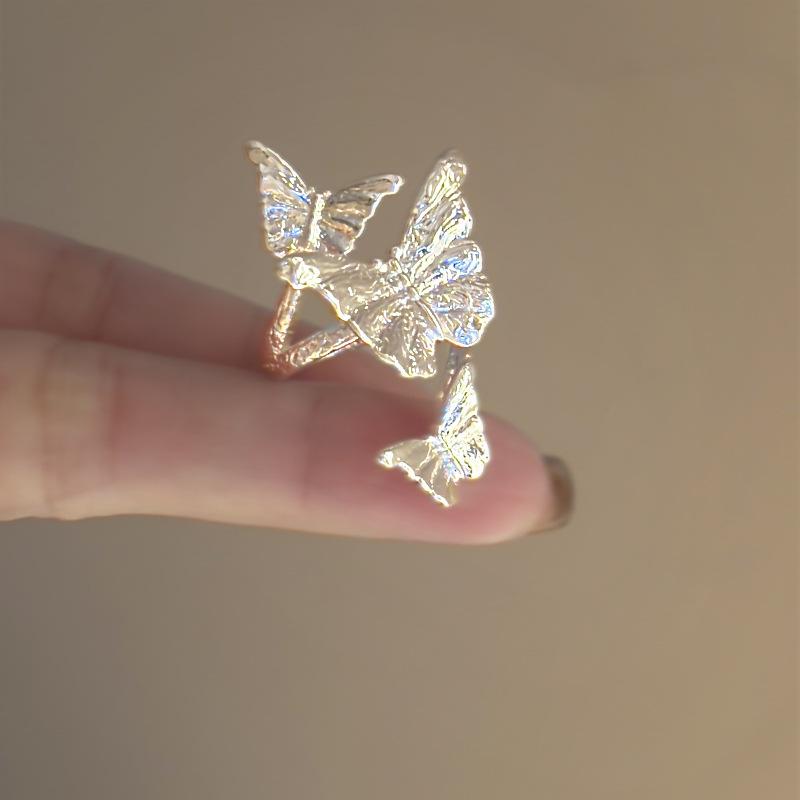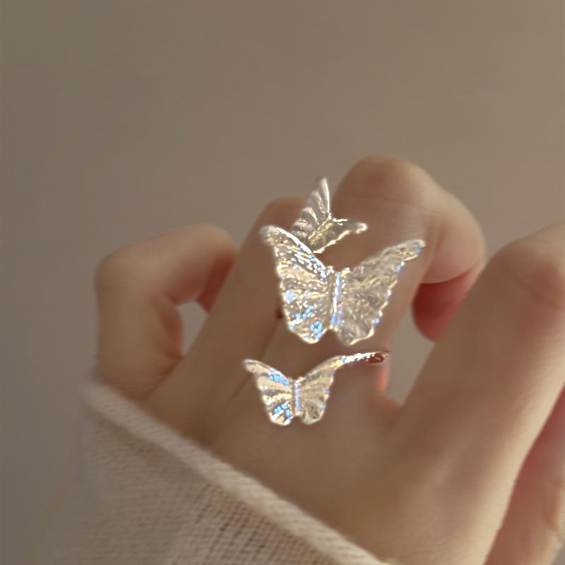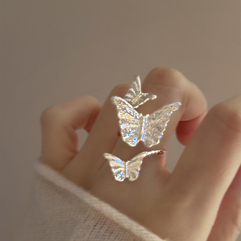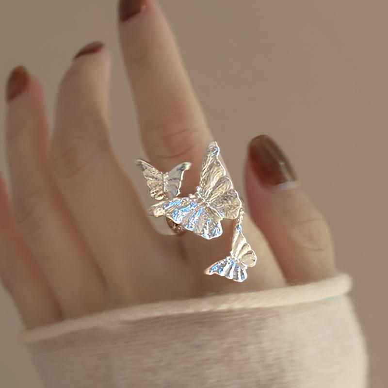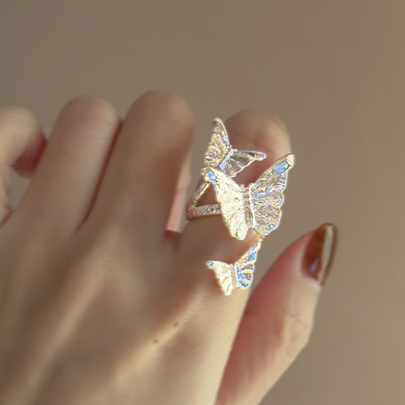 Anillo de plata lisa con forma de mariposa, con apertura envolvente, ligero, de lujo, de alta sensibilidad, diseño de nicho, joyería elegante de moda al por mayor