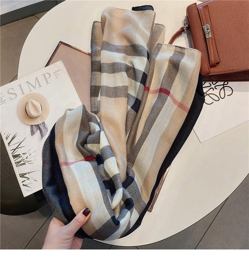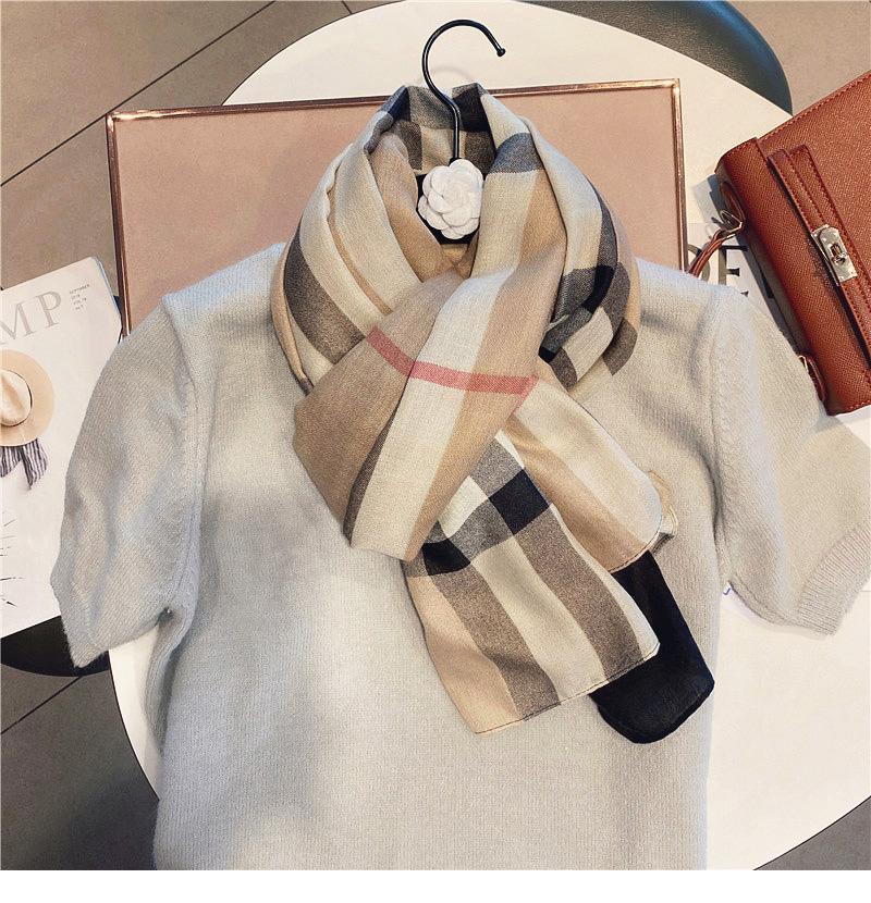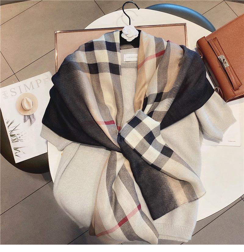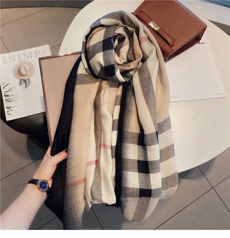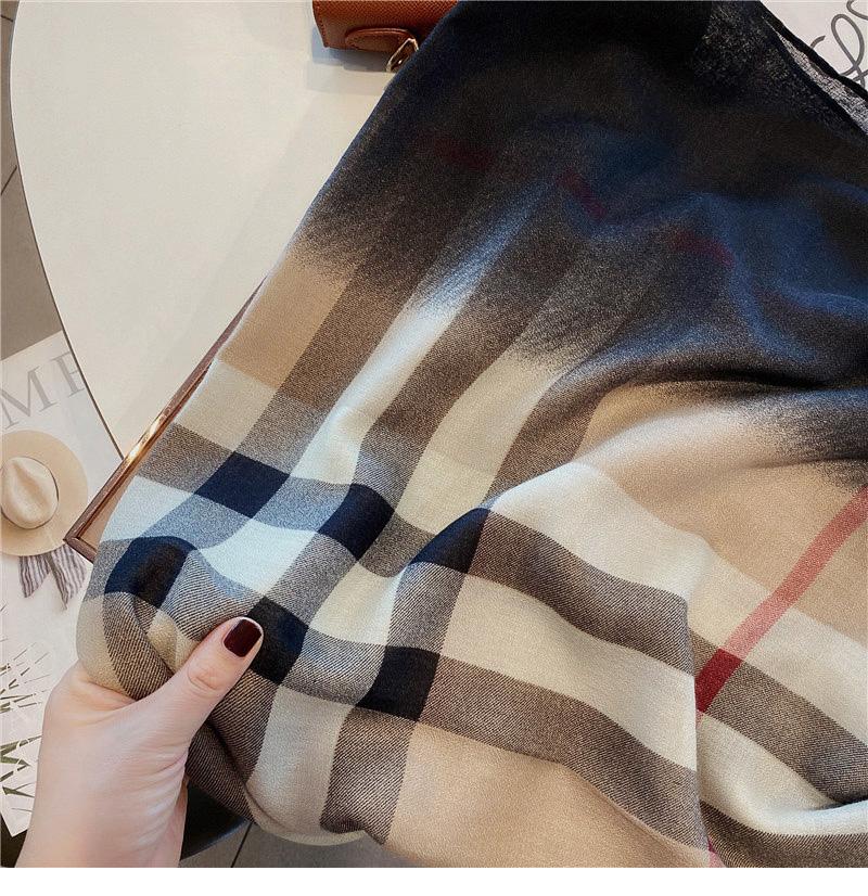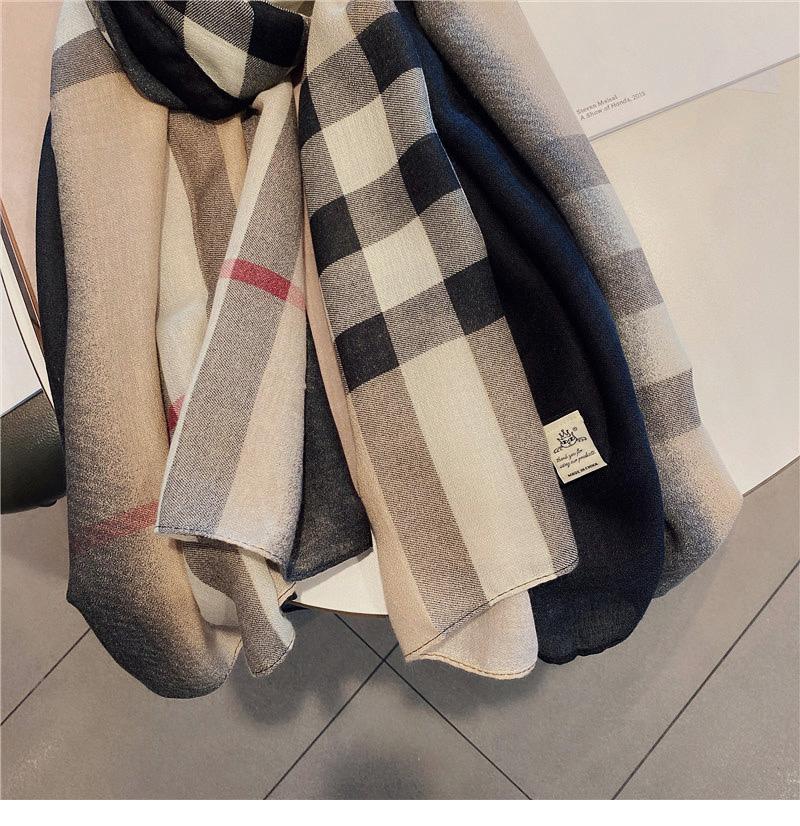Bufanda de algodón y lino con cuadros degradados de estilo coreano para primavera y otoño, chal de aire acondicionado para mujer, toalla de playa de viaje de doble uso, bufanda de seda cálida de invierno