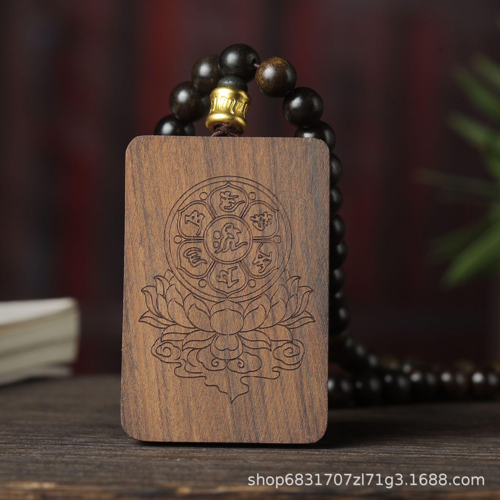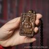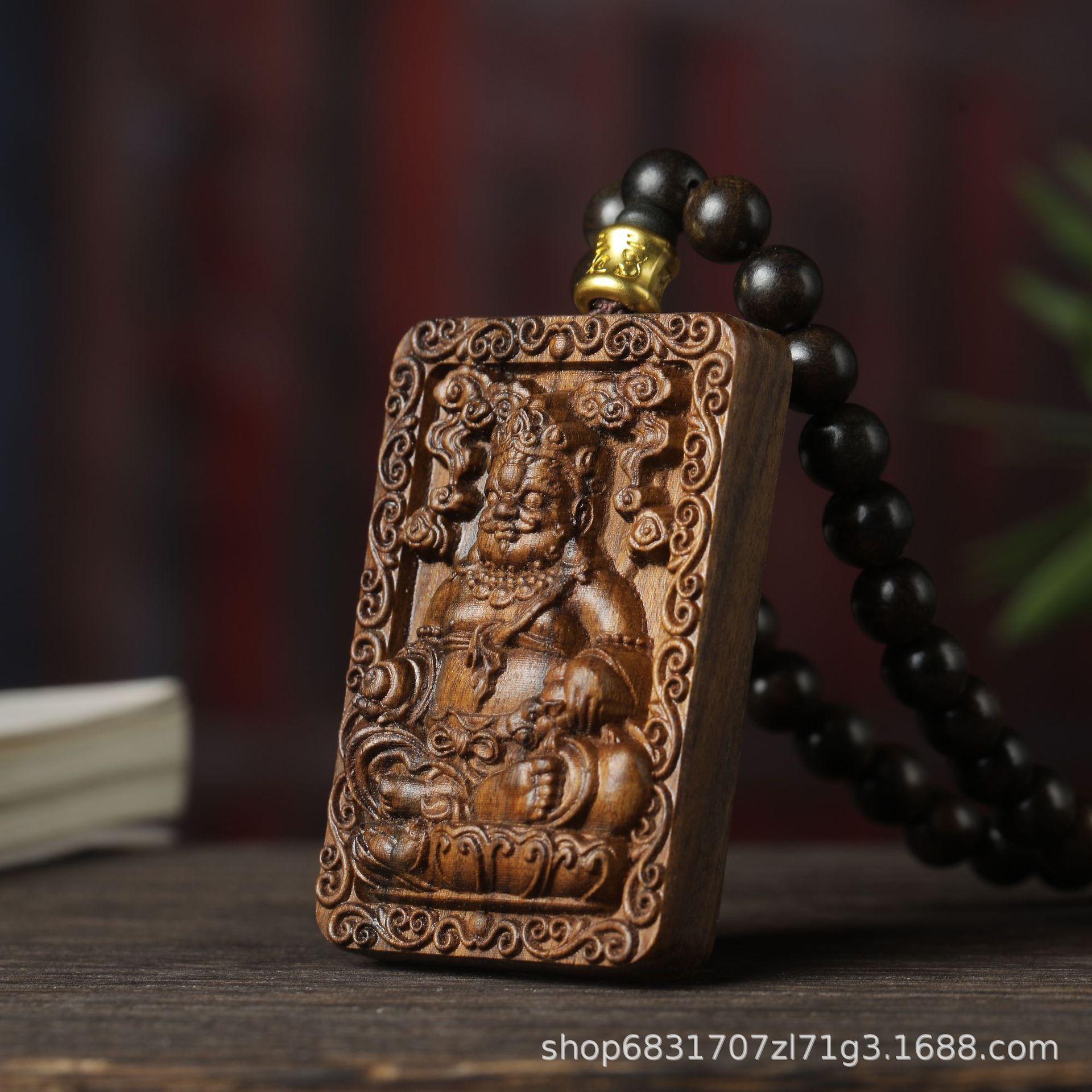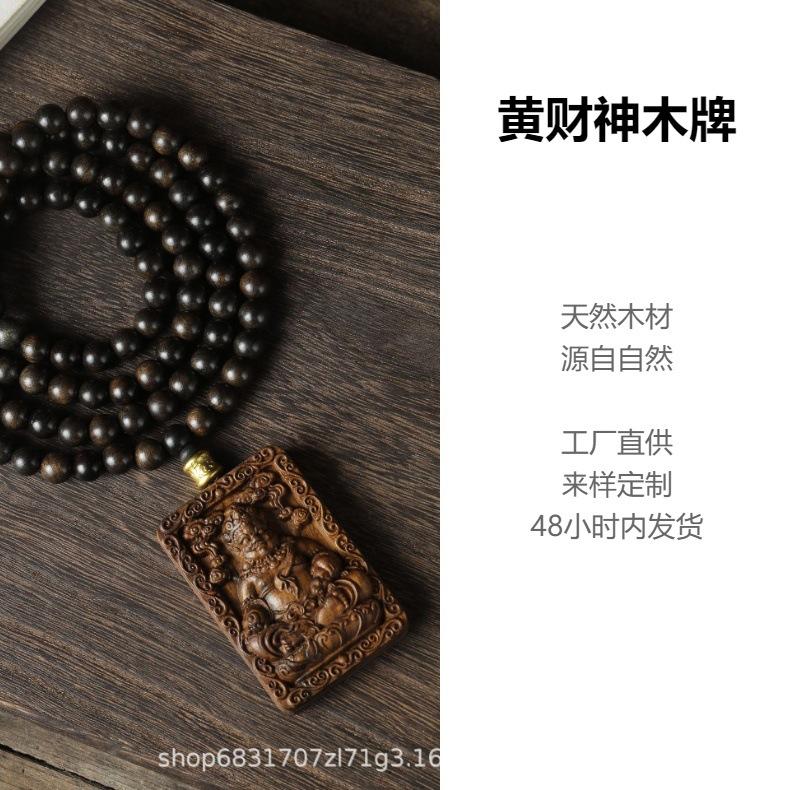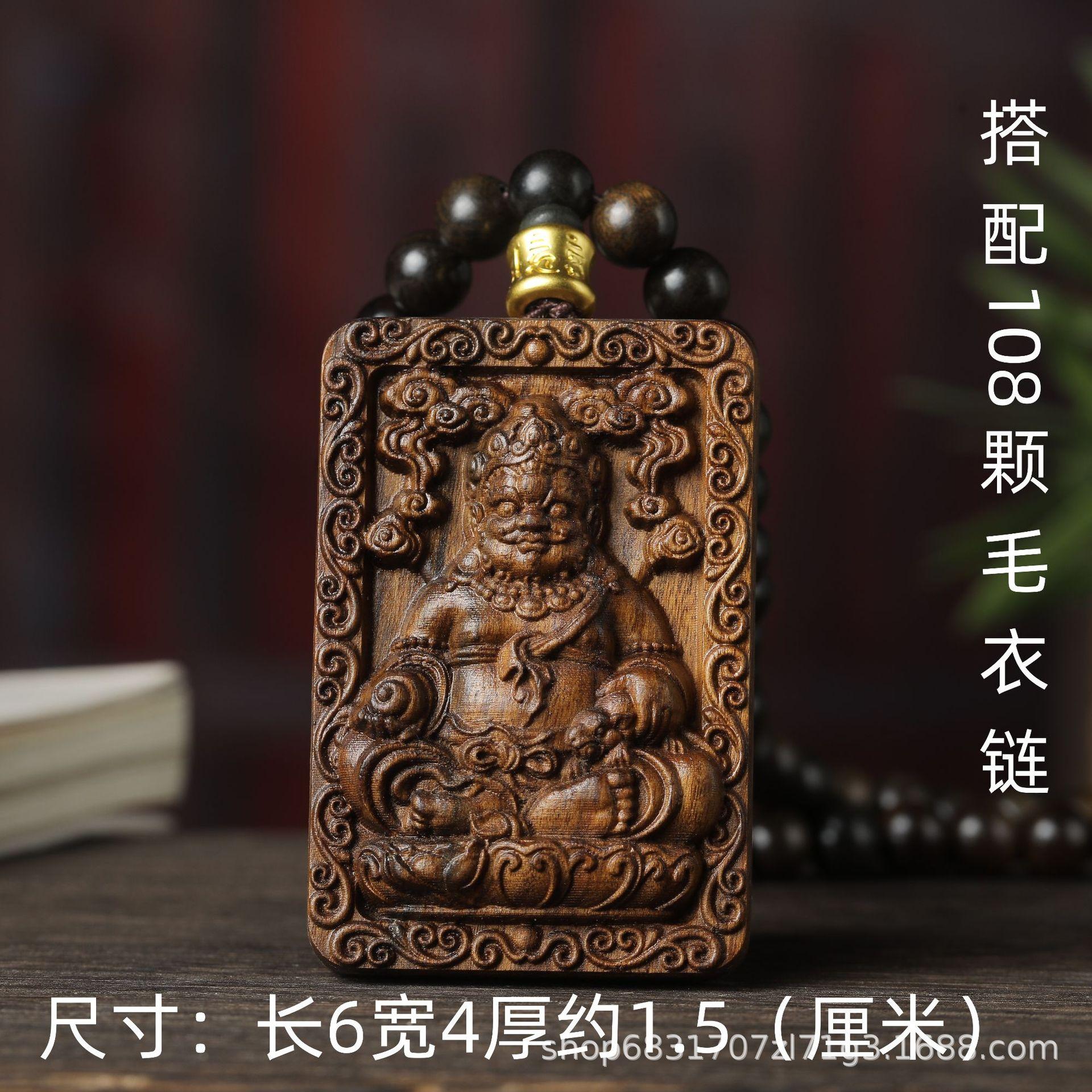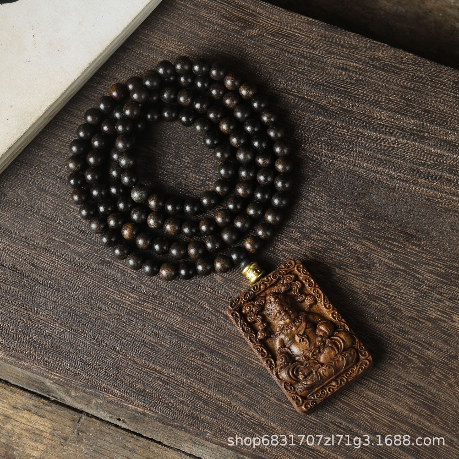 Acuario Madera Tallada Huang Caishen 46 Marca con 108 Cuentas de Rosario de 6mm Pulsera de Círculos Múltiples Colgante de Madera Collar de Ceremonia Acompañante