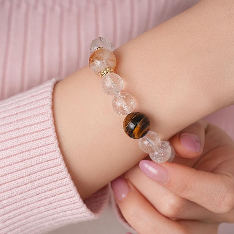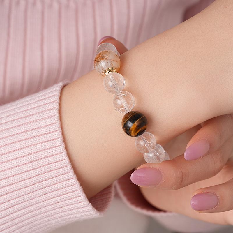Pulsera de Cristal Amarillo Torre Zircón Piedra Ojo de Tigre Cristal Blanco Pulsera Lujo Ligero Alta Gama Pulsera Moda Estilo Chino Nuevo Mujer Venta al por Mayor