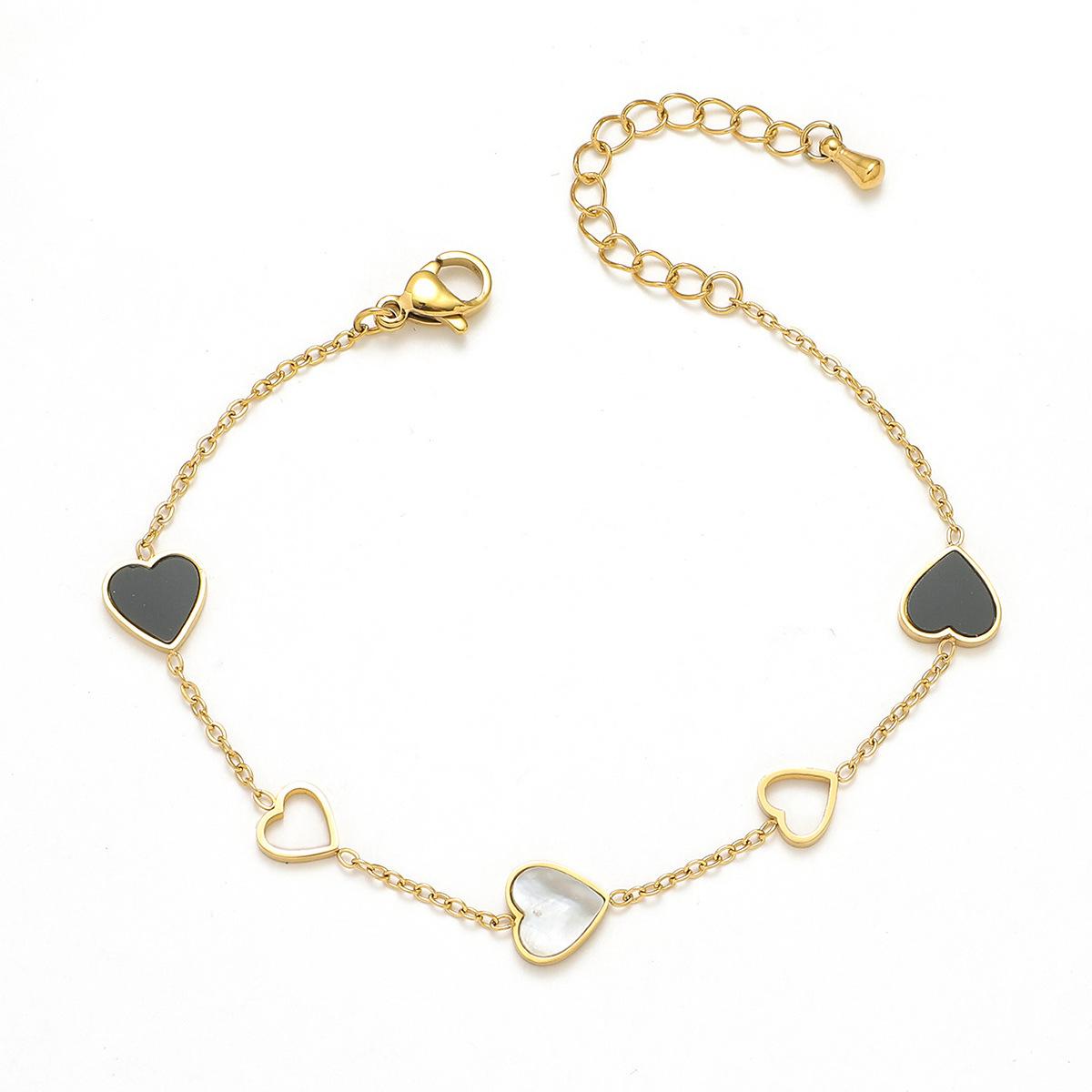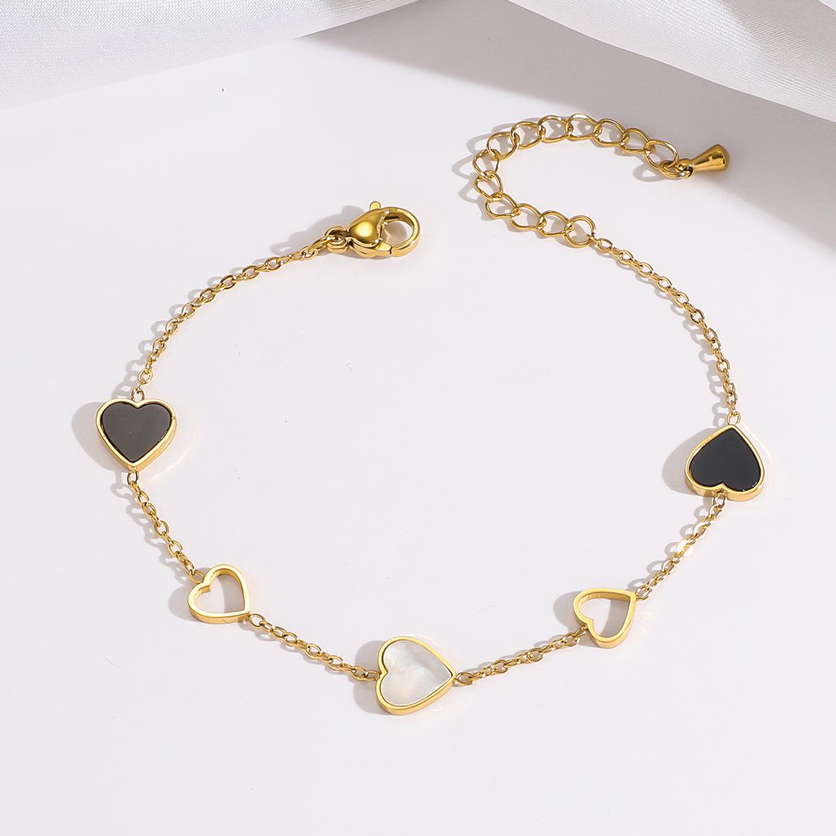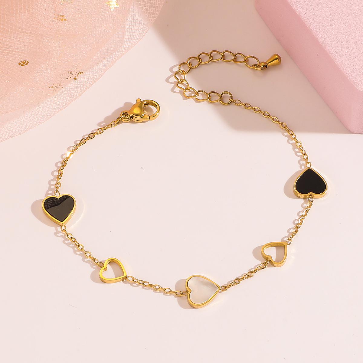 Pulsera Mujer Nueva Amor Blanco y Negro Simple Pulsera de Acero Titanio Moda Pulsera Forma de Corazón Hueco Elegante Pulsera de Acero Inoxidable