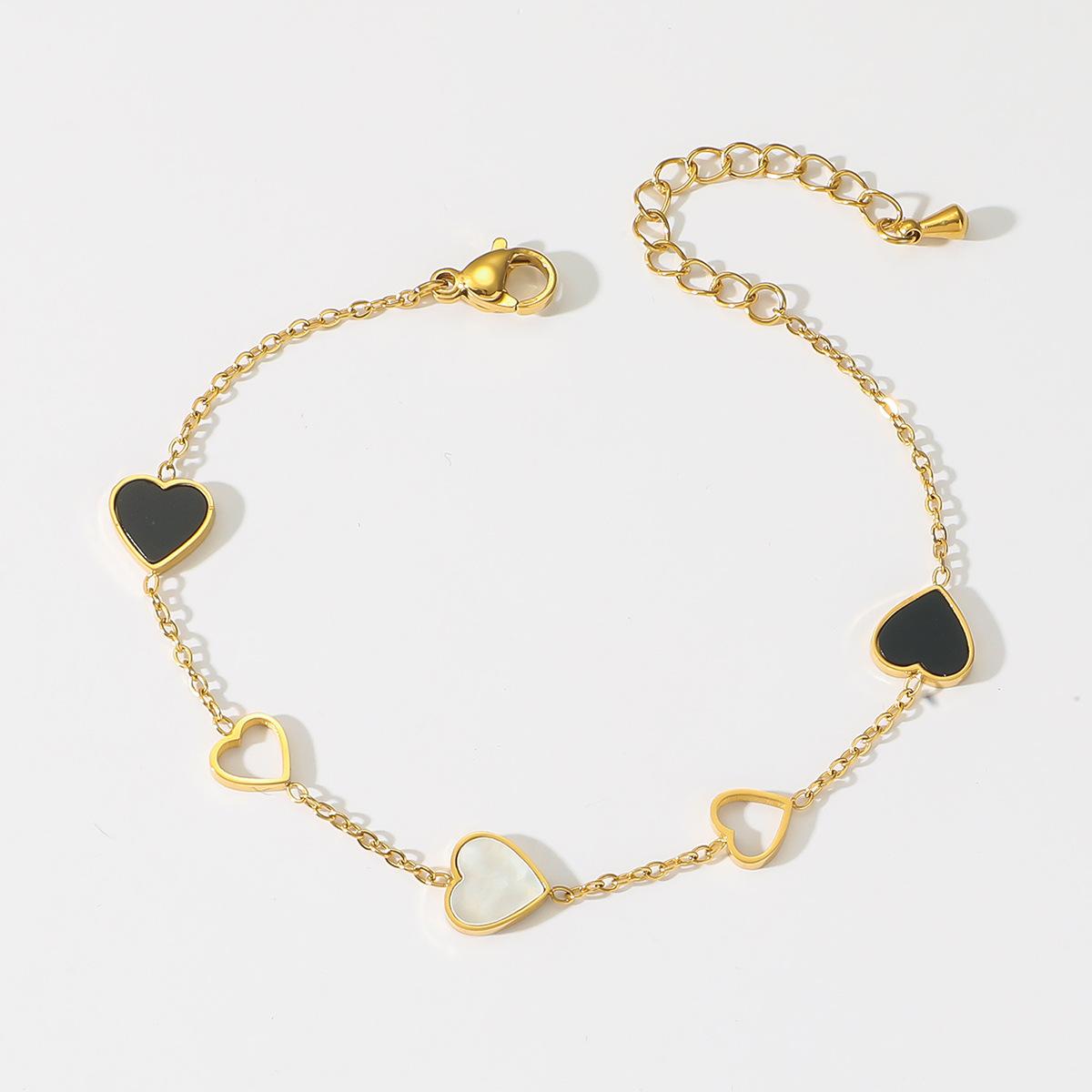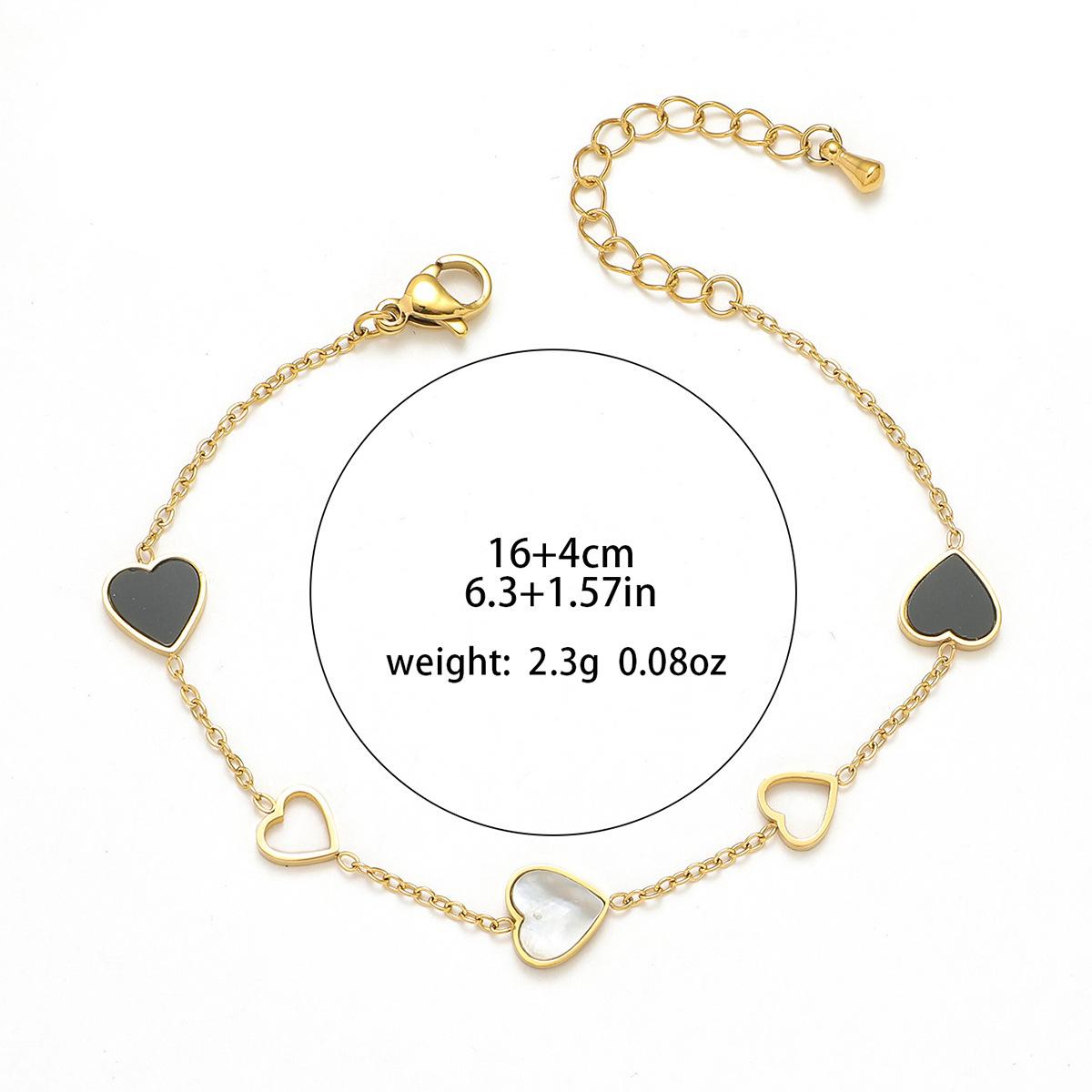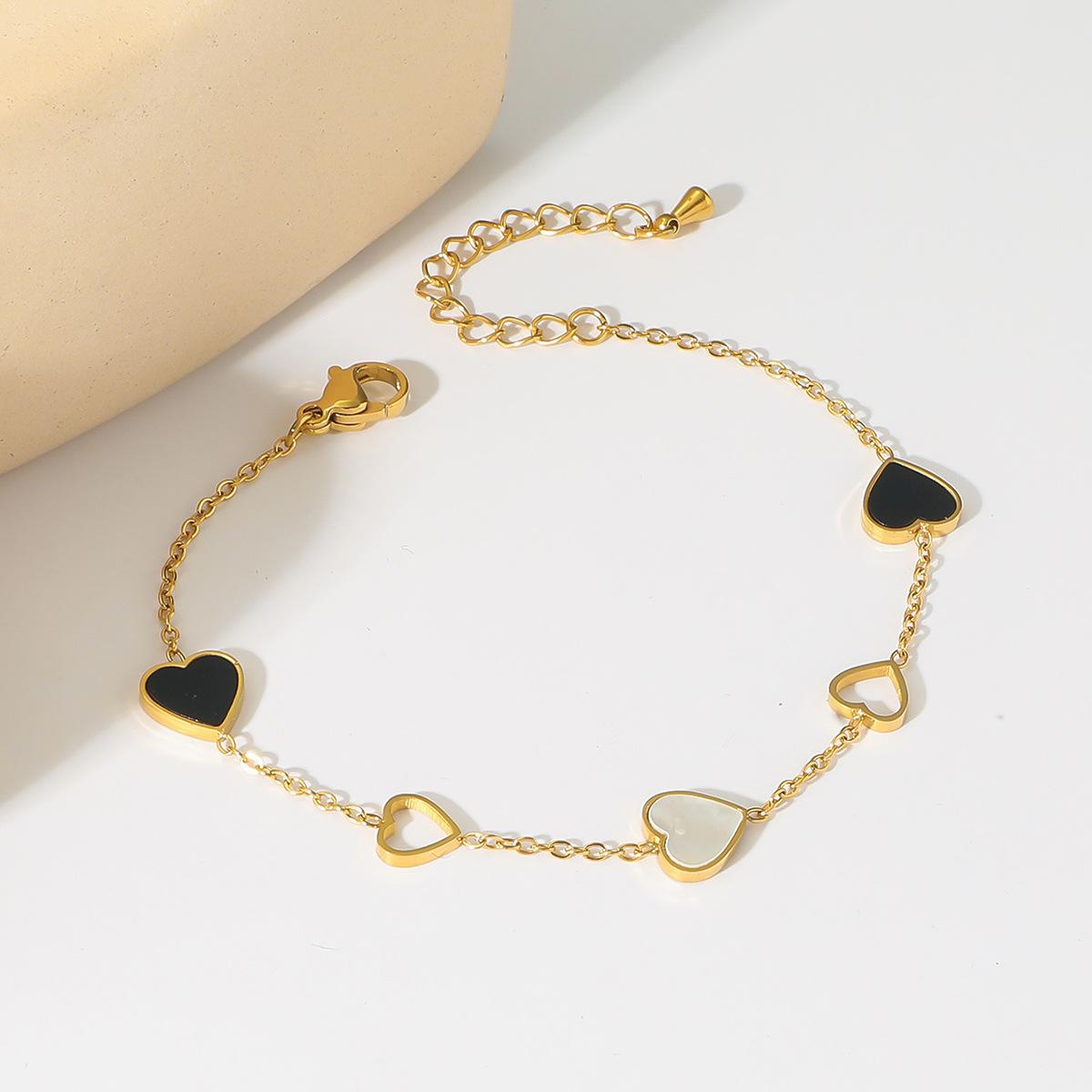 Pulsera Mujer Nueva Amor Blanco y Negro Simple Pulsera de Acero Titanio Moda Pulsera Forma de Corazón Hueco Elegante Pulsera de Acero Inoxidable