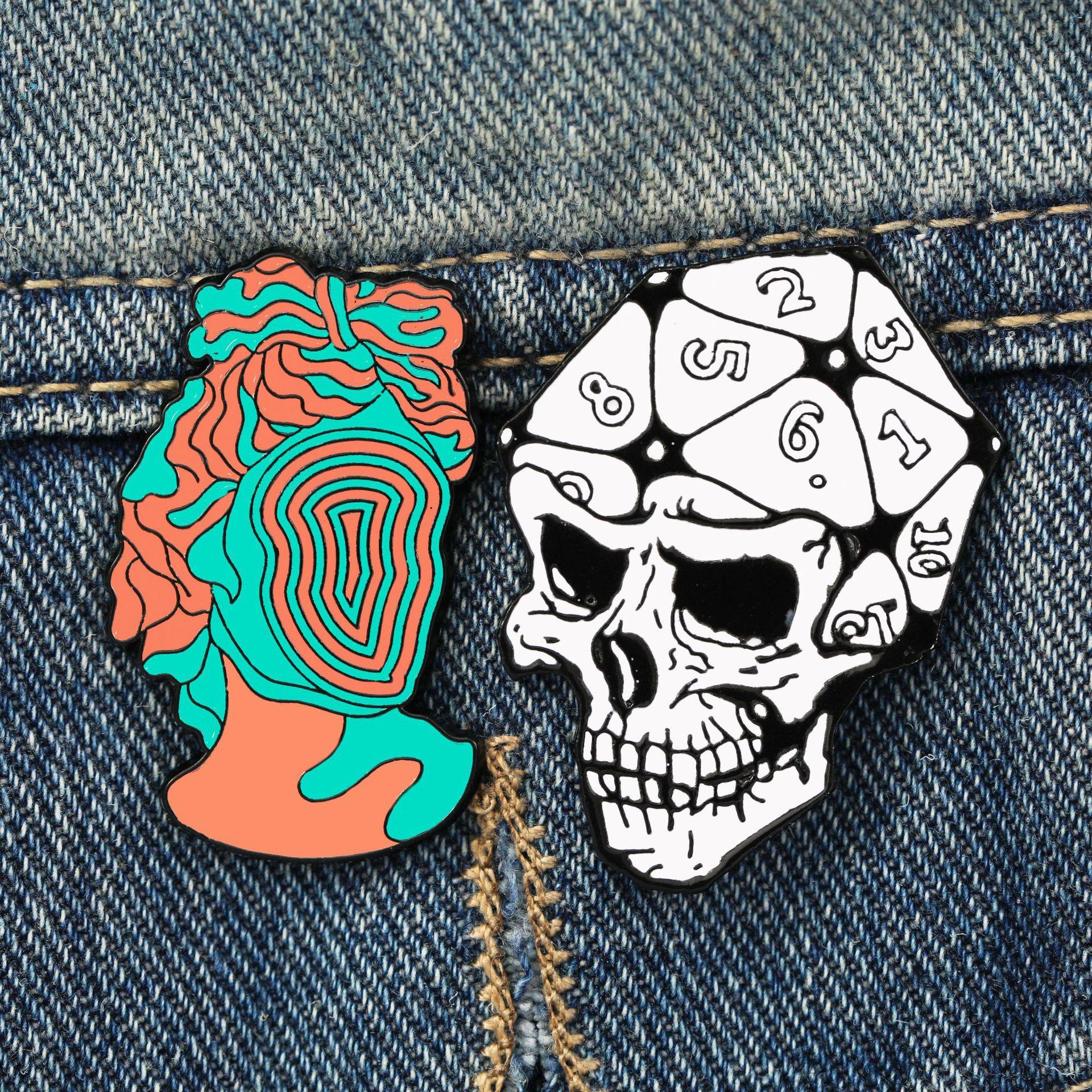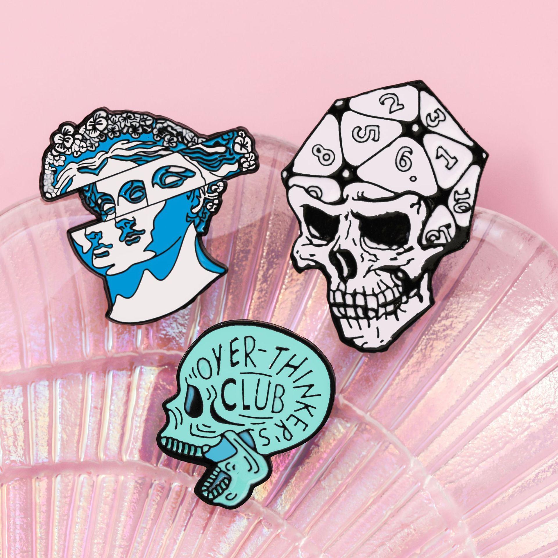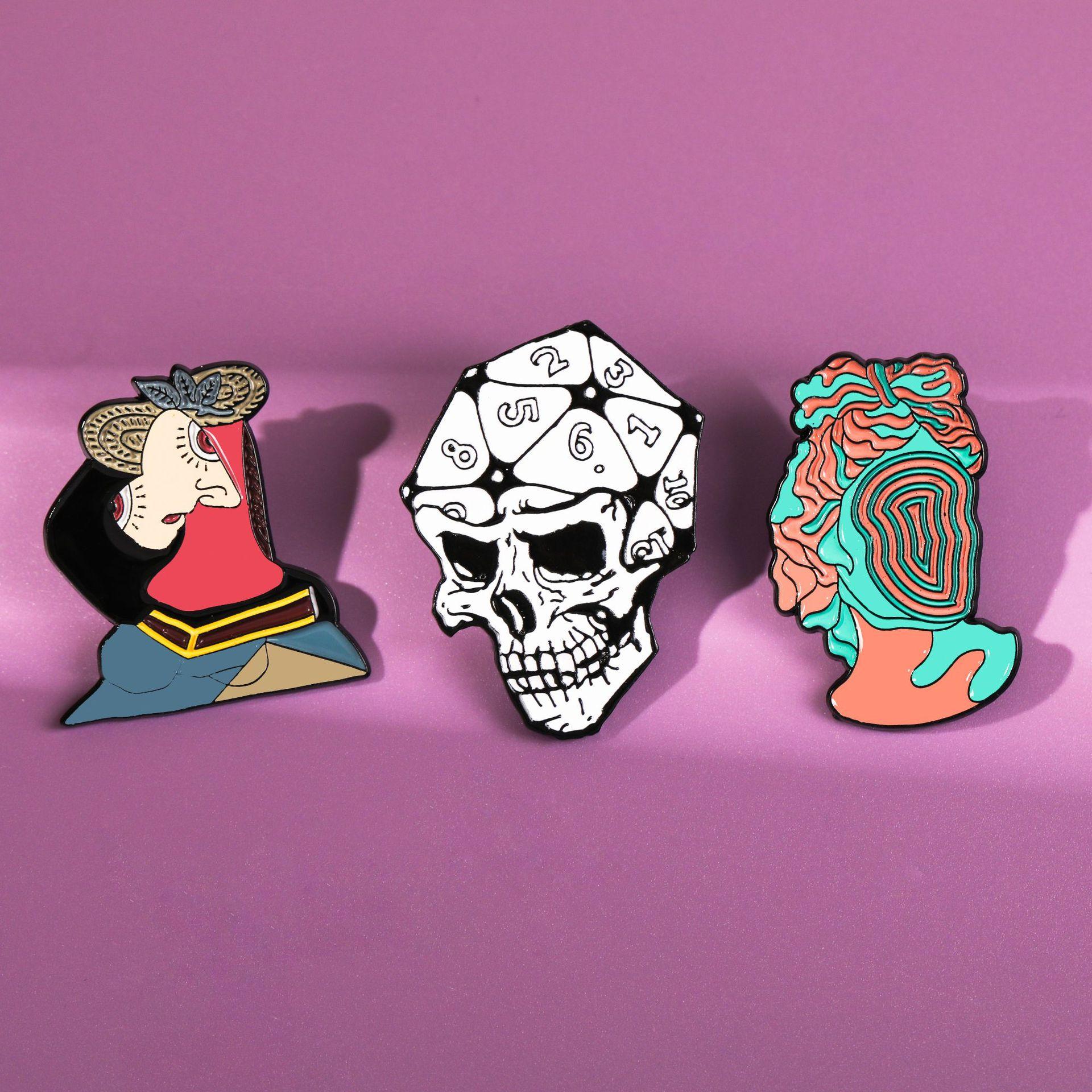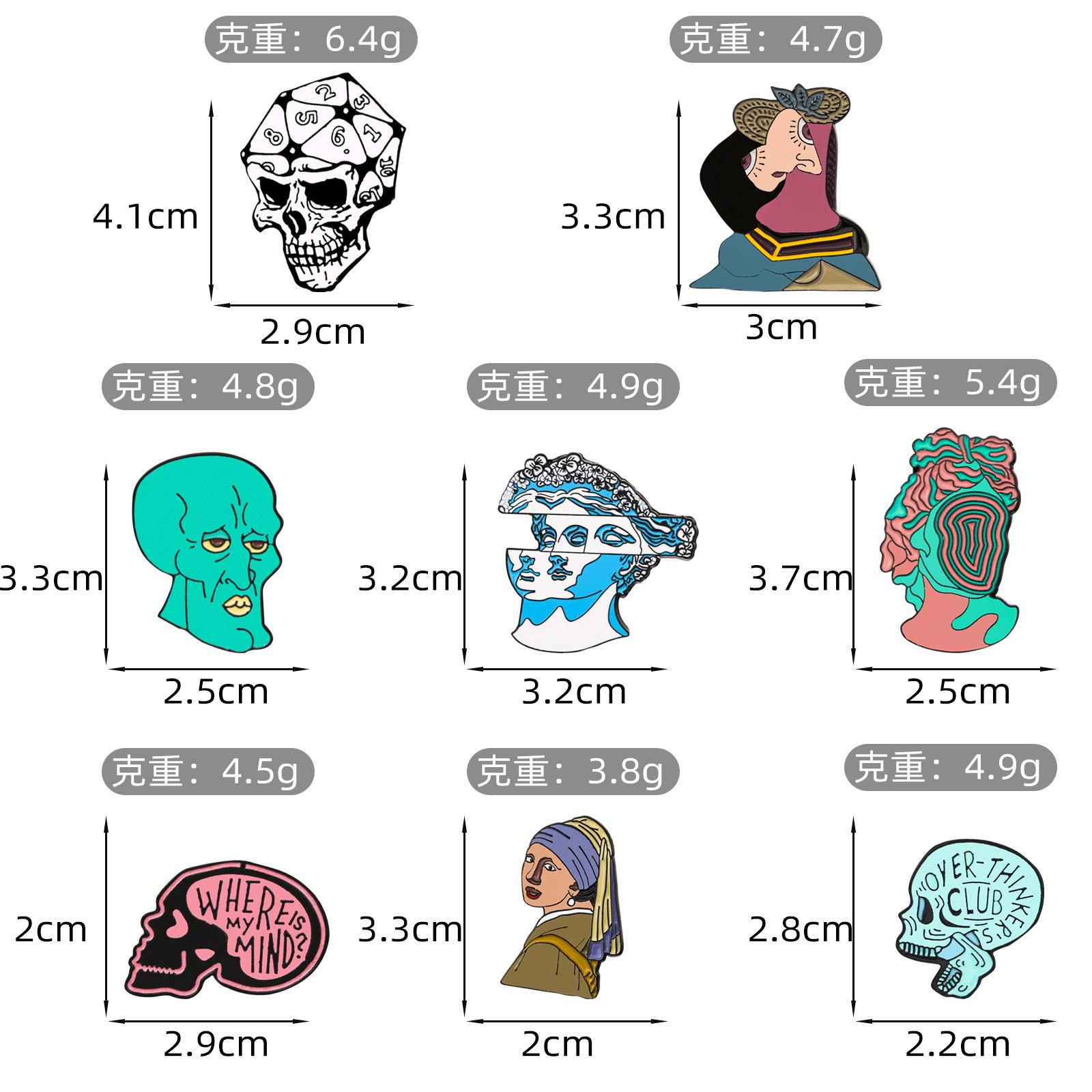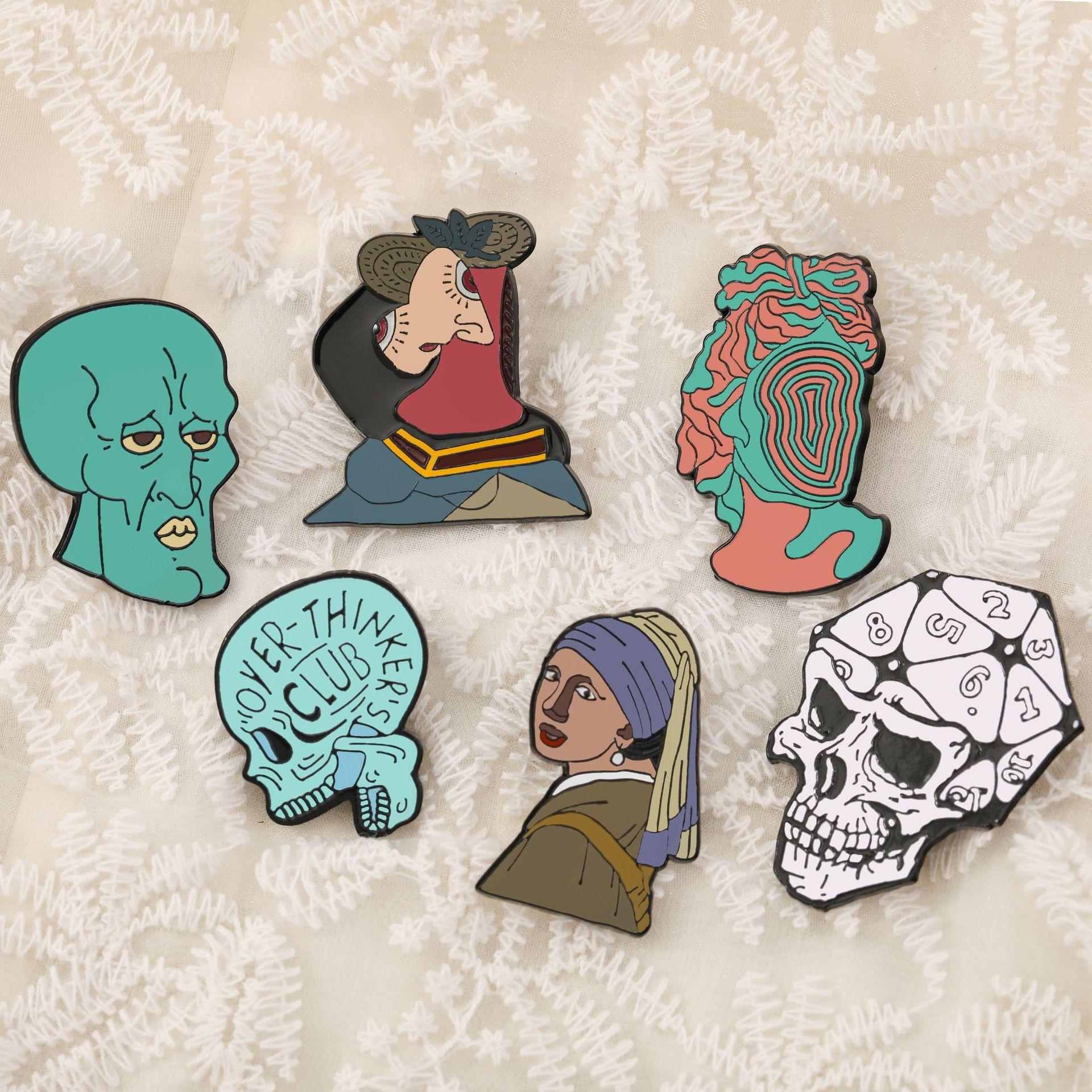 Broche Metálico de Calavera de Arte Abstracto para Estudiantes, Decoración Versátil y Fija de Insignia Metálica para Comercio Exterior