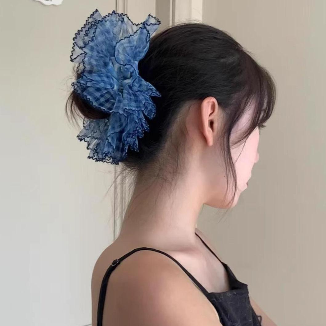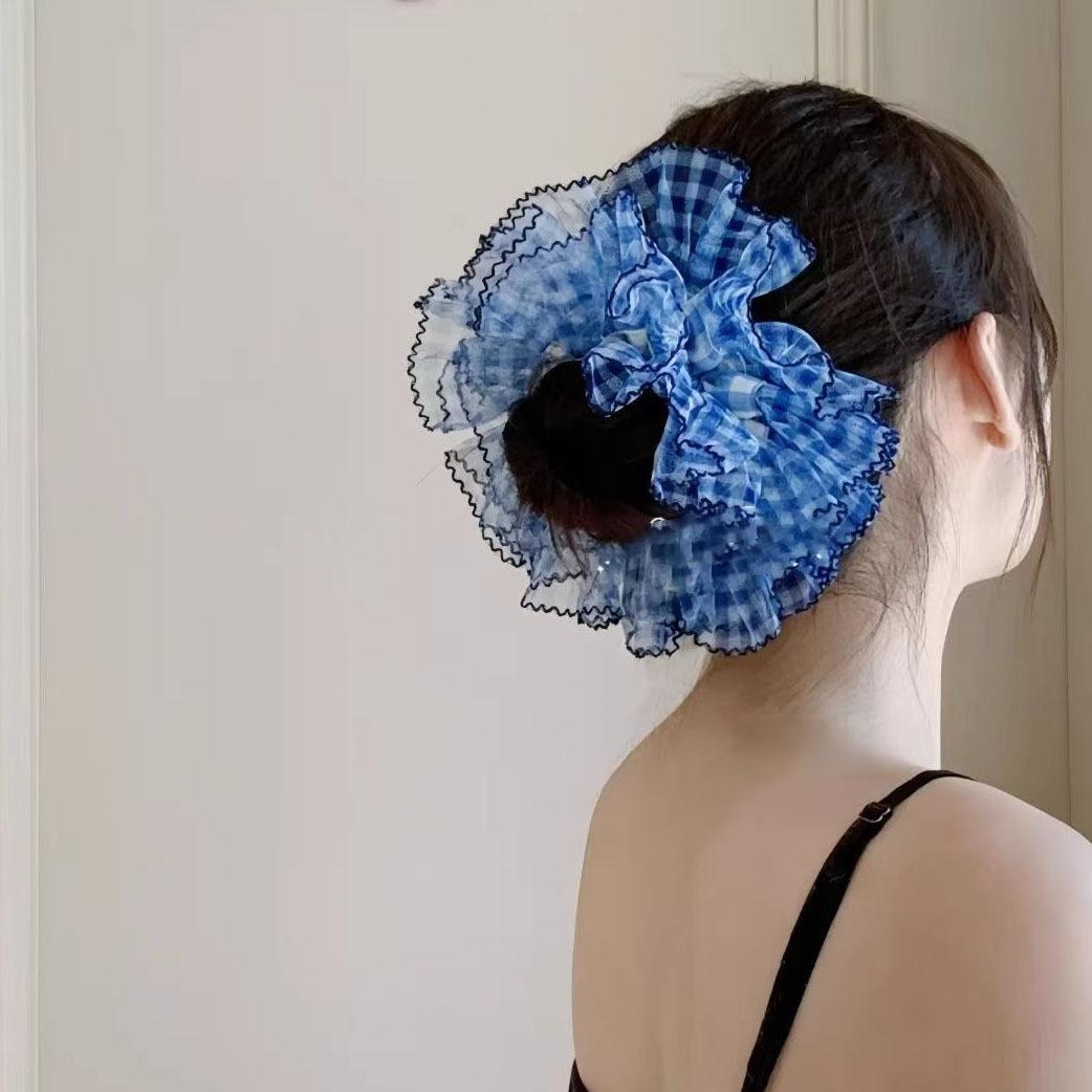 Mesh blue plaid hair tie