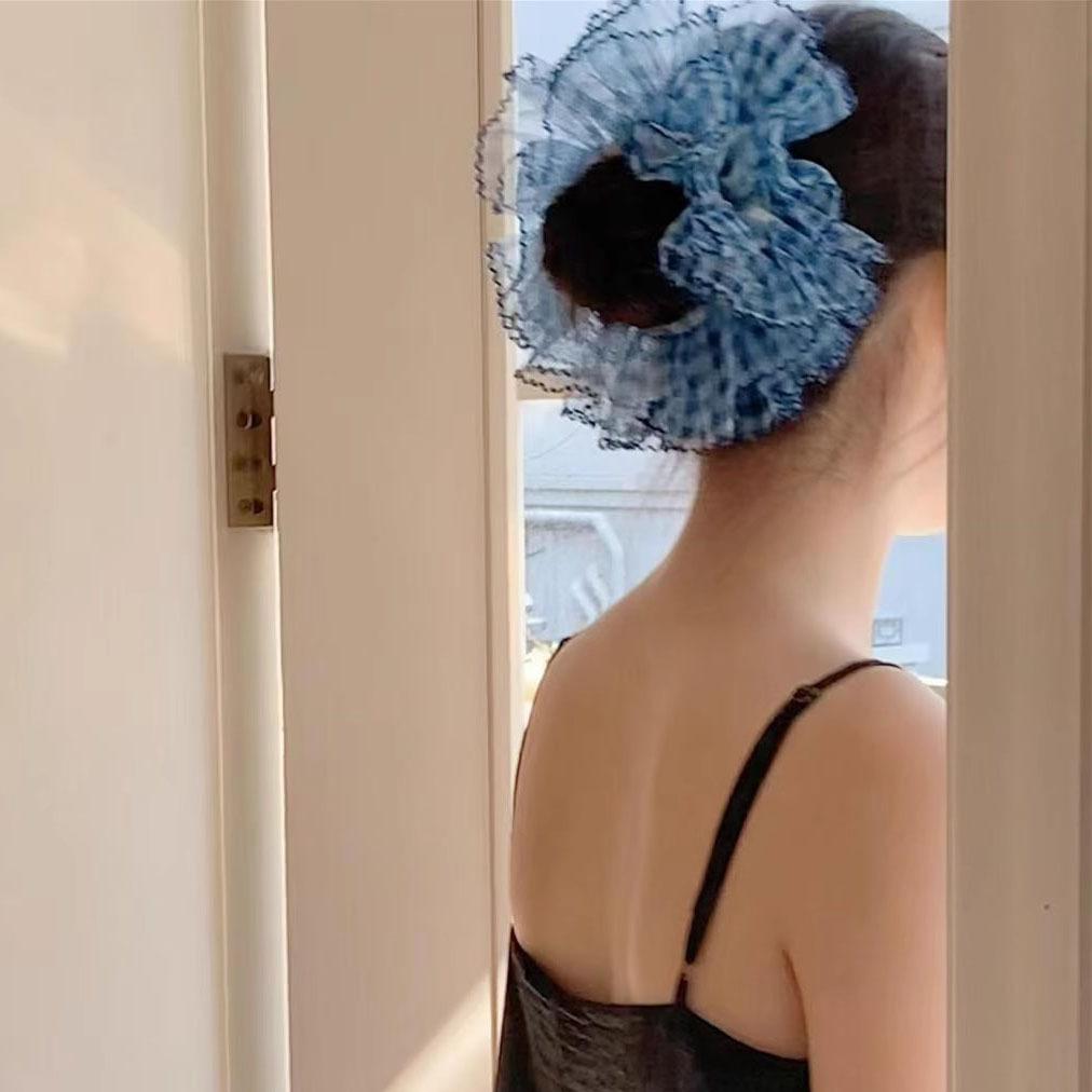Brus Langer Francés Principio de Primavera Malla Encaje Anillo para el Cabello Intestino Grueso Accesorios para el Cabello de Alta Gama con Paytail