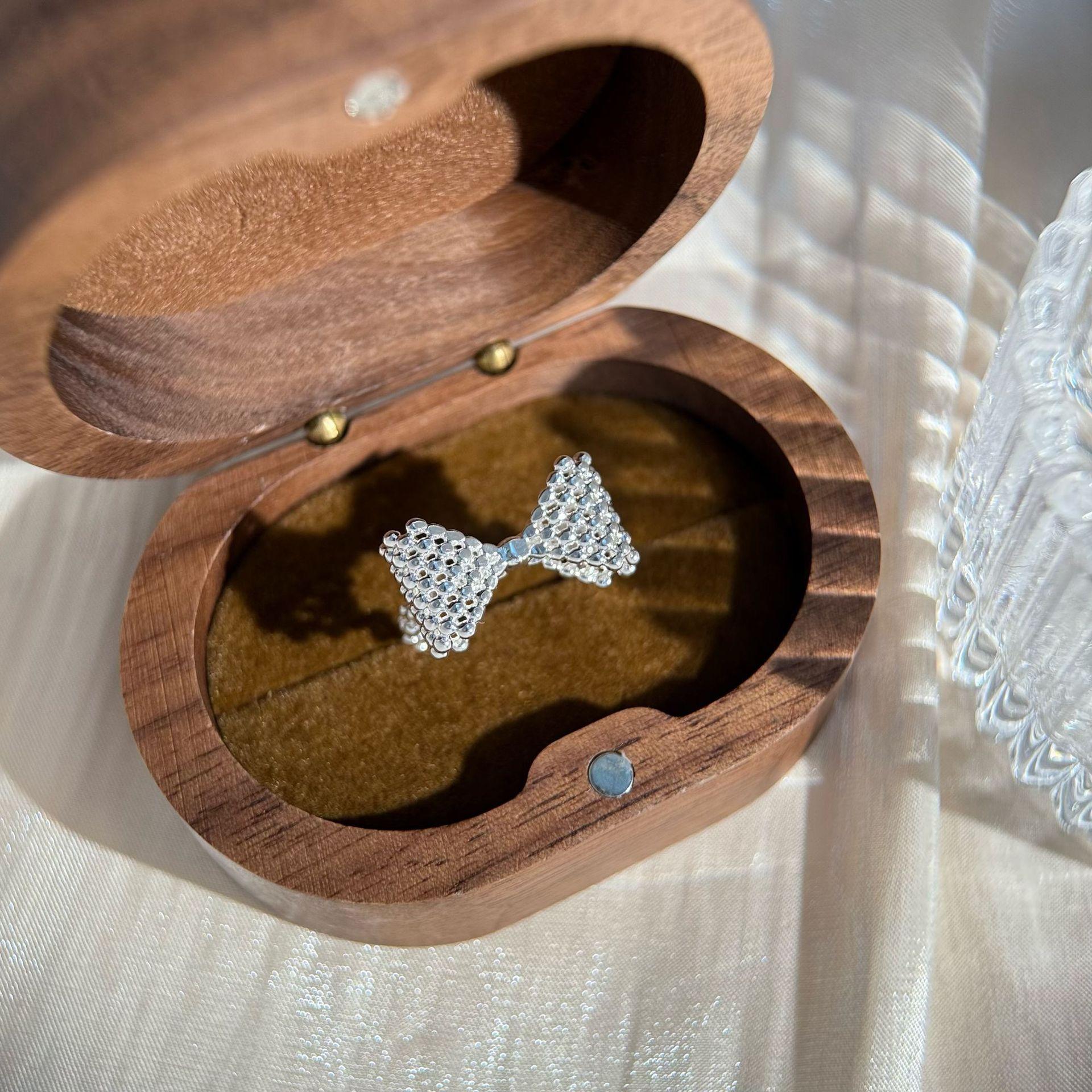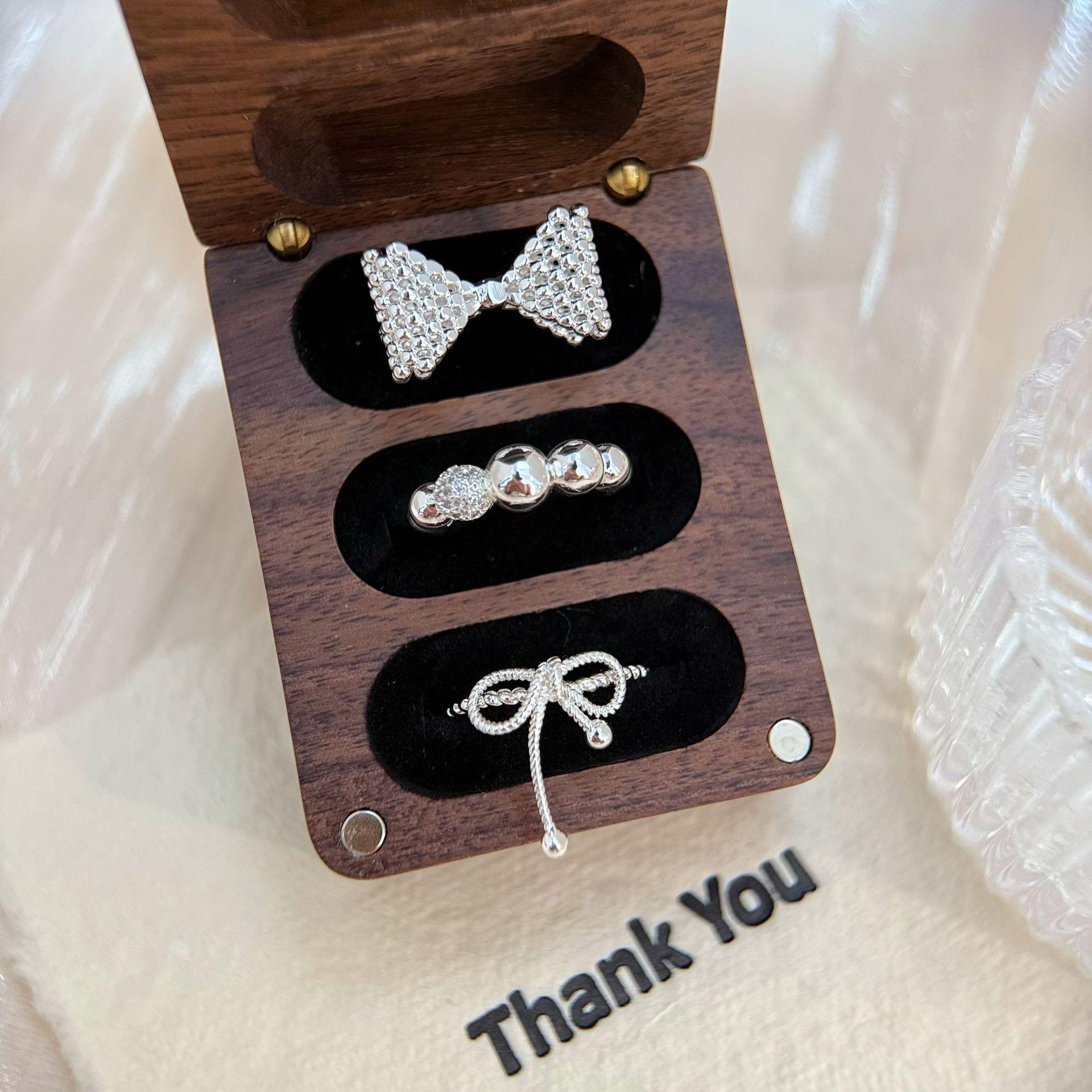 Anillo Elegante de Lazo con Micro-incrustaciones para Mujer, Moda de Alta Gama, Chapado en Plata 925, Anillo Dividido, Anillo de Dedo con Pequeñas Cuentas Ins