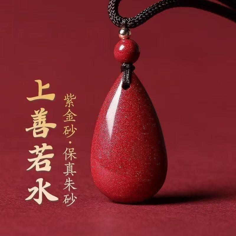 Colgante de cinabrio para hombre y mujer, mineral crudo, oro púrpura, arena, gota de agua, corazón, regalo de cumpleaños.