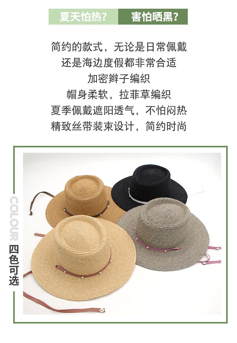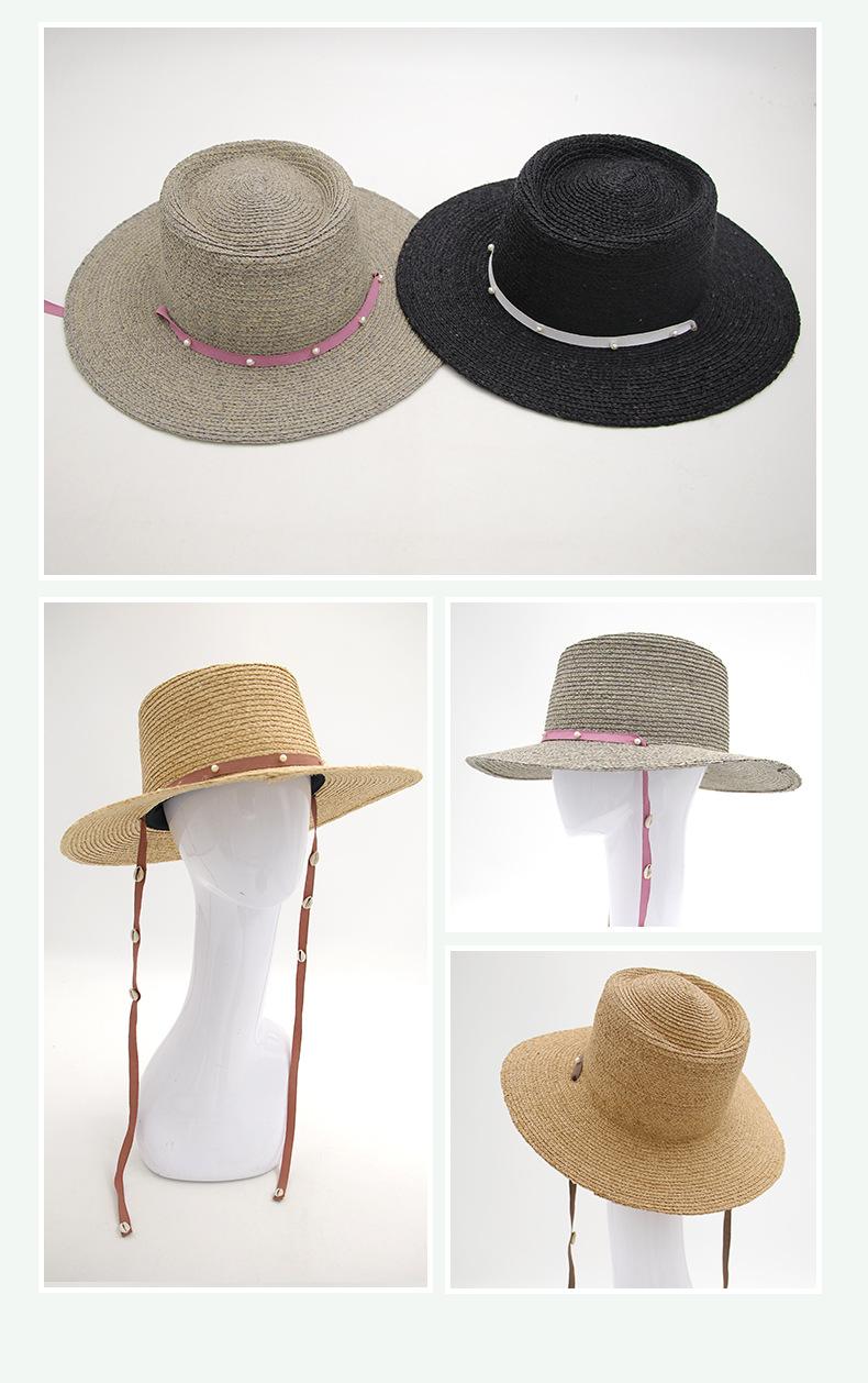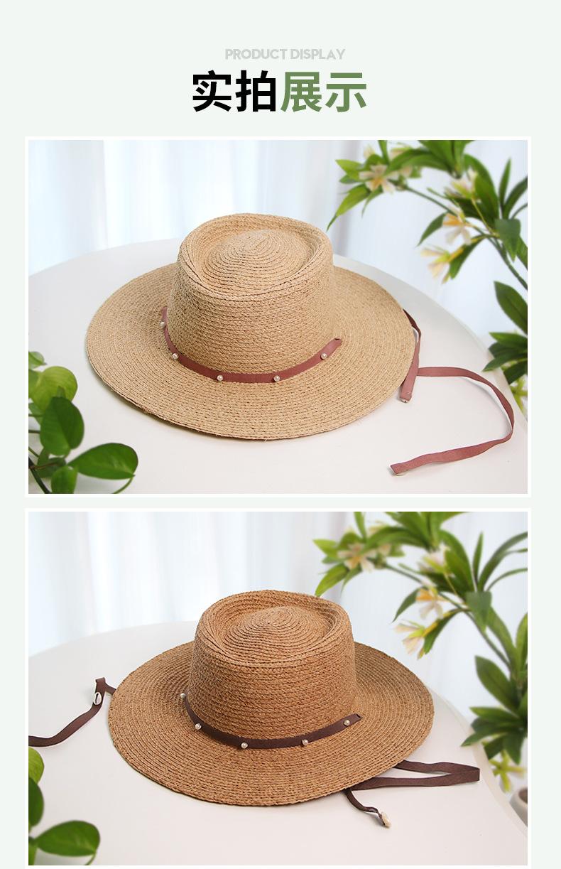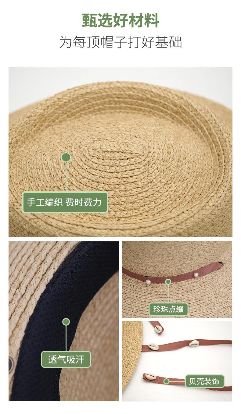Sombrero de Paja de Pescador para Mujer de Primavera Nuevo Rafia Copa Plana Sombrero Protección Solar Venta al por Mayor Playa Ala Ancha Sombrero de Paja