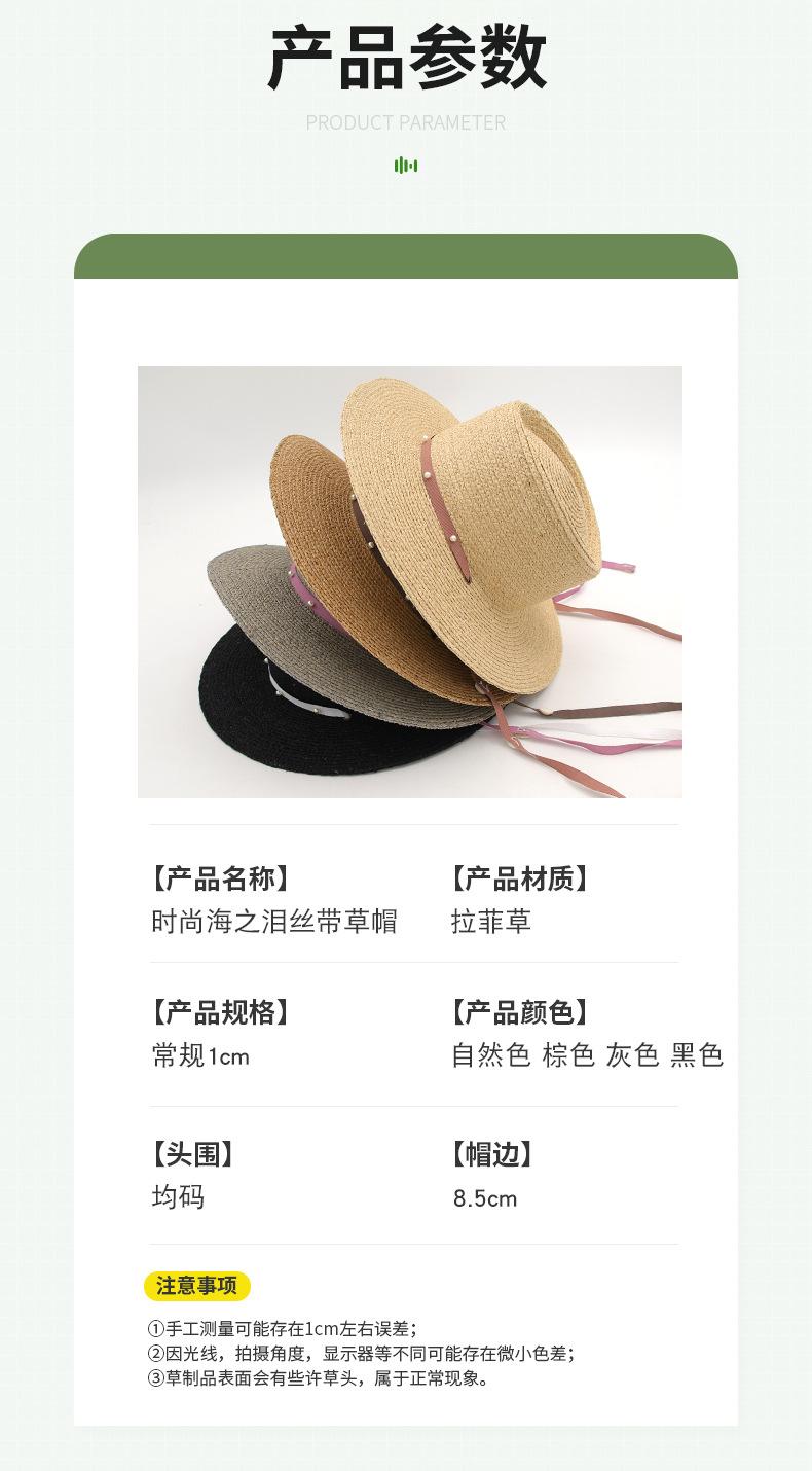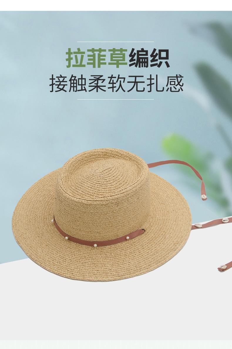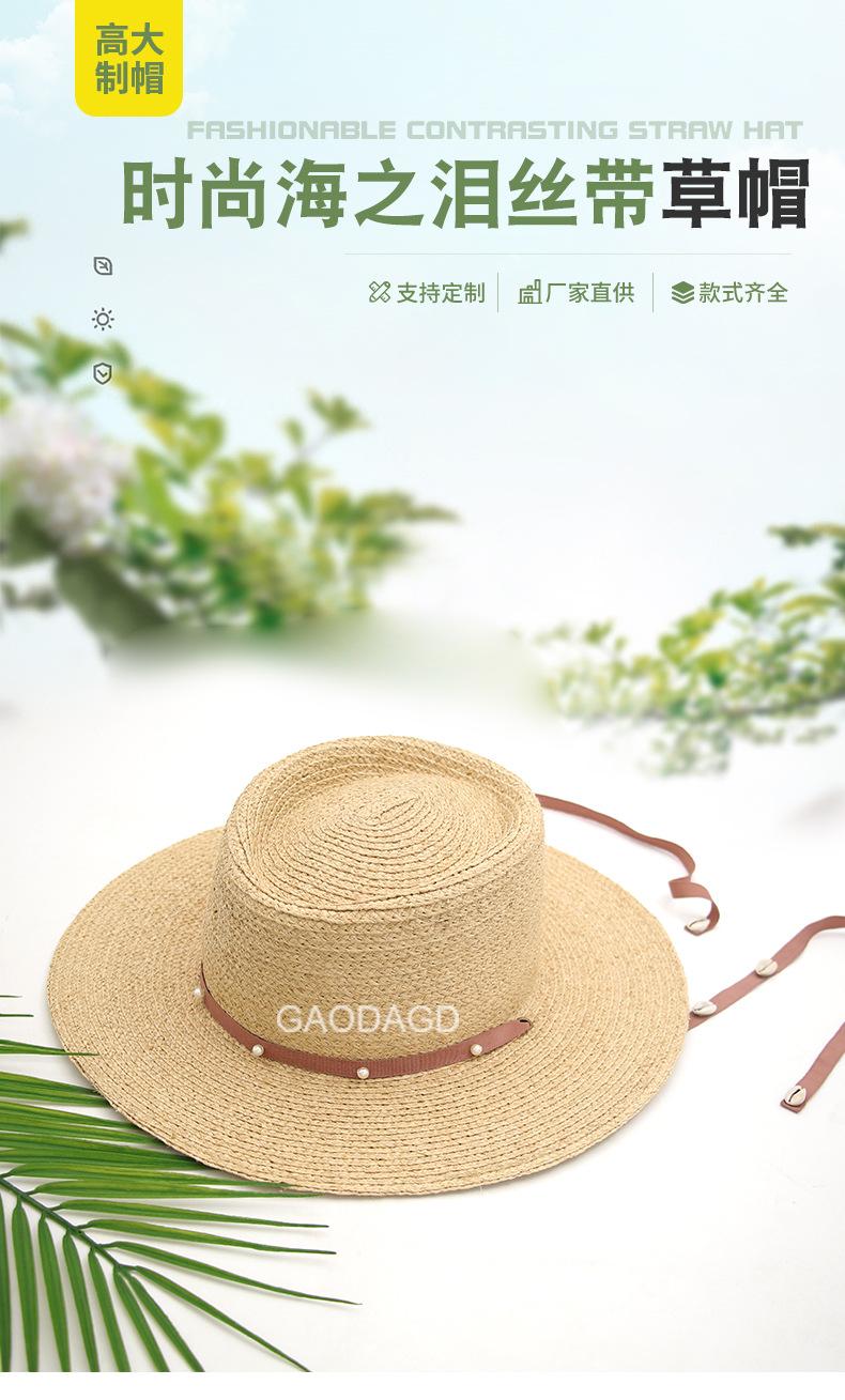 Sombrero de Paja de Pescador para Mujer de Primavera Nuevo Rafia Copa Plana Sombrero Protección Solar Venta al por Mayor Playa Ala Ancha Sombrero de Paja