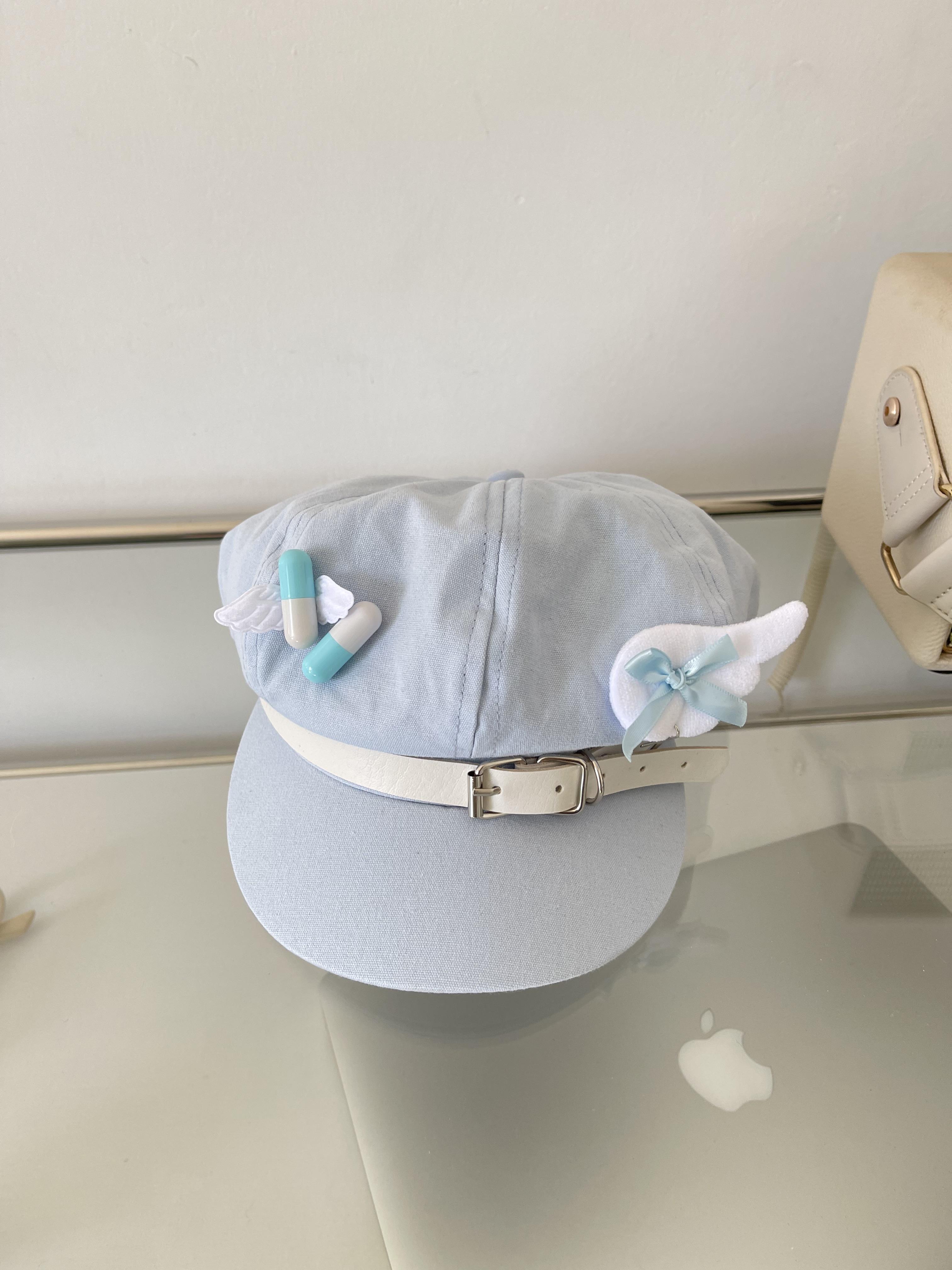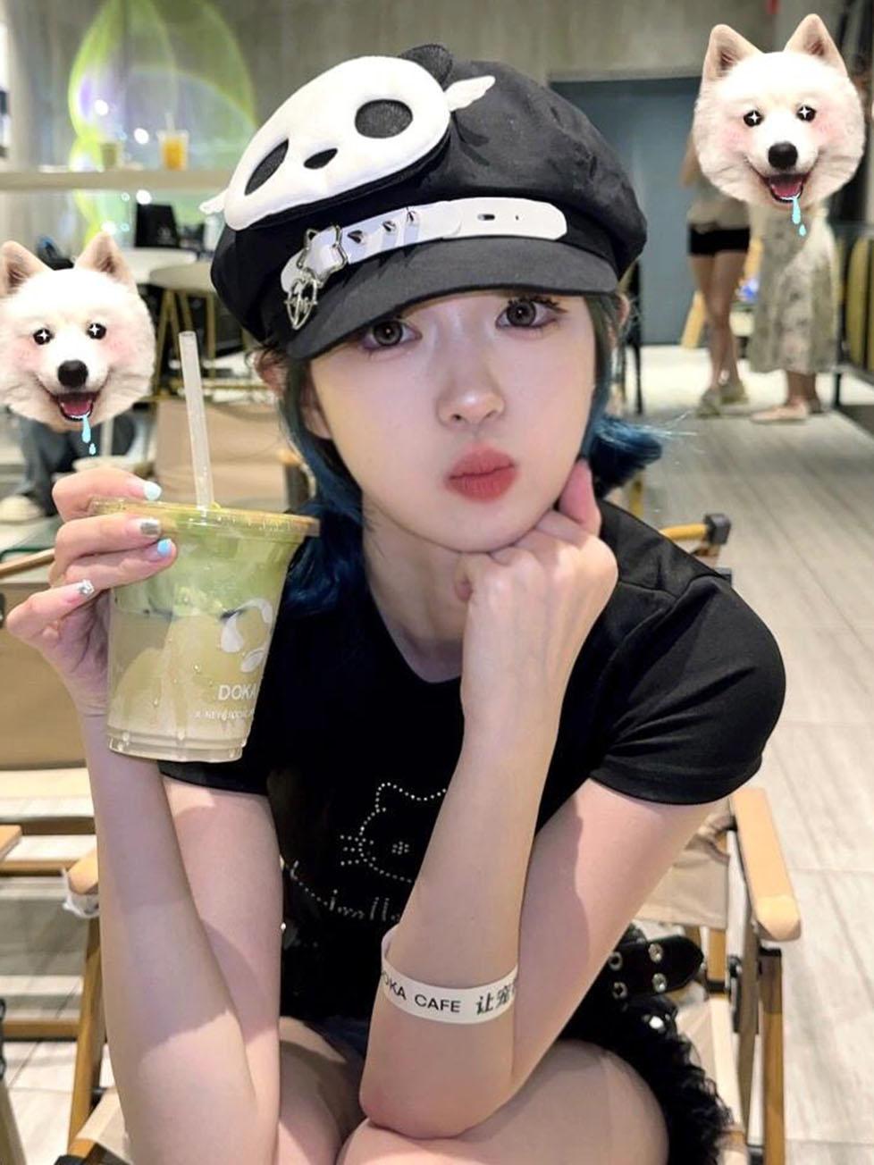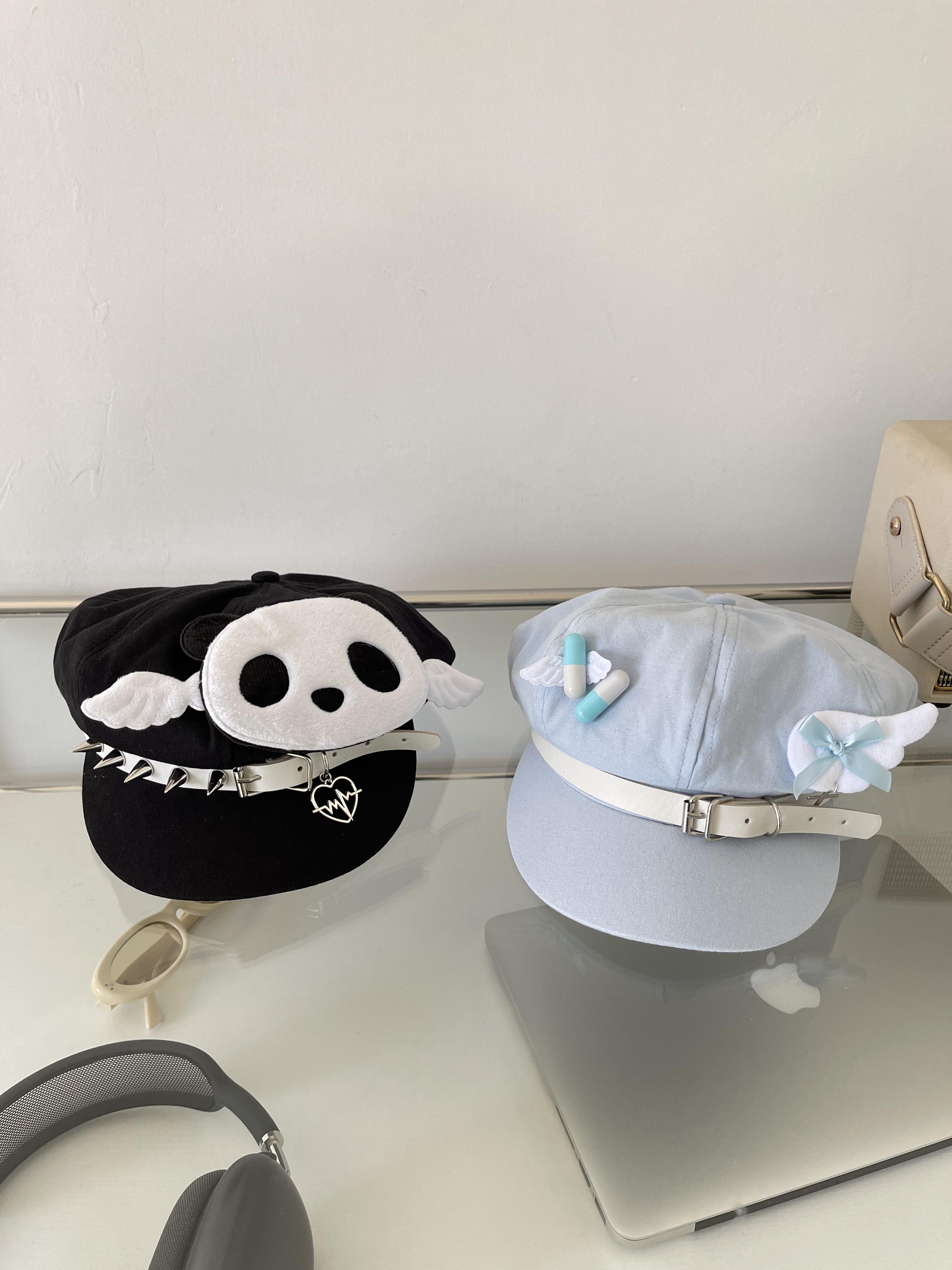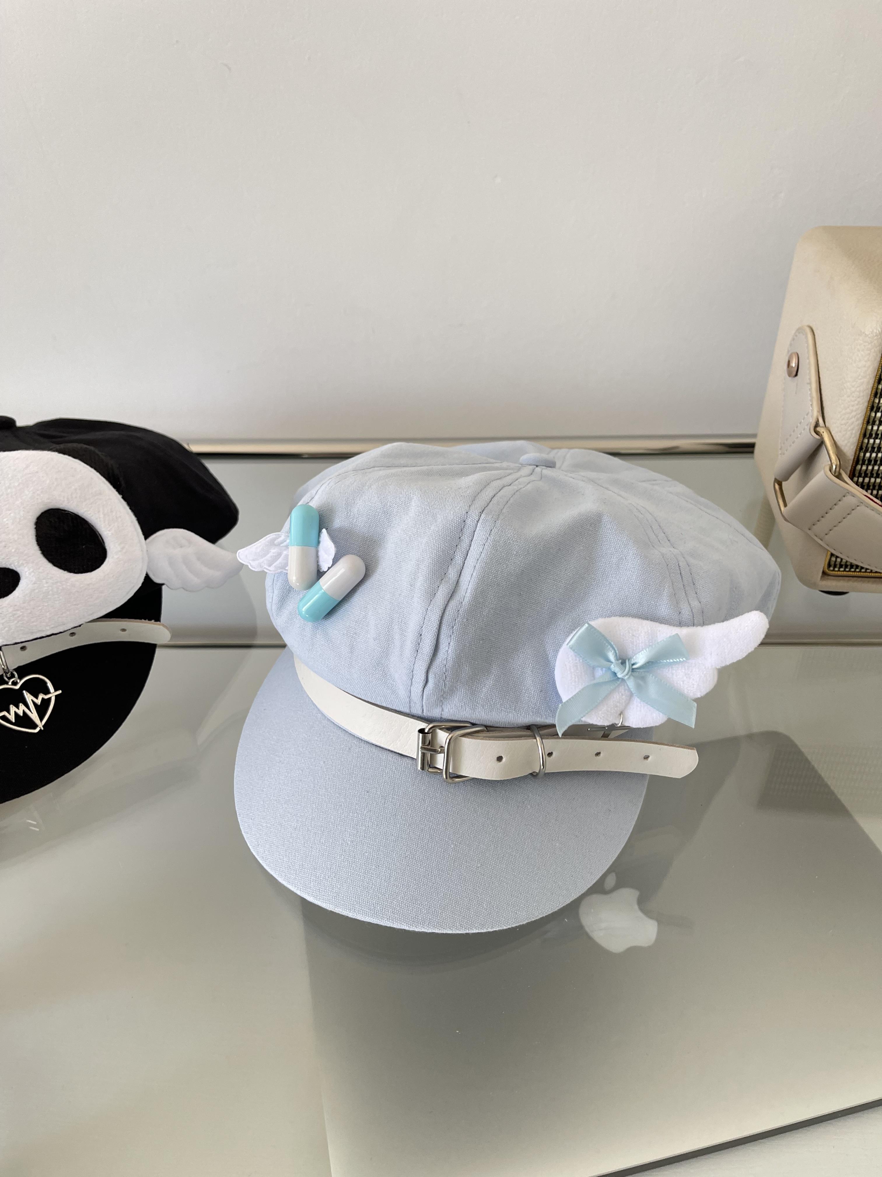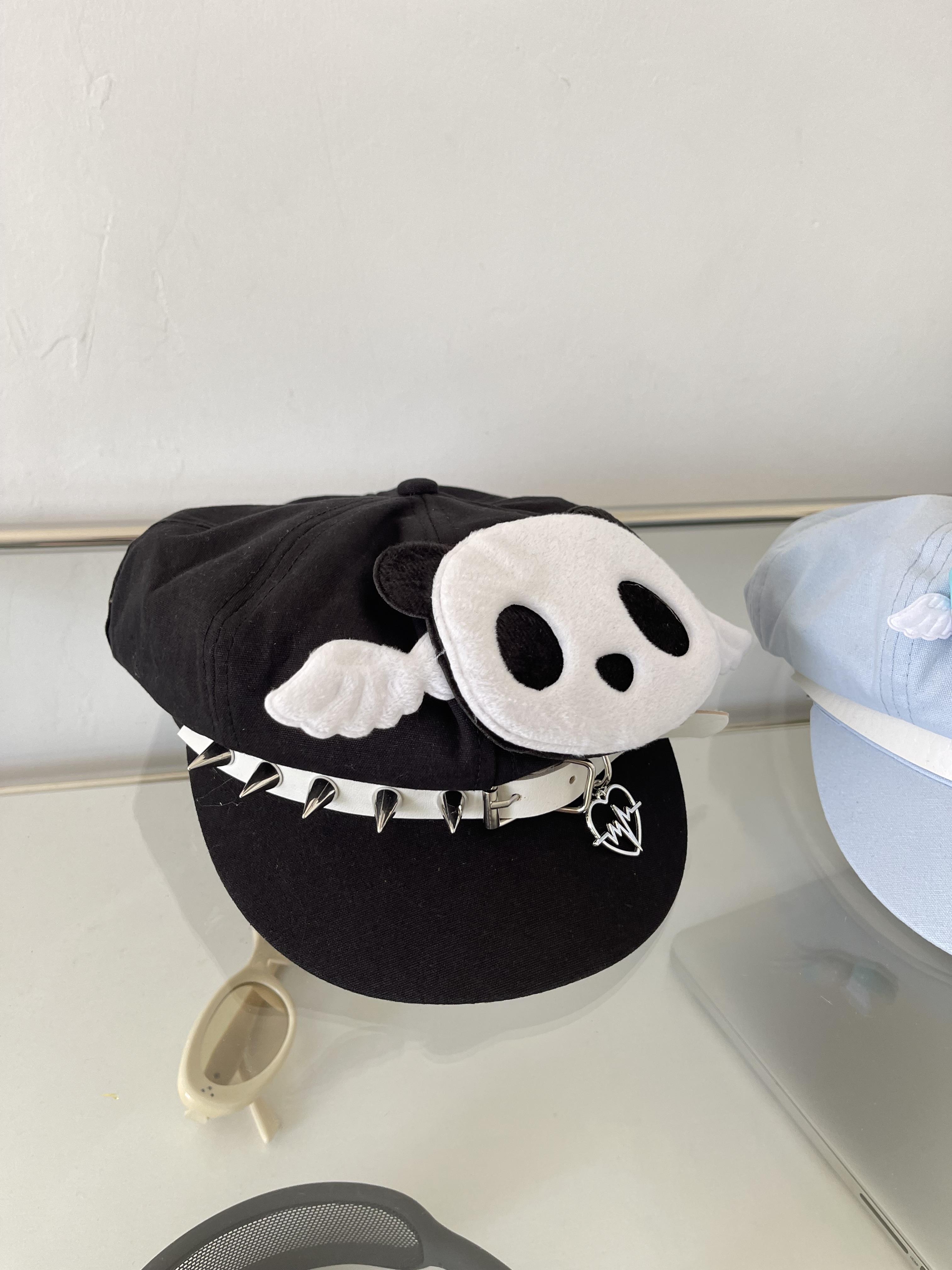 Subcultura nicho personalidad y2k boina lengua de pato femenina alas pastilla decoración de remaches gorra de repartidor sombrero de pintor