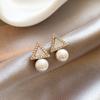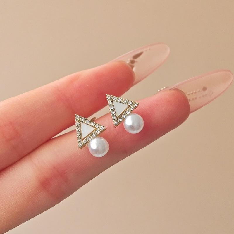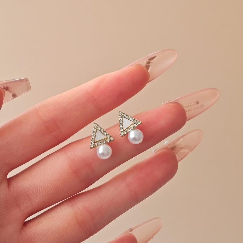 Compra Pendientes de perlas triangulares con diamantes de imitación de Corea del Sur, nuevos pendientes de lujo, sencillos, ligeros y elegantes que combinan con todo. al por mayor en Joom.pro