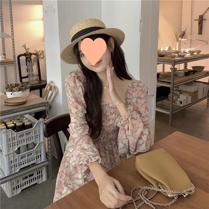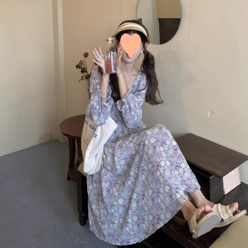 Vestido Floral Retro Suave de Manga Larga para Primavera y Otoño 2025 Talla Grande Holgado Temperamento para Mujer Falda