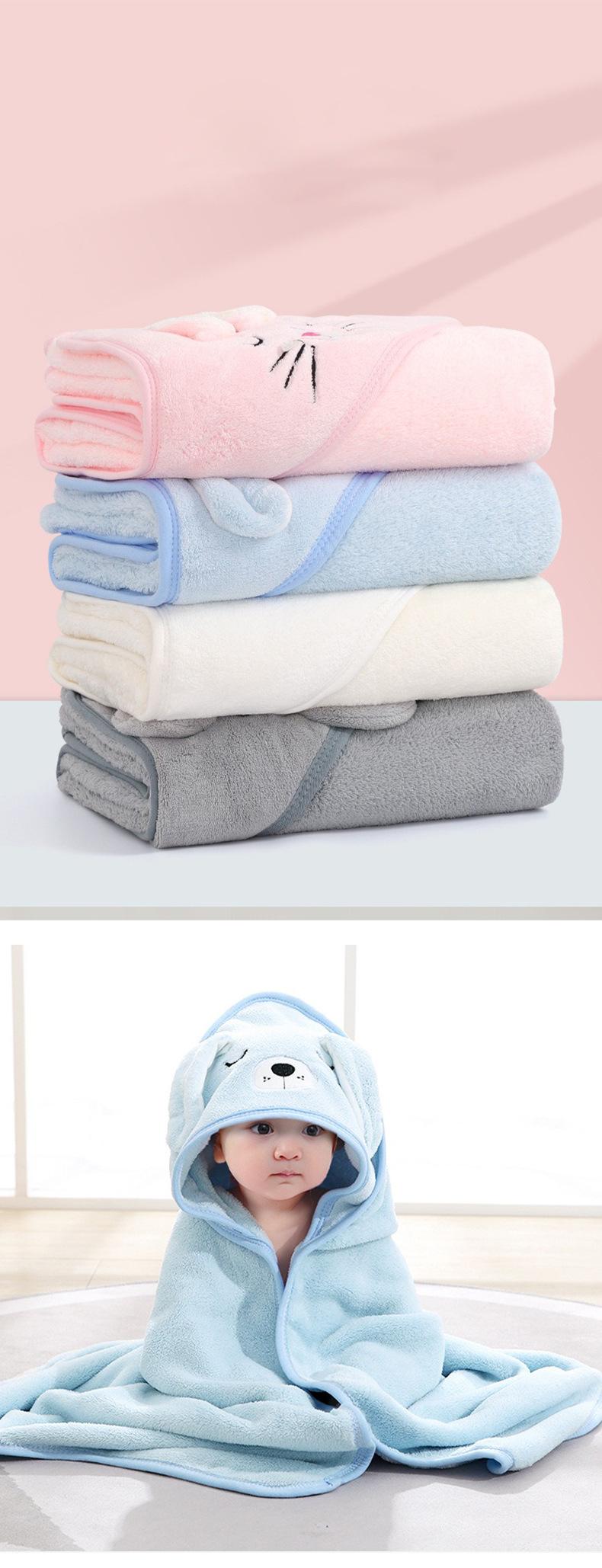 Toalla de baño para niños, manta para bebé de forro polar coral, bordada con dibujos animados, con capucha, antipatadas, capa de forro polar coral para bebé, toalla de baño