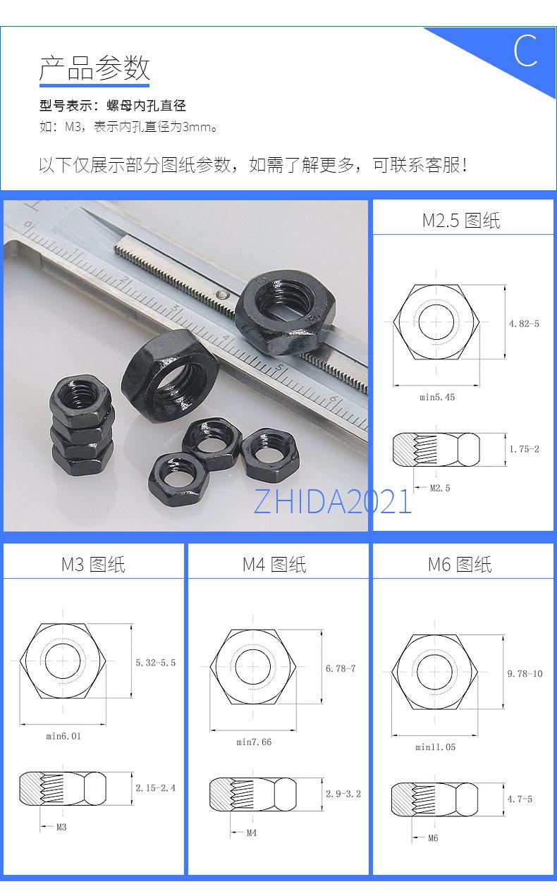 Tuerca hexagonal negra DIN934 M2.5M3M4 tuerca de hierro muestra gratuita