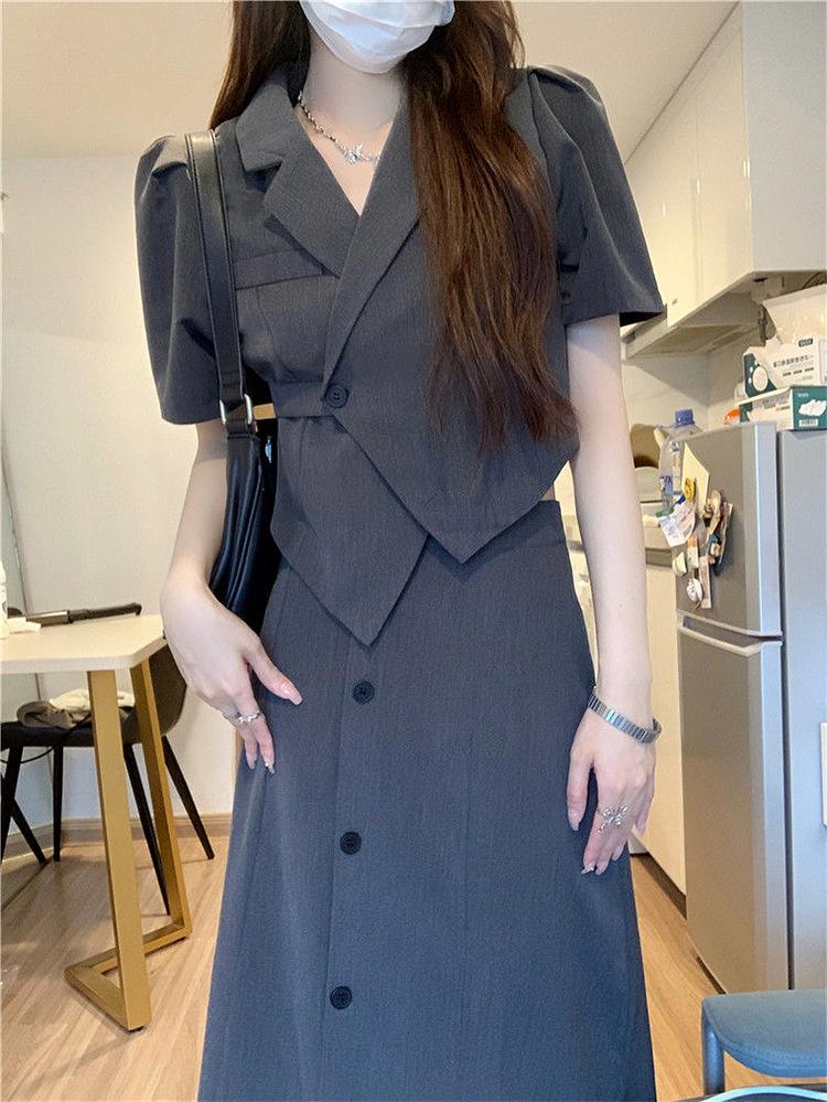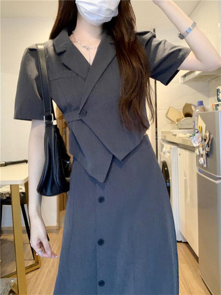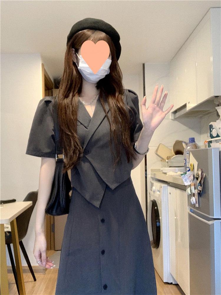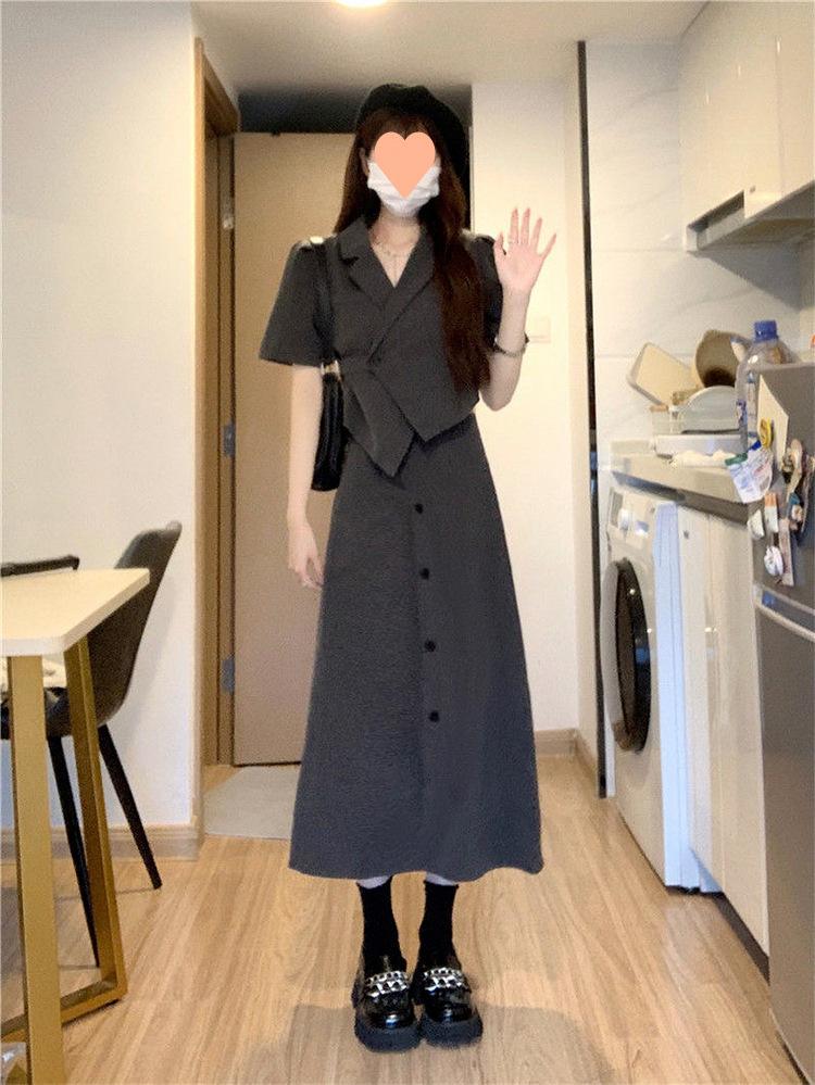 Traje adelgazante de moda para chica gordita, traje de verano de talla grande para mujer, nuevo diseño, traje con parte superior de cintura alta, falda, conjunto de dos piezas