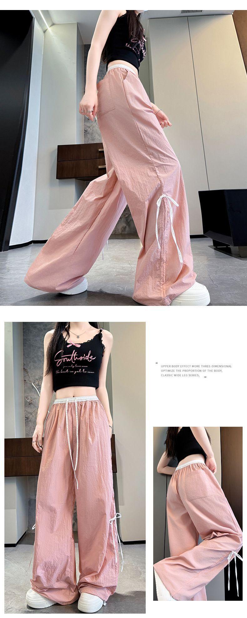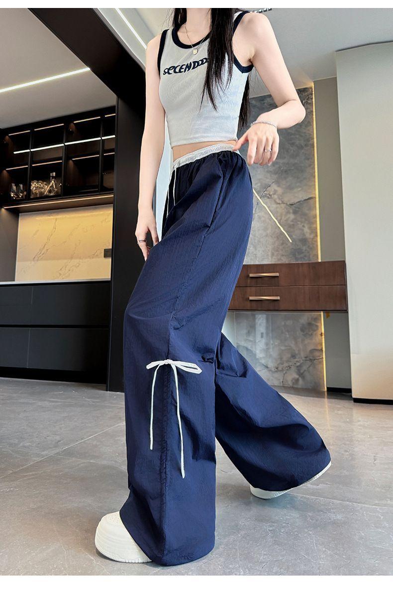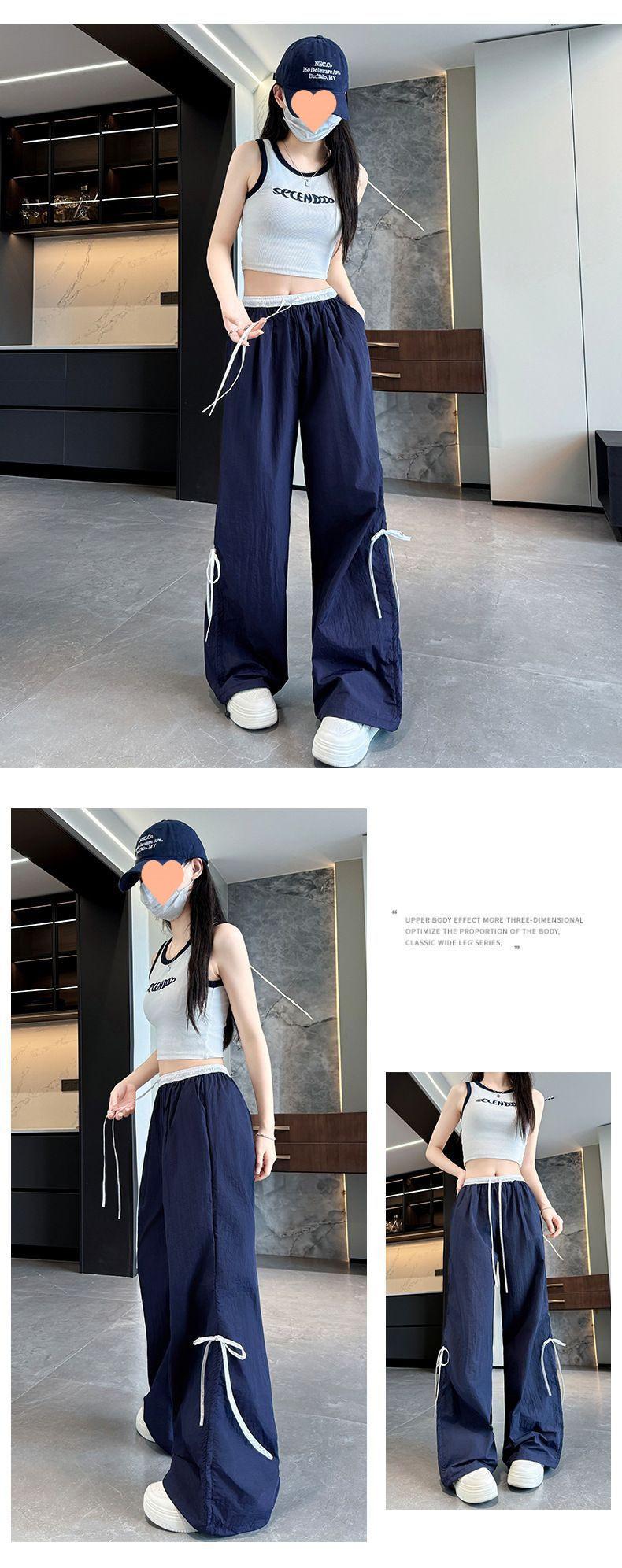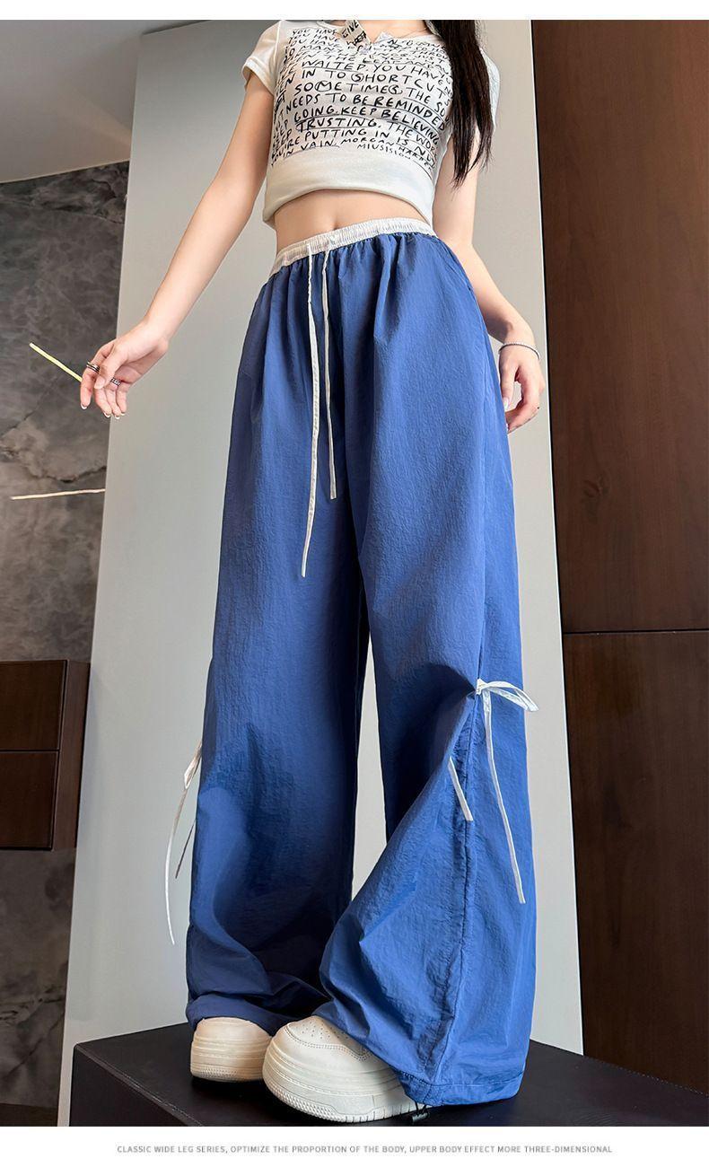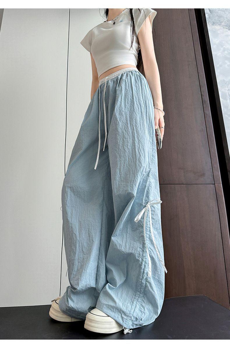 Overol con Lazo Pantalones de Mujer Verano Pantalones de Nuevo Estilo Coreano para Mujer Cintura Alta Casual Pierna Ancha