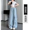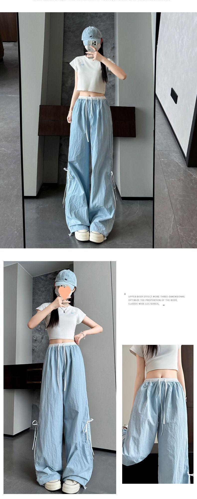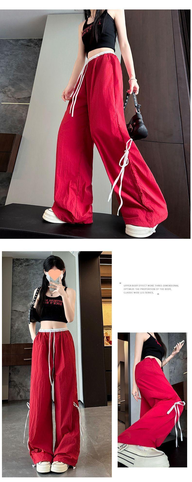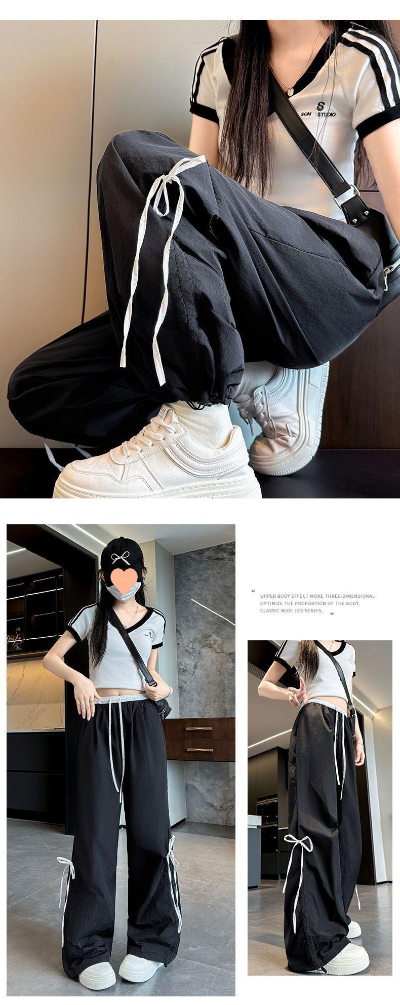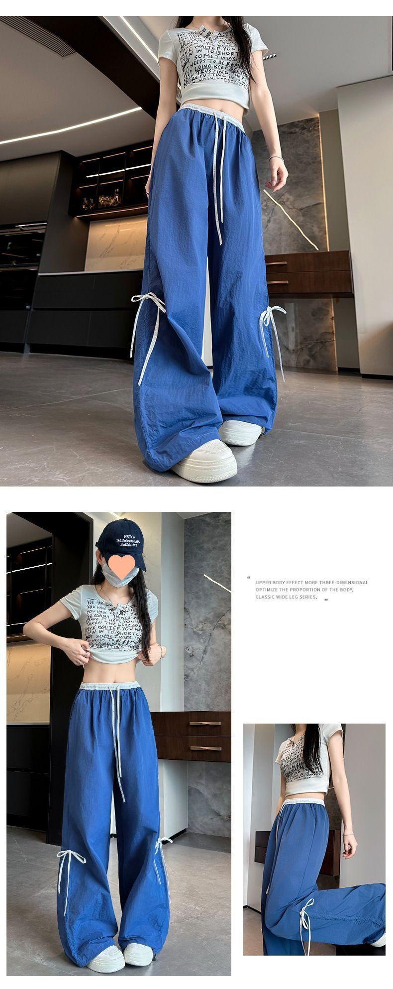 Overol con Lazo Pantalones de Mujer Verano Pantalones de Nuevo Estilo Coreano para Mujer Cintura Alta Casual Pierna Ancha