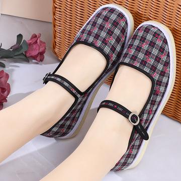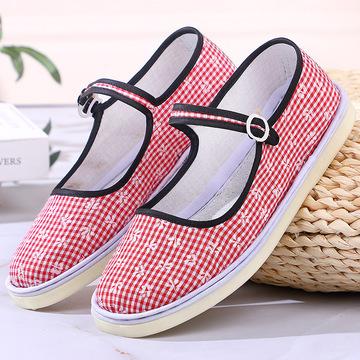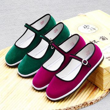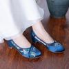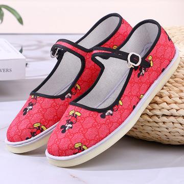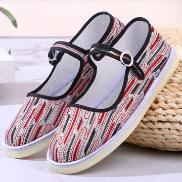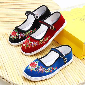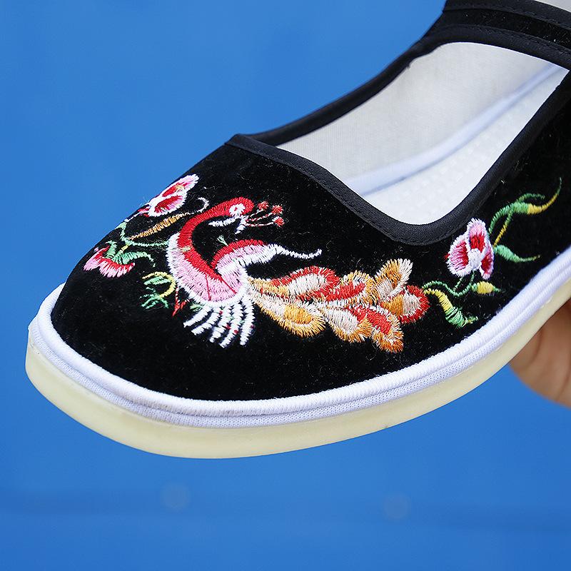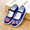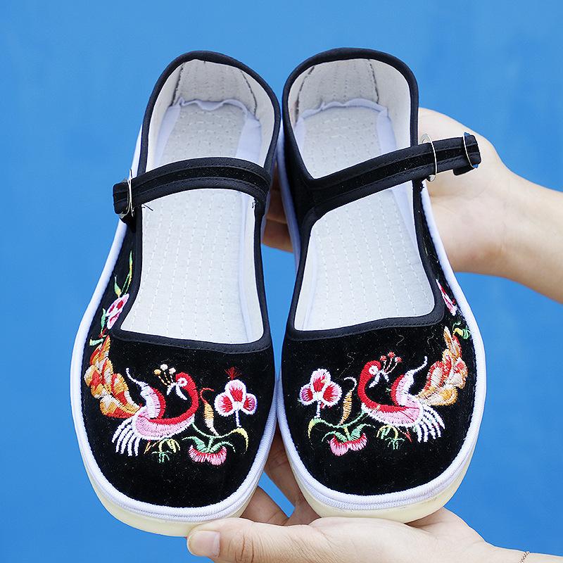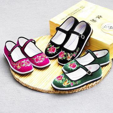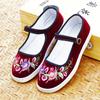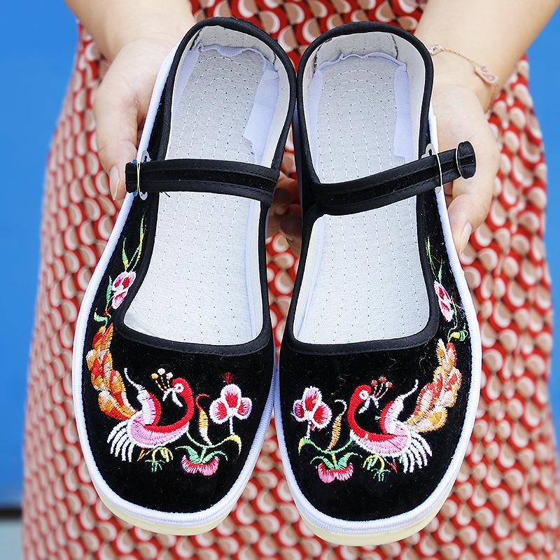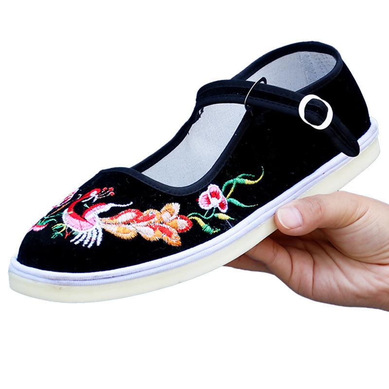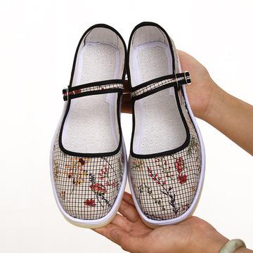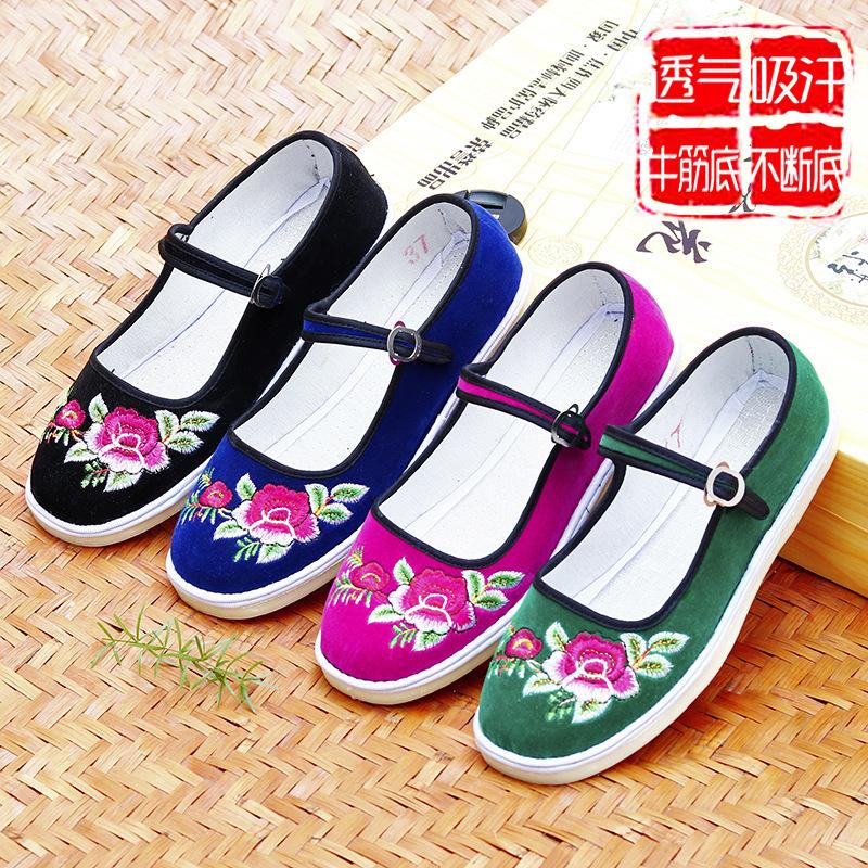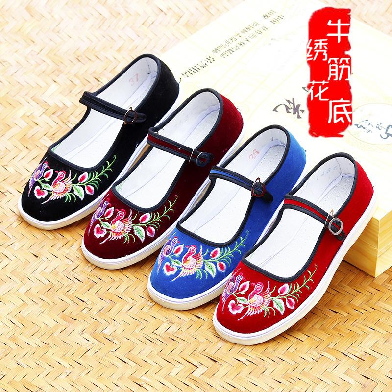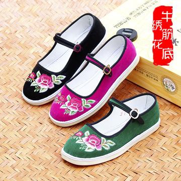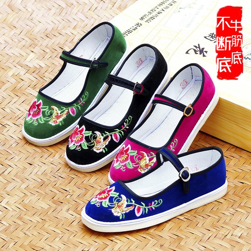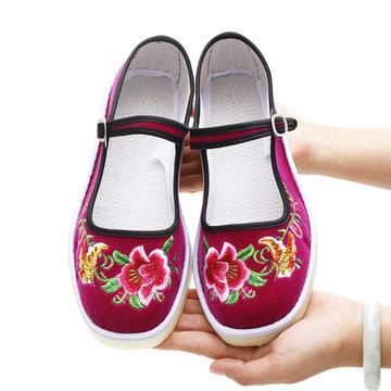 Zapatos de tela bordados antiguos de Beijing con suela de tendón de buey, línea a mano con bordado retro para damas, estilo étnico, suela plana, venta al por mayor