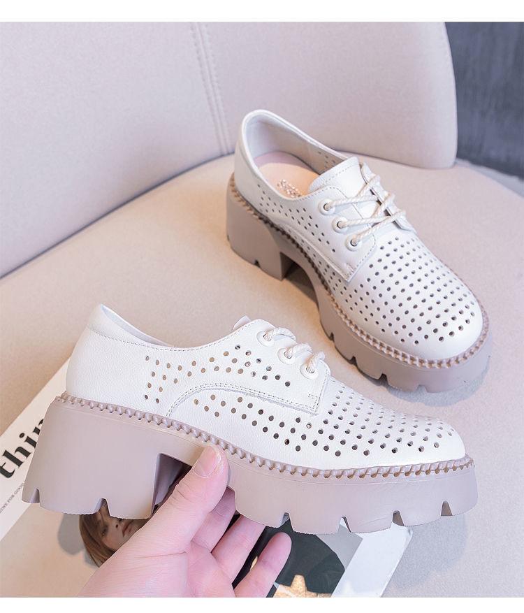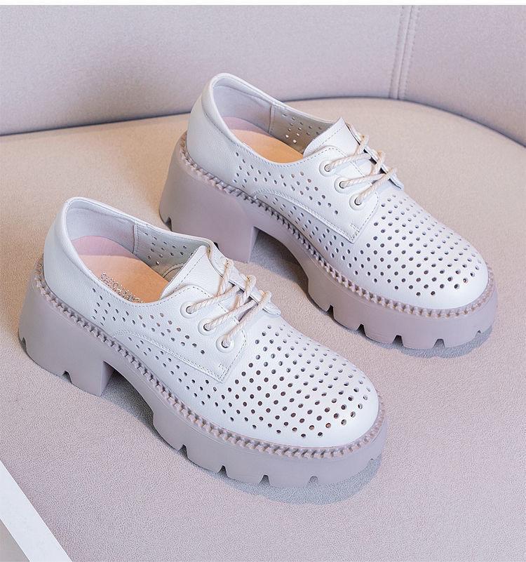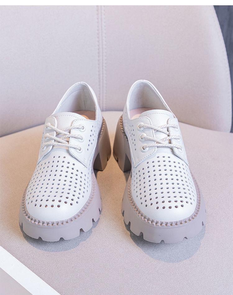 Sandalias blancas con cordones y agujeros, nuevas, de cuero suave, transpirables y con suela antideslizante.