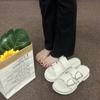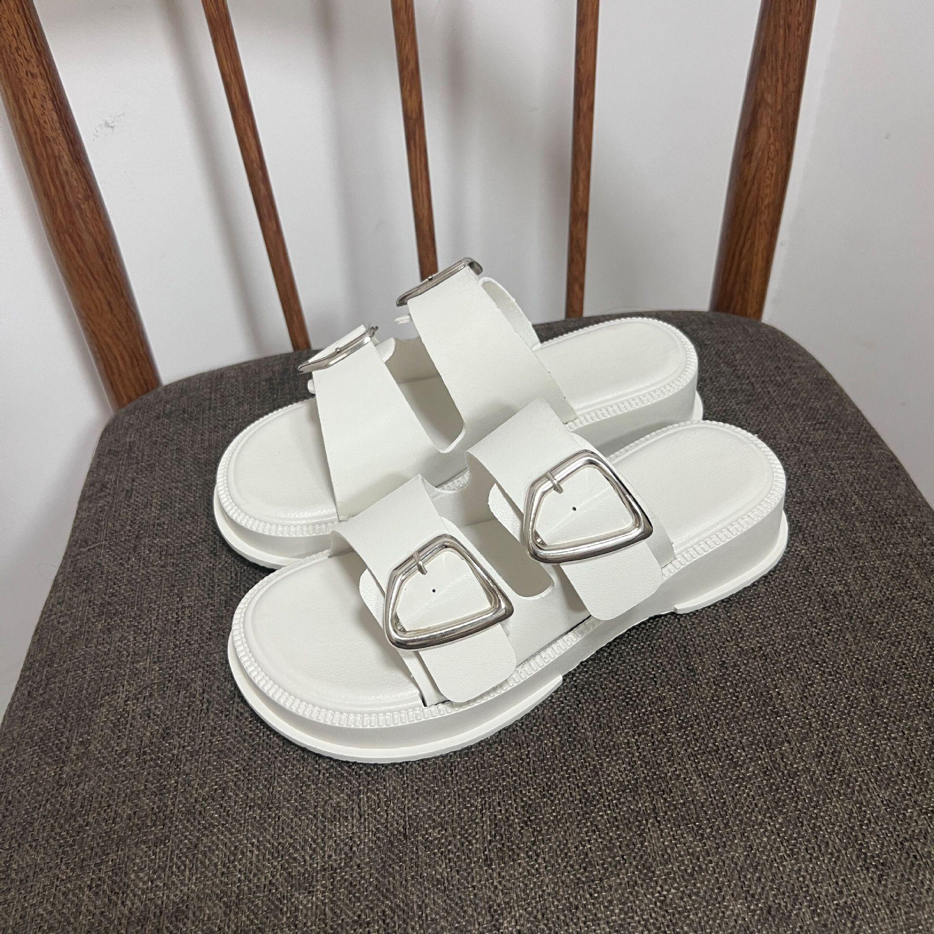 White-Double Slippers with Four Buckle