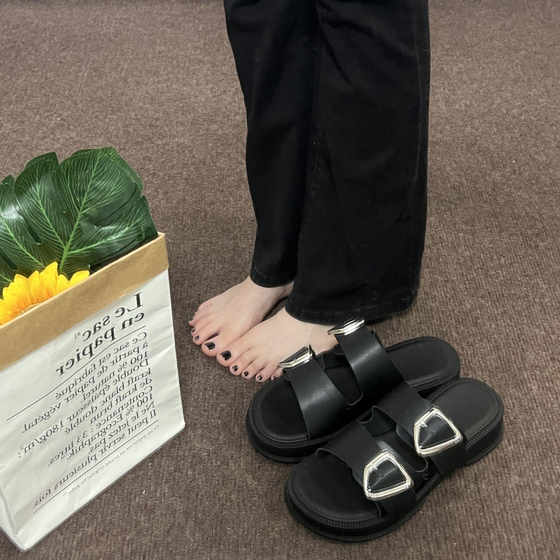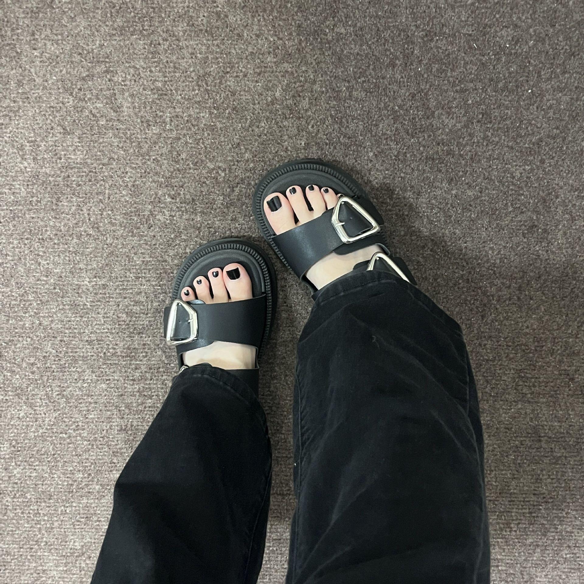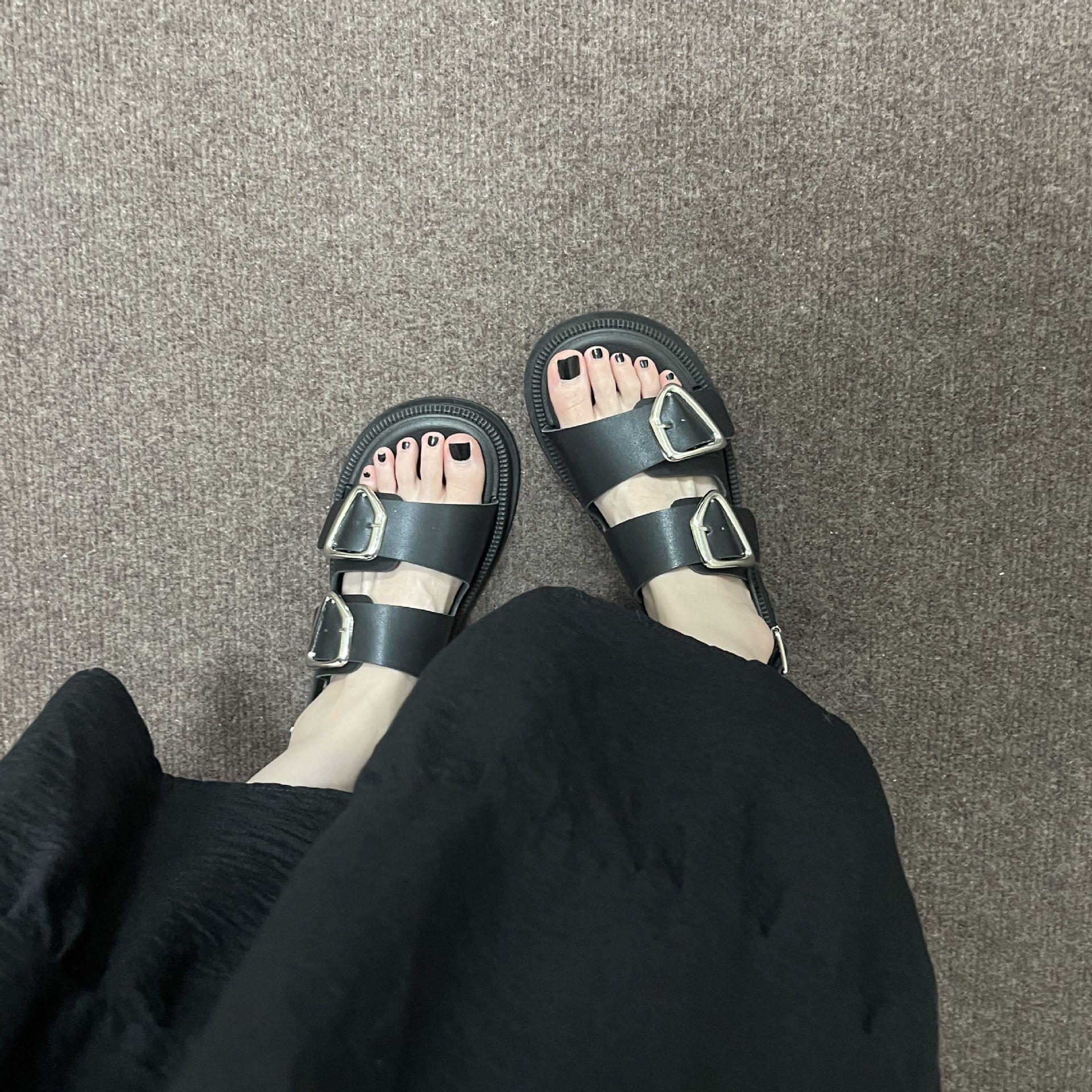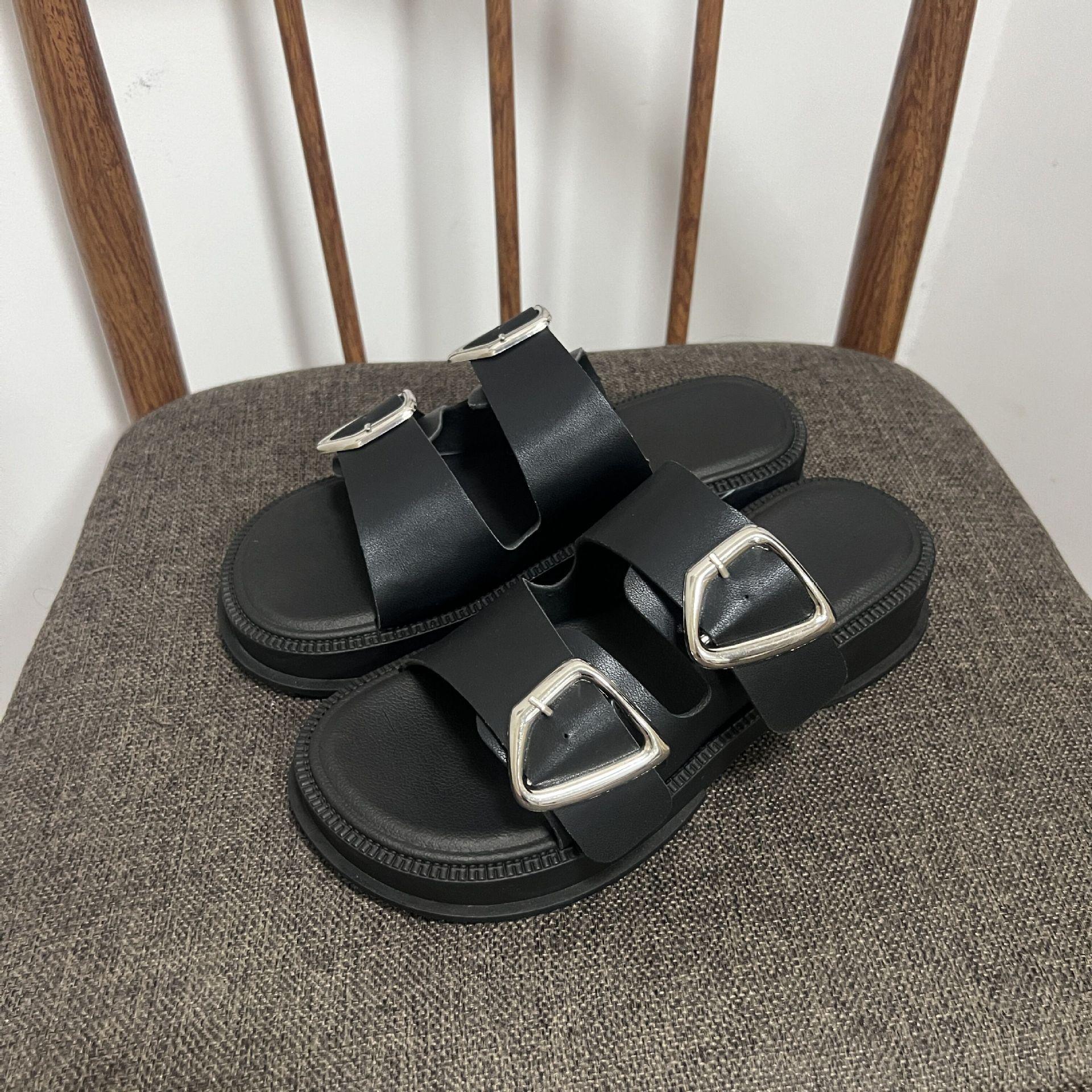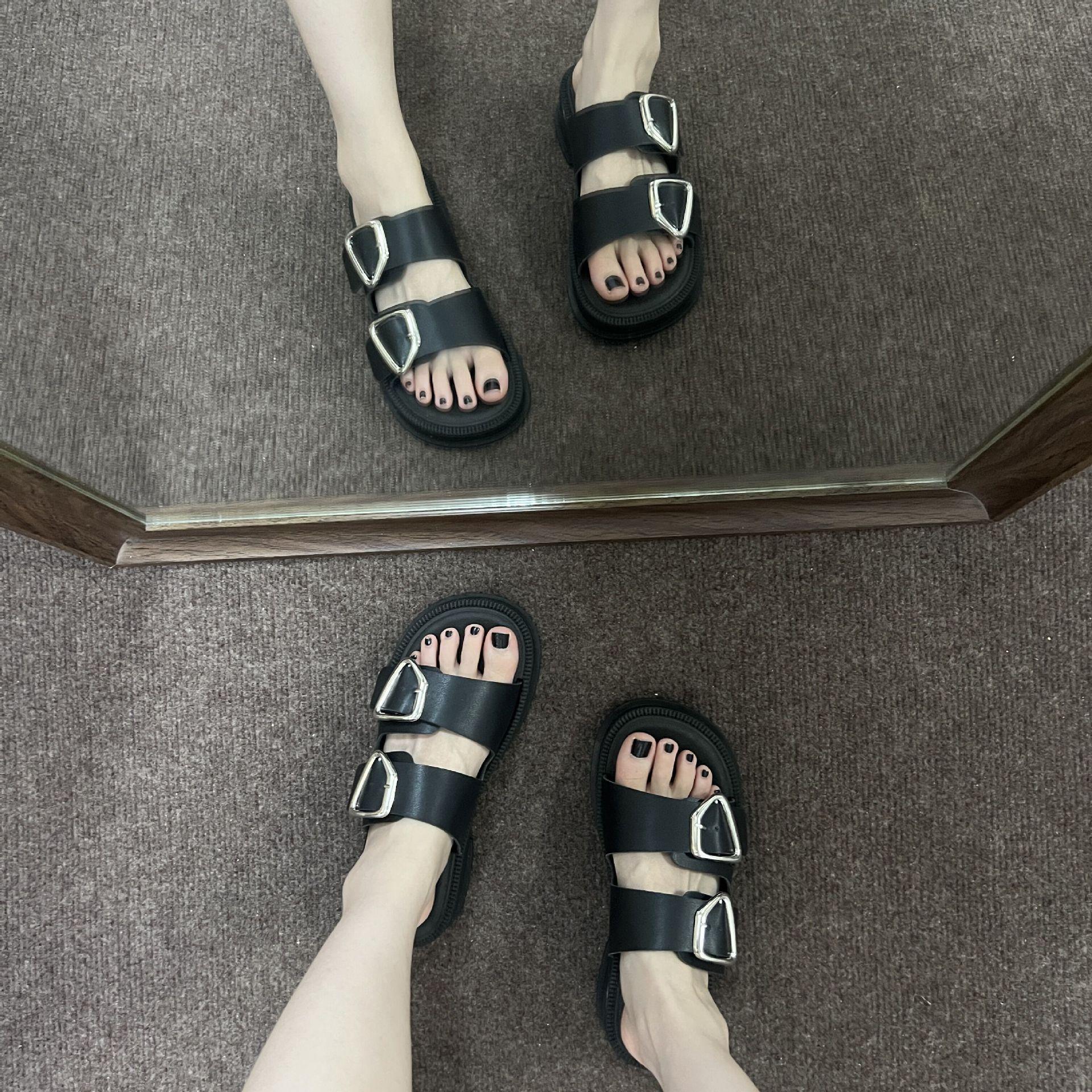Black-Double Slippers with Four Buckle
