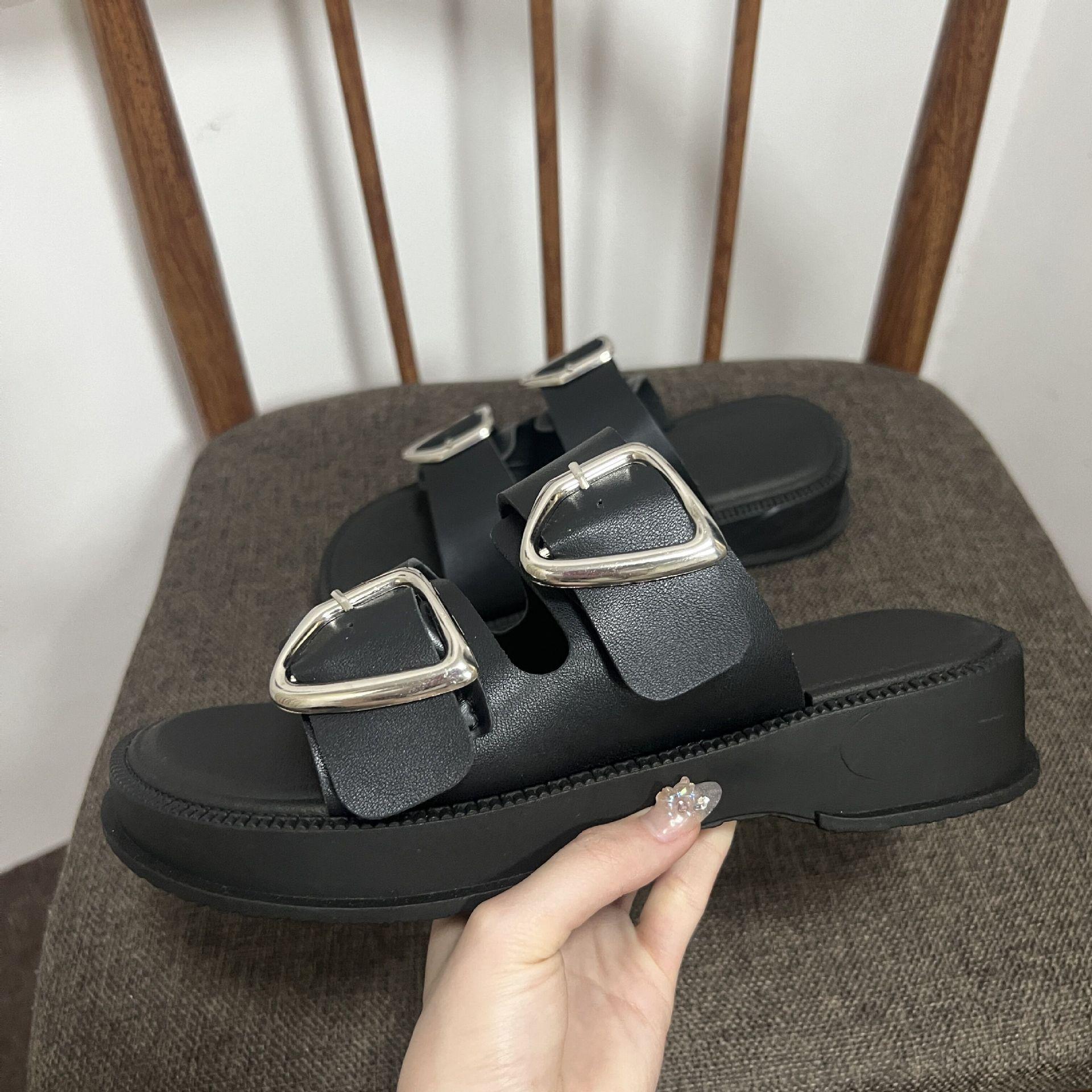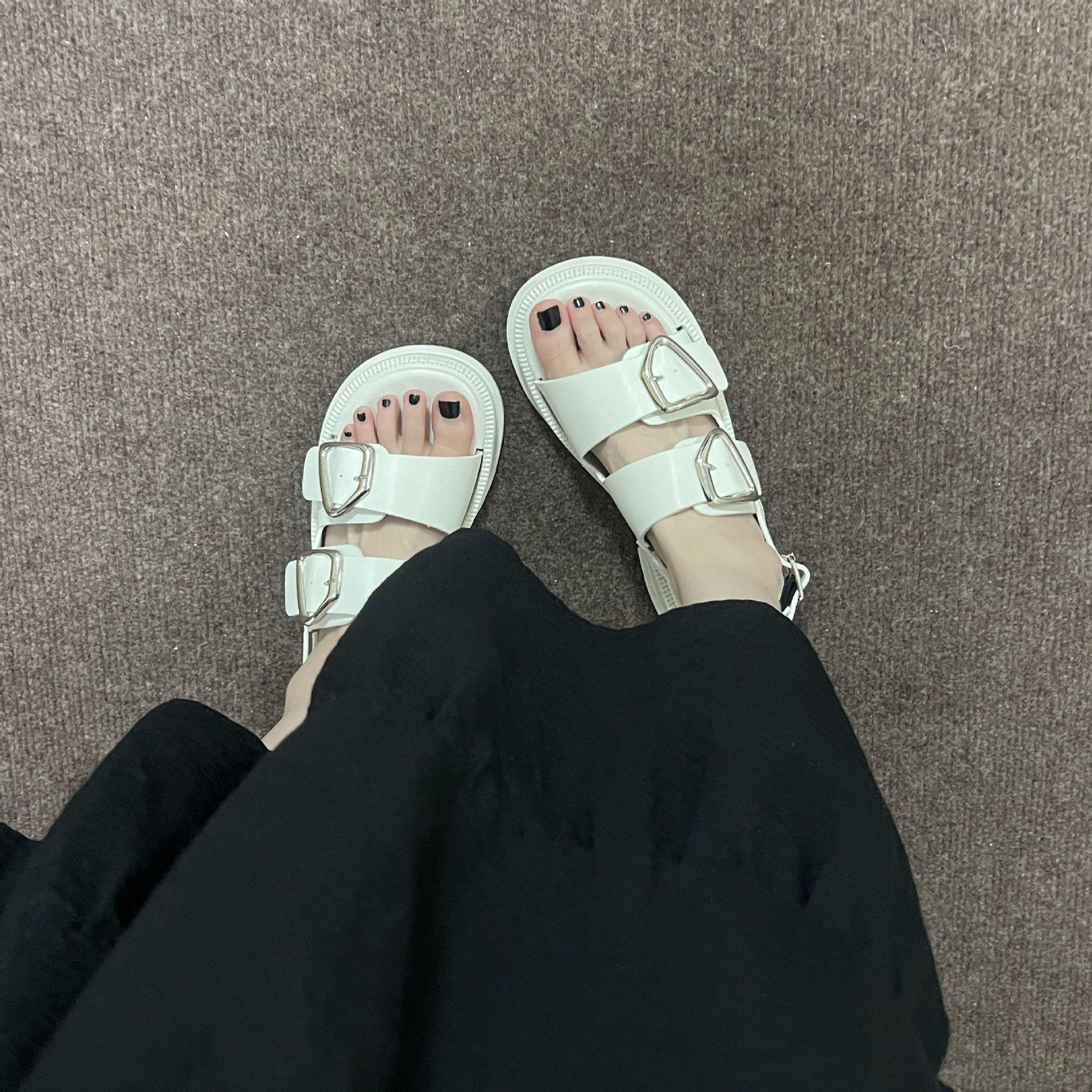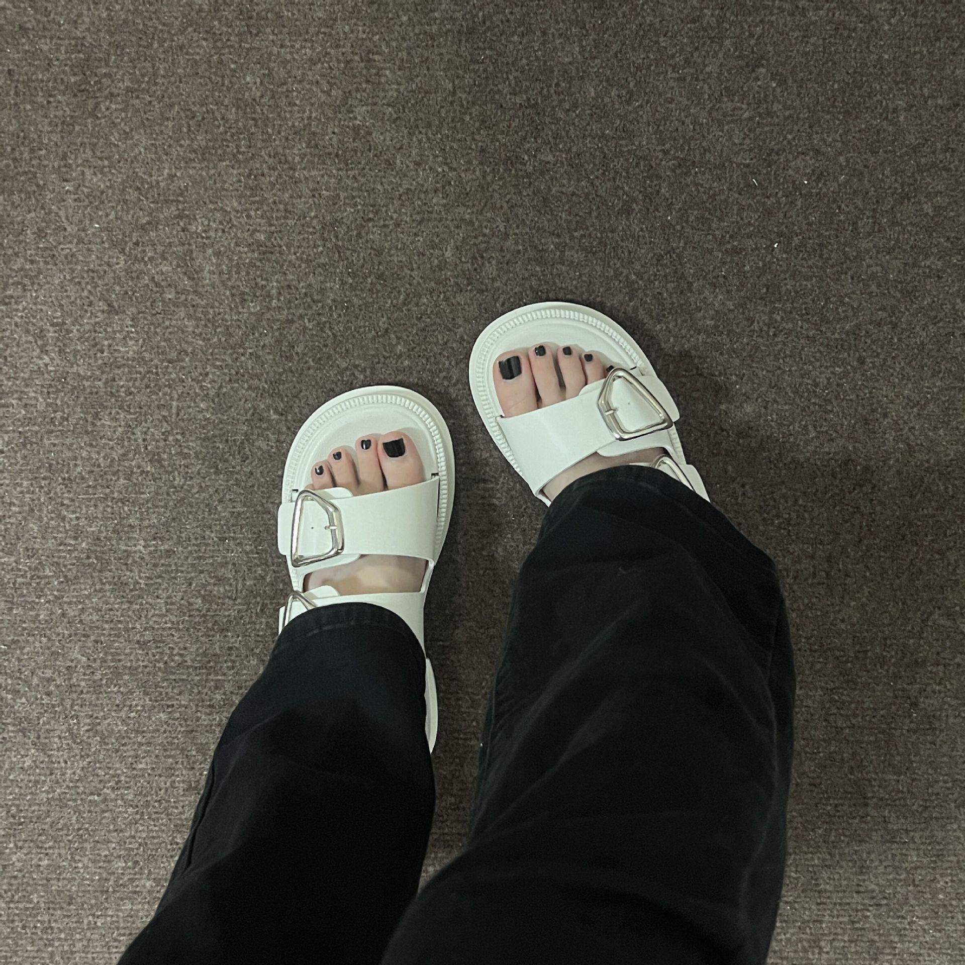 Black-Double Slippers with Four Buckle, White-Double Slippers with Four Buckle