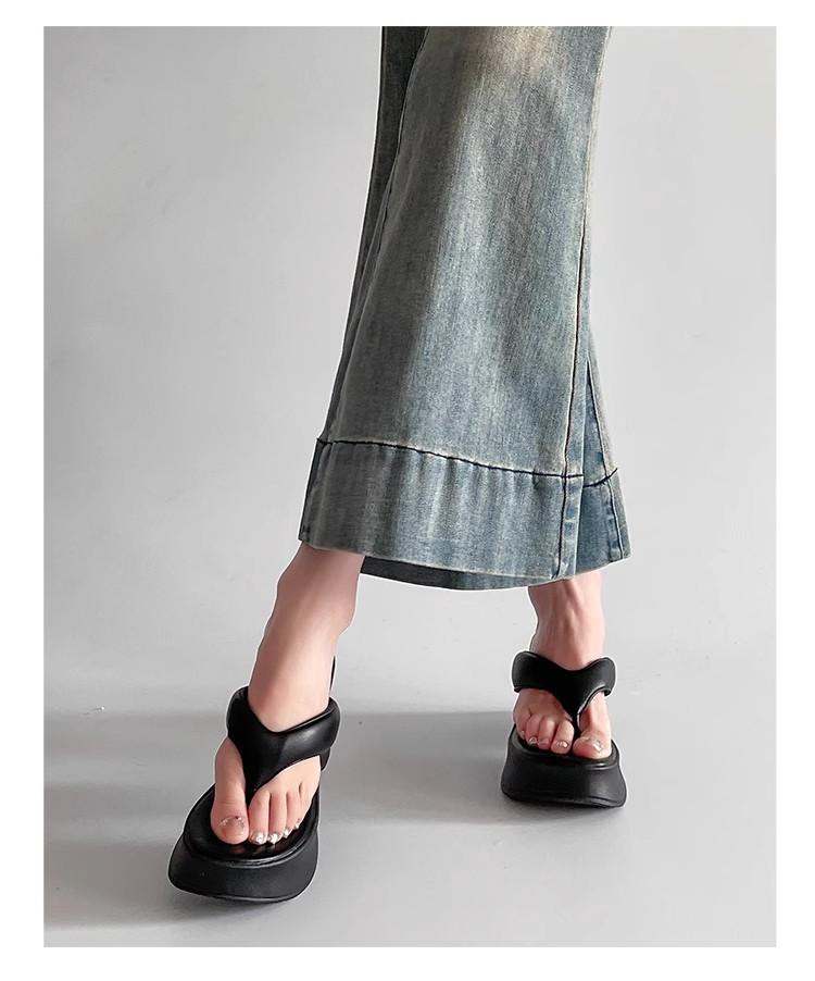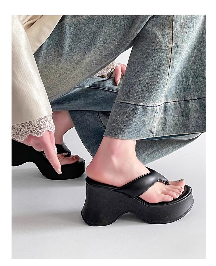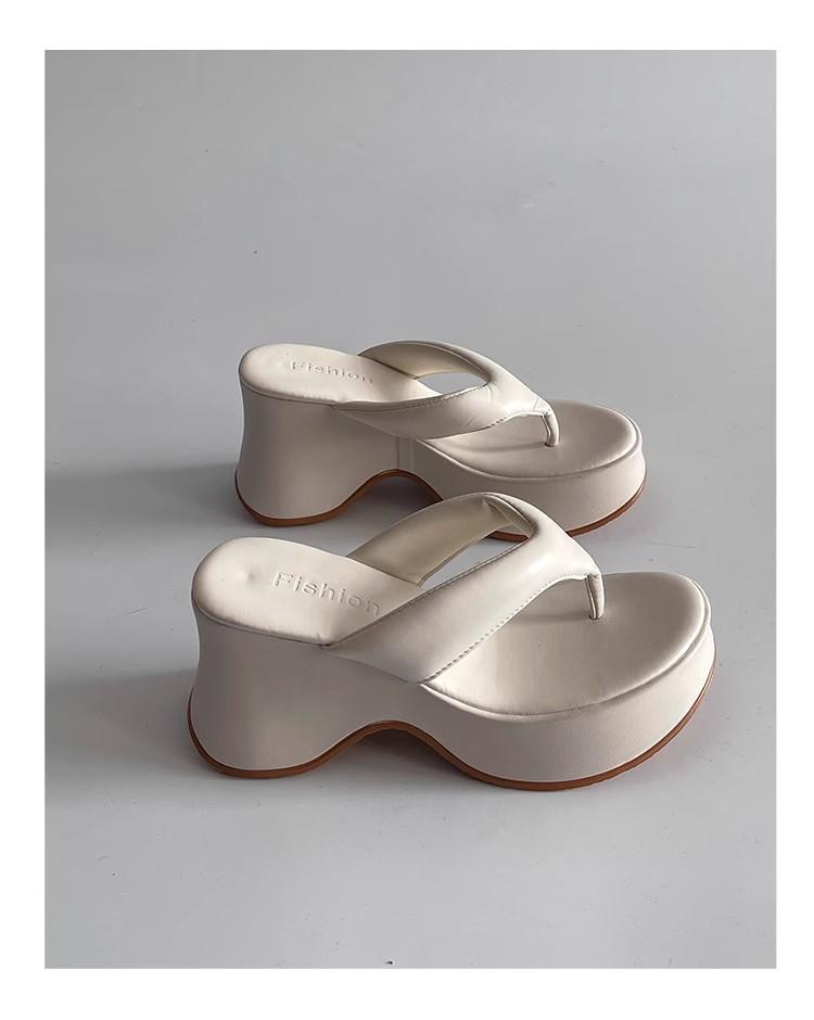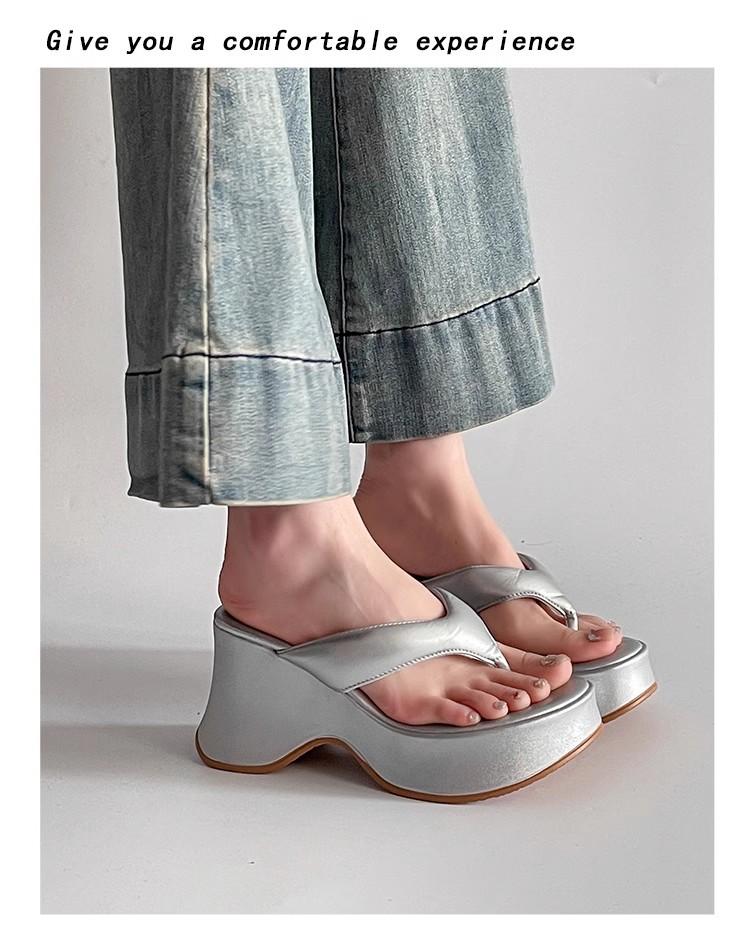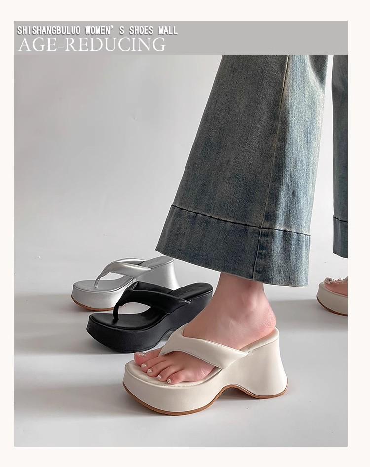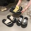 Primavera y Verano Nuevas Pantuflas de Moda Simple Elegante Estilo Dulce Punta Redonda Plataforma Suela Chanclas de Mujer Cool para Exterior